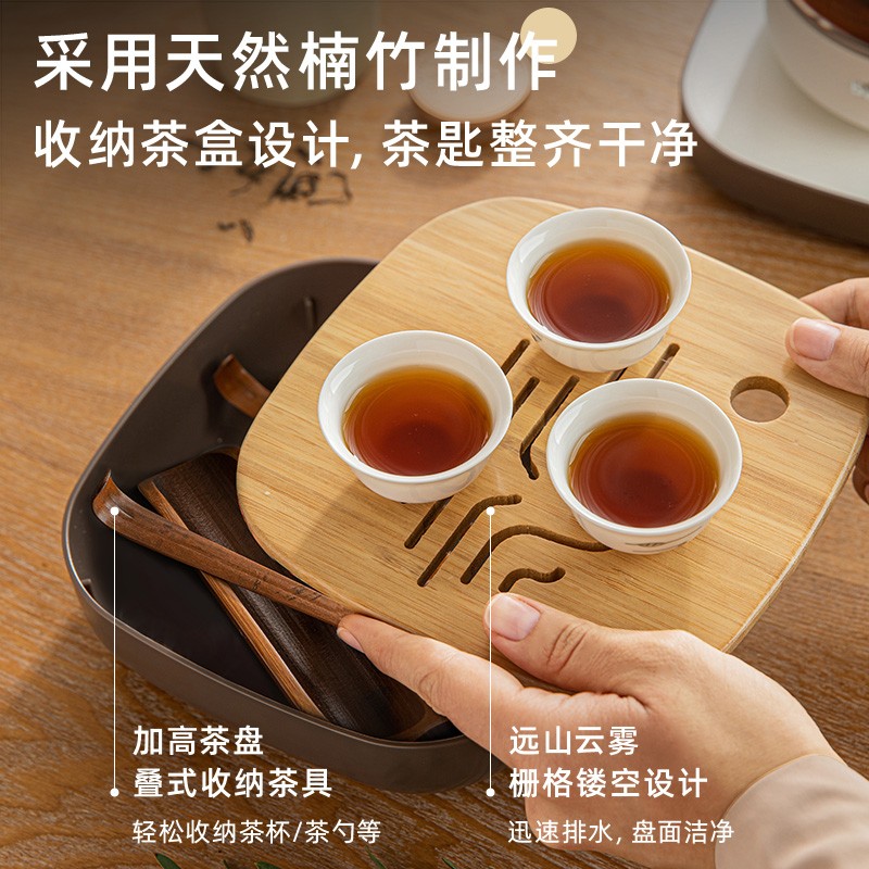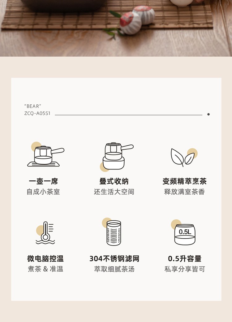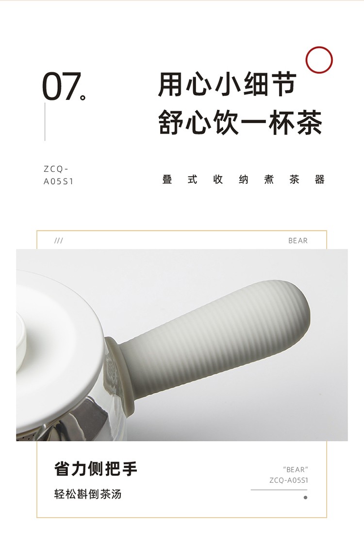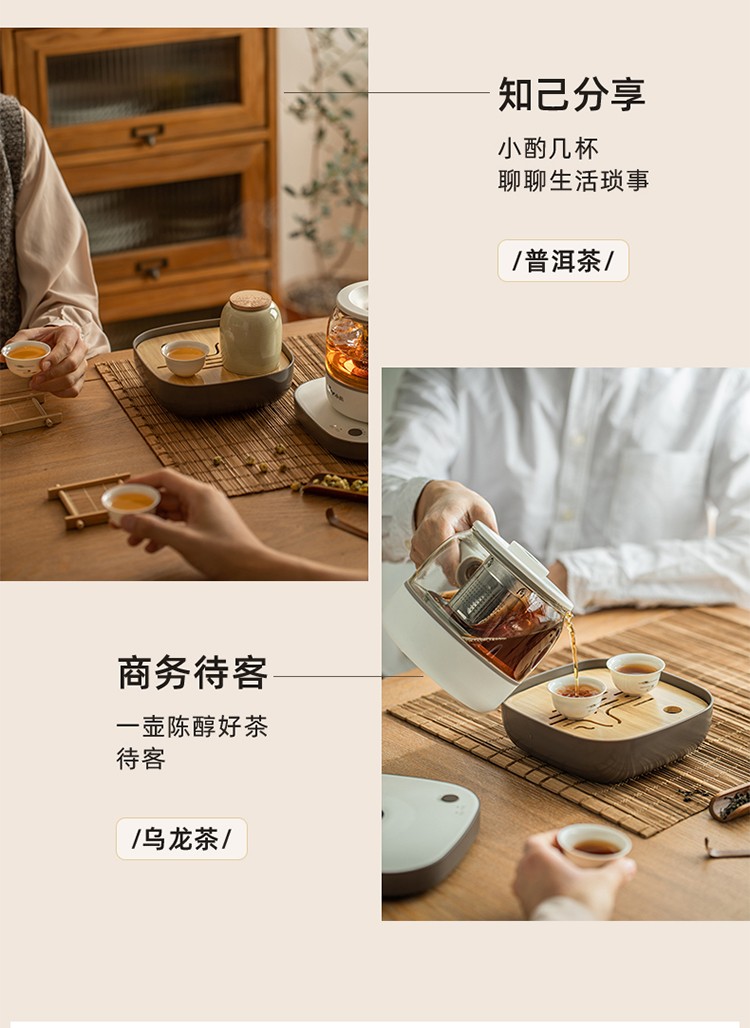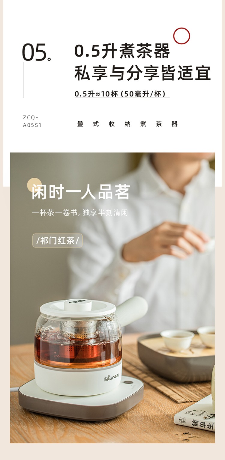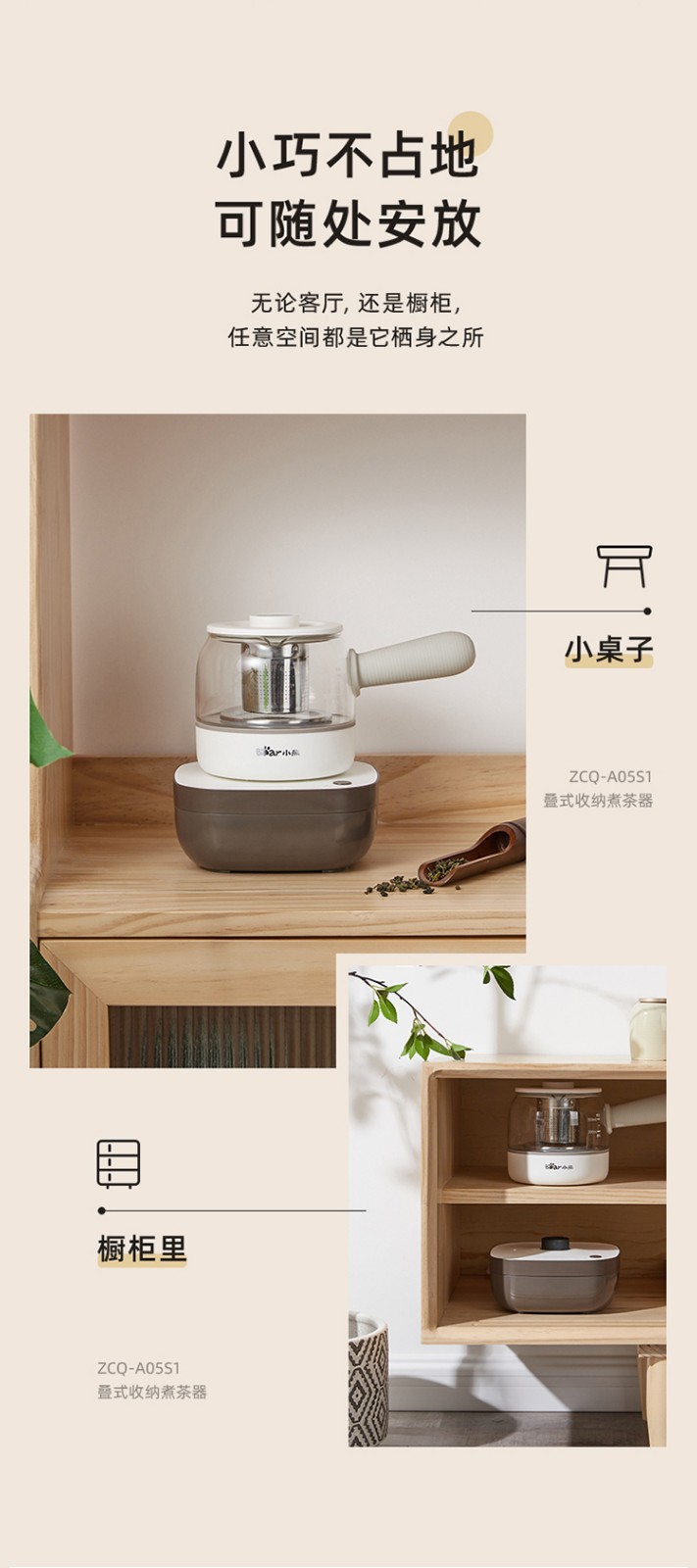 (特)小熊(Bear)煮茶器煮茶壶0.5L蒸汽喷淋式养生壶电水壶热水壶304不锈钢烧水壶花茶壶带茶杯+茶盘 ZCQ-A05S1