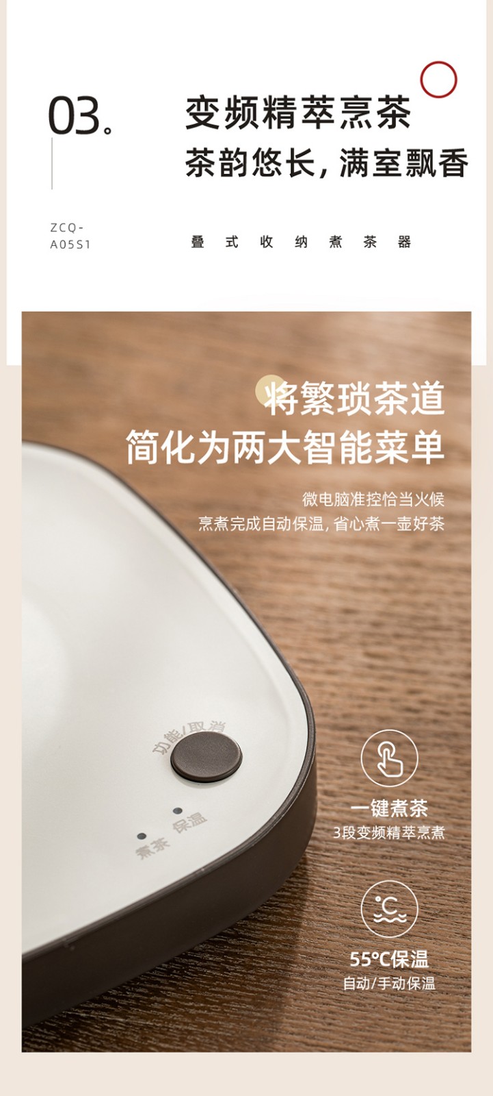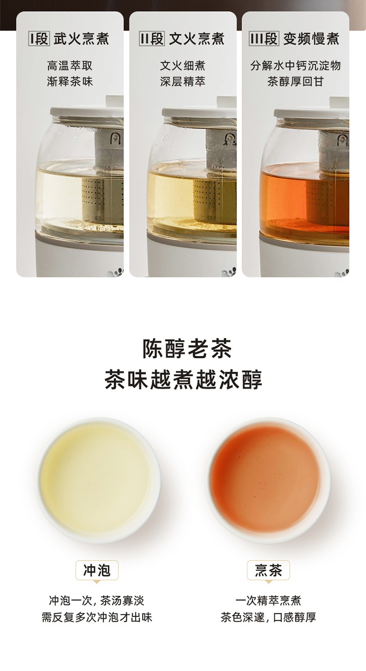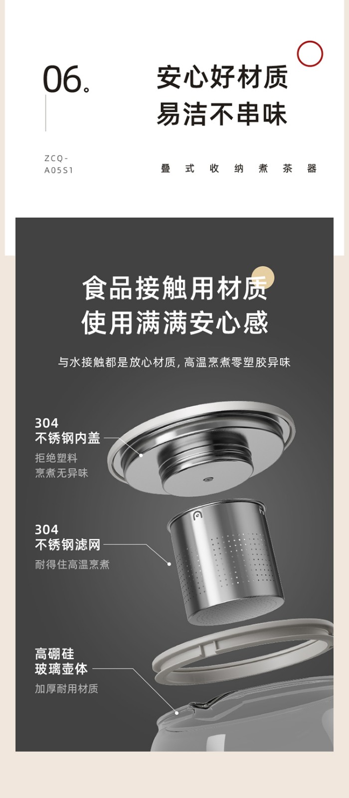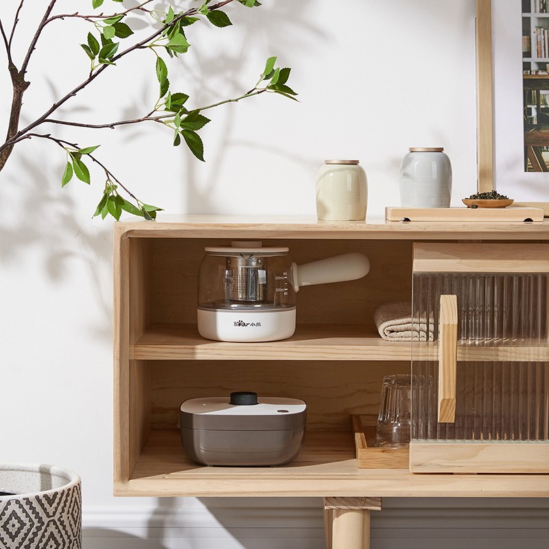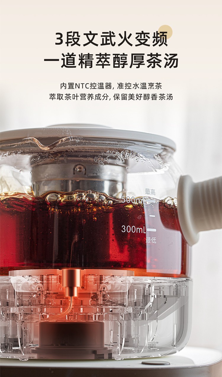 (特)小熊(Bear)煮茶器煮茶壶0.5L蒸汽喷淋式养生壶电水壶热水壶304不锈钢烧水壶花茶壶带茶杯+茶盘 ZCQ-A05S1