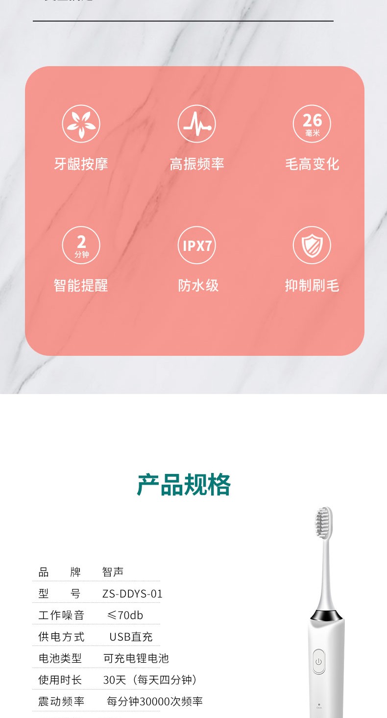 智声(ZHISHENG) 三大洁牙模式软毛 ZS-DDYS-01电动牙刷