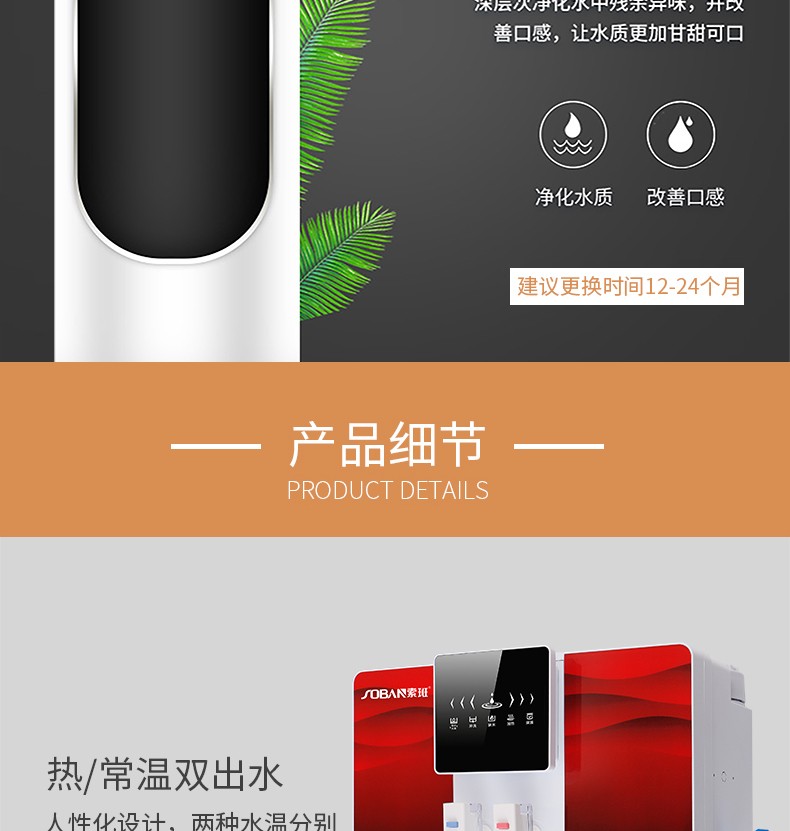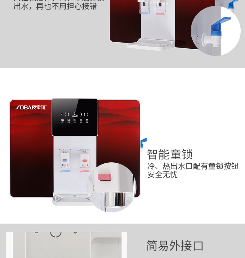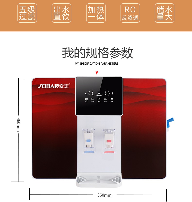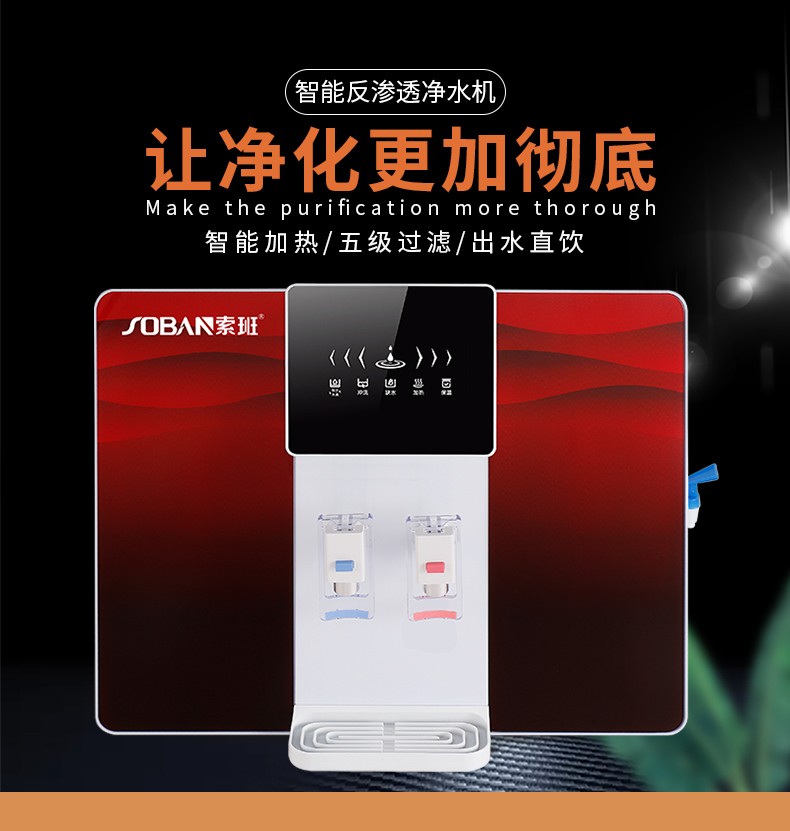 索班(SOBAN)家用净水器100加仑反渗透加热一体智声纯水机带显示屏SUO-100RO(D6)