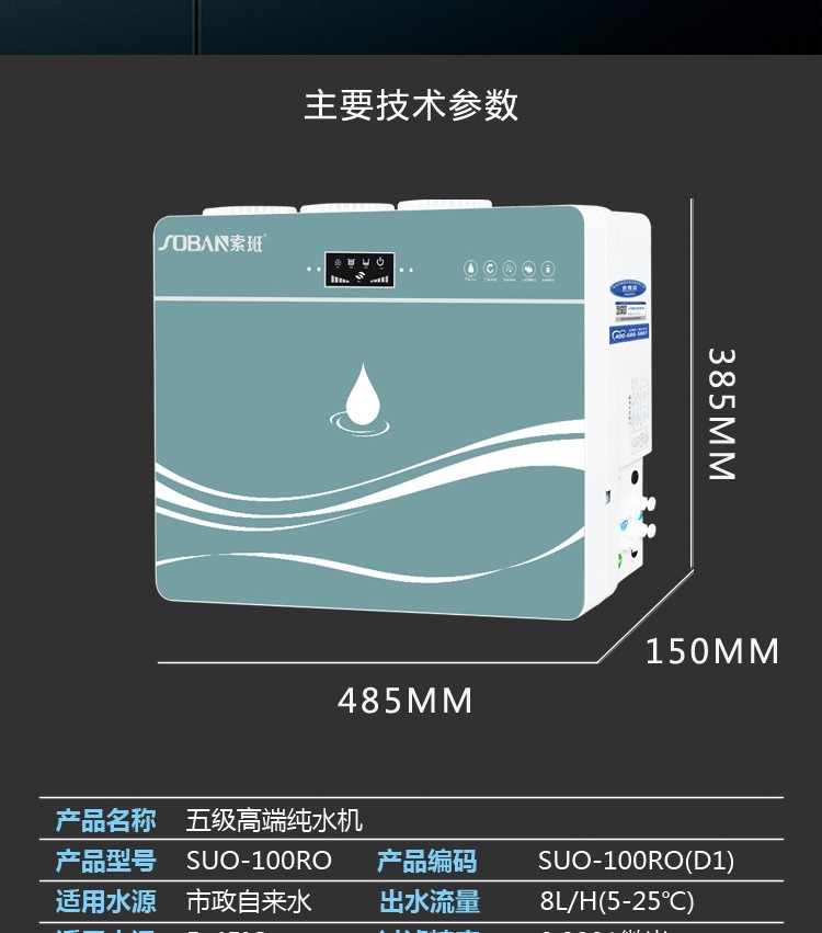 索班SUOBAN新款家用直饮ro净水器 反渗透纯水机厨房电器SUO-100RO(D1)