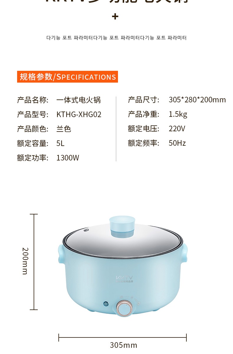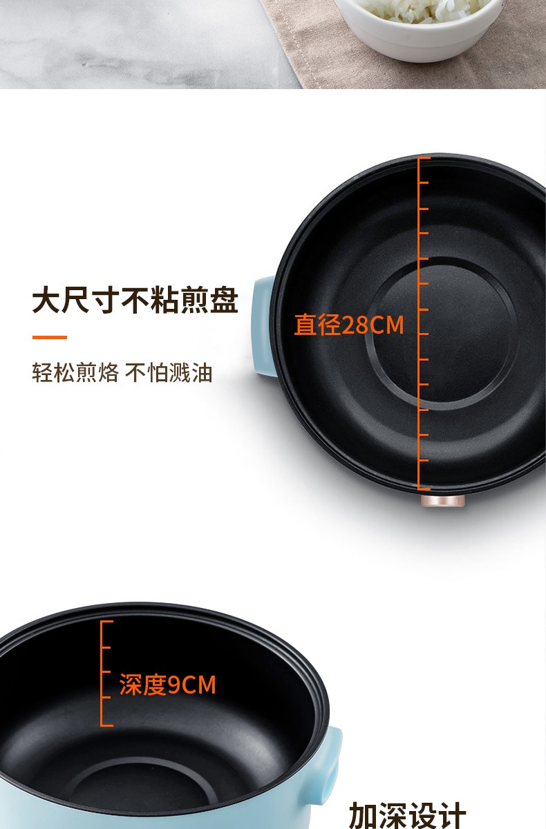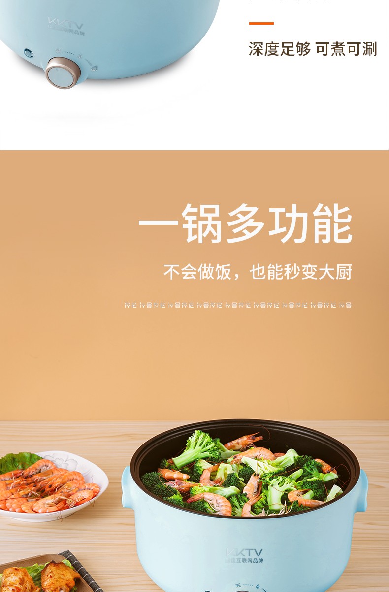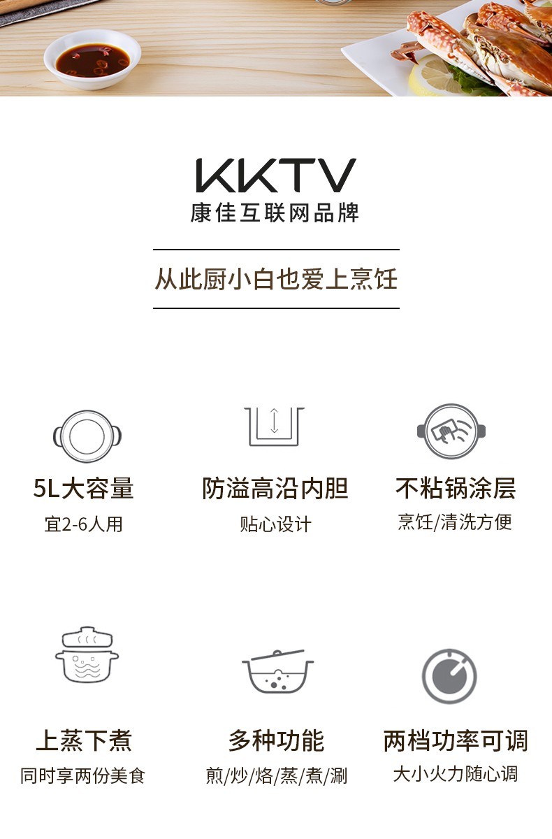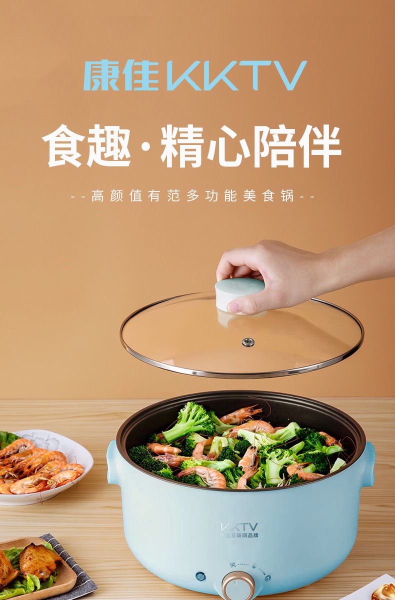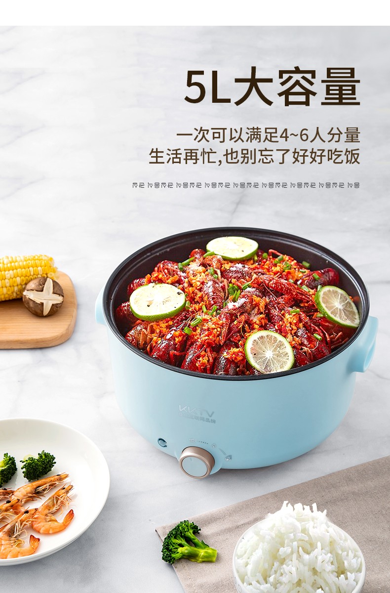 康佳KKTV电火锅电炒锅家用多功能电锅煎烤涮一体电热电煮锅5L多用途锅火锅锅不粘锅升级款KTHG-XHG02