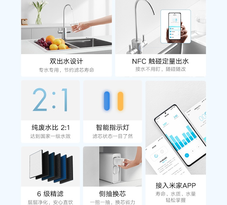 (特)小米净水器家用净水机H800G Pro厨下式直饮机