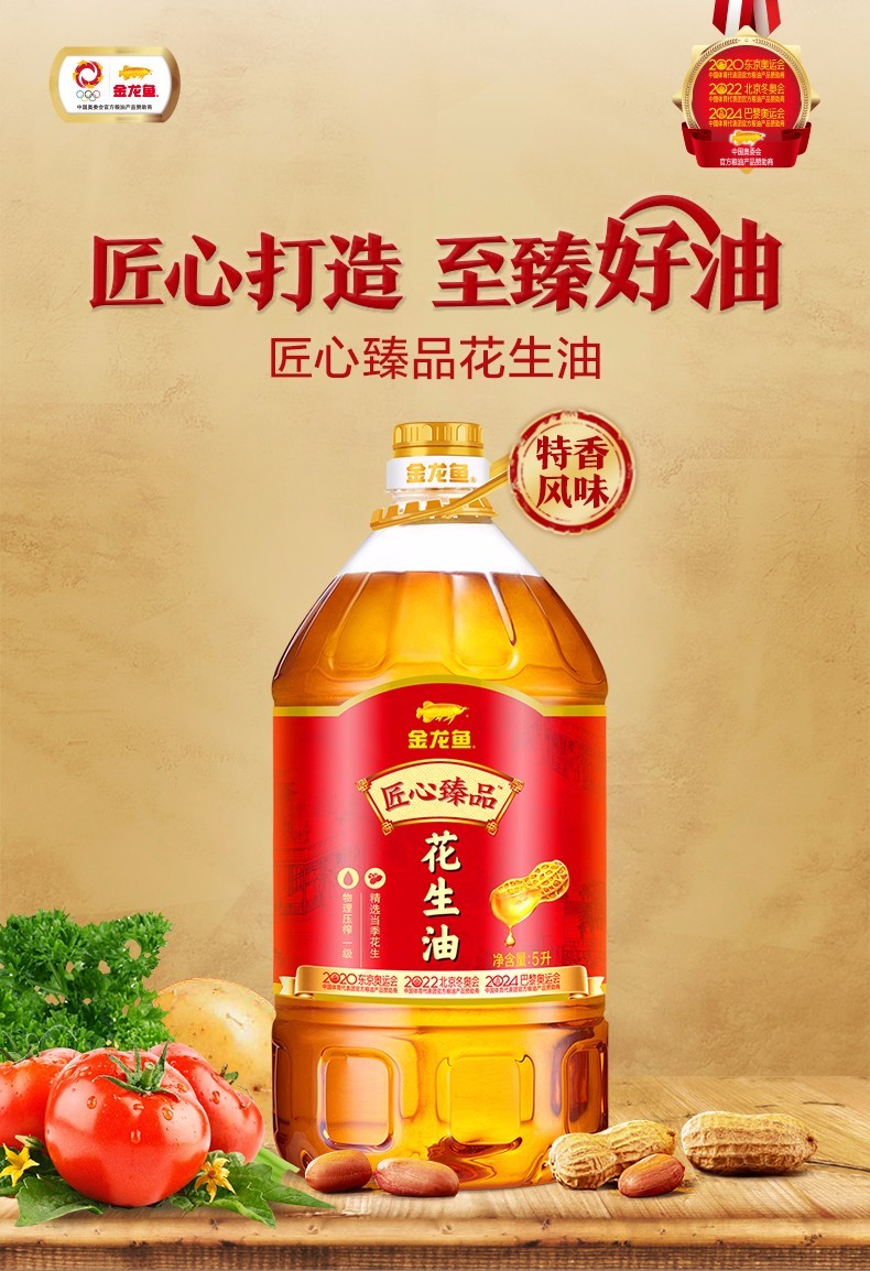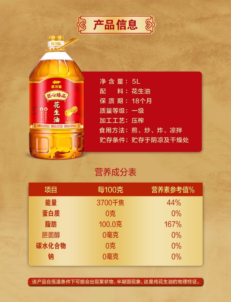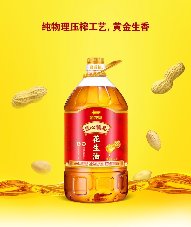 (特)金龙鱼匠心臻品食用油物理压榨一级花生油5L