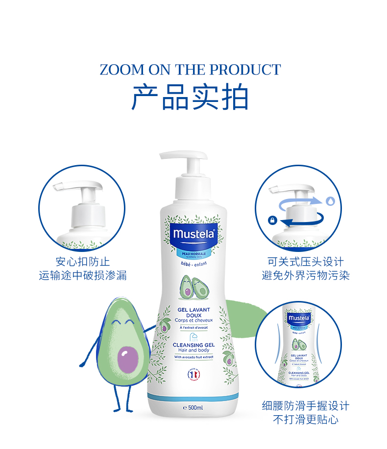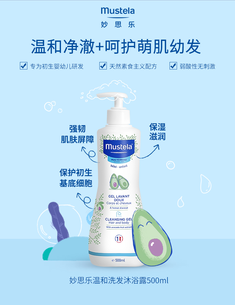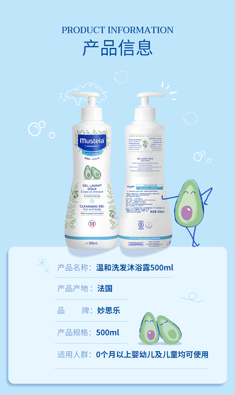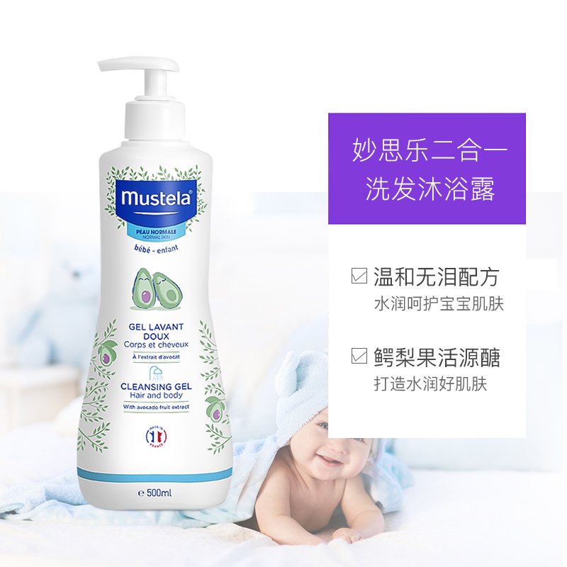 妙思乐儿童沐浴露洗发水二合一宝宝新生婴幼儿法国进口 洗发沐浴露二合一 500ml/瓶