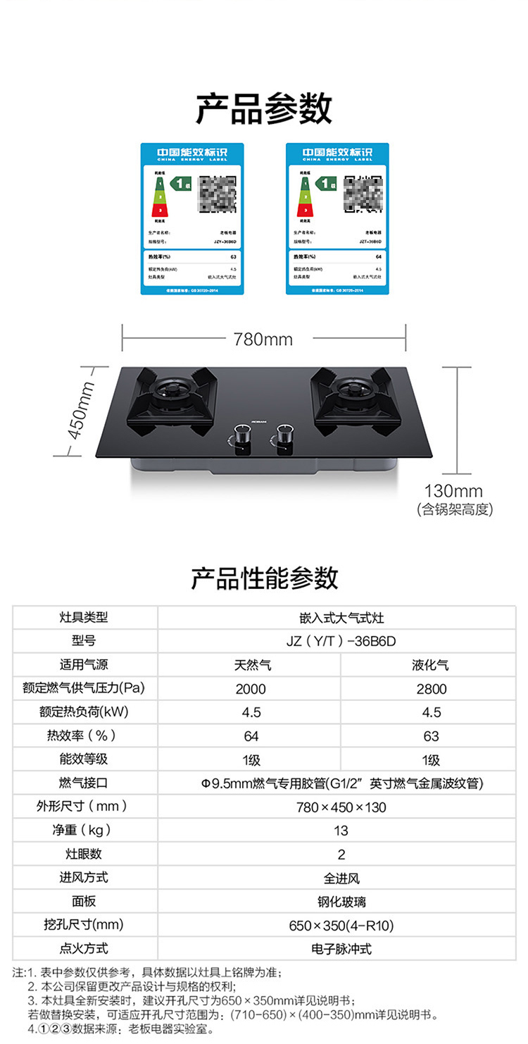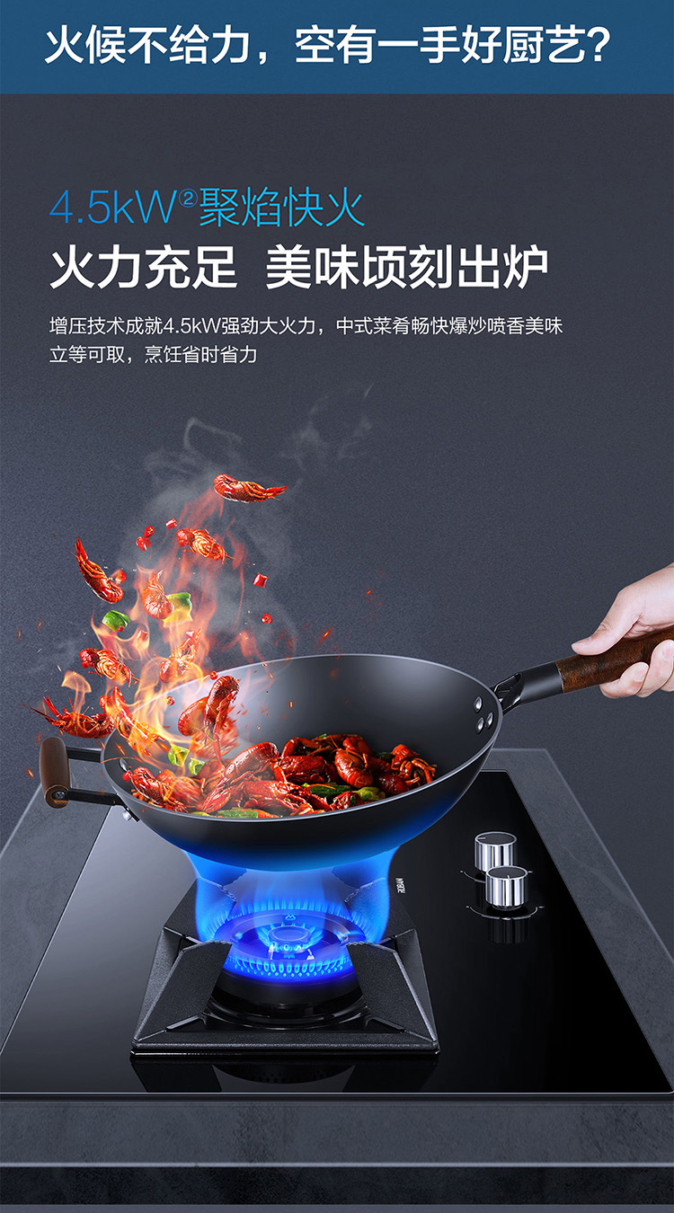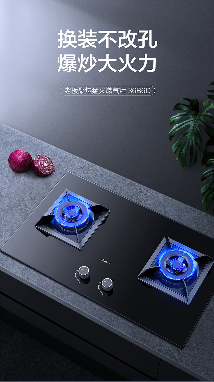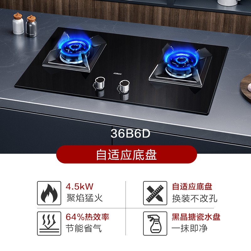 (特)老板 4.5kW可调节灶聚焰猛火 换装大火力家用嵌入式燃气灶双灶台灶具 JZT-36B6D
