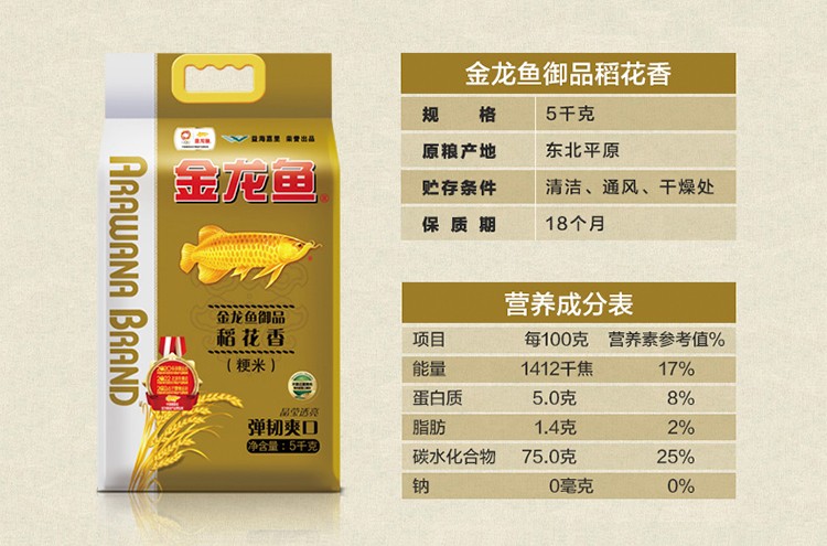 金龙鱼御品稻花香大米5KG 梗米 东北大米 弹韧爽口晶莹透亮 煮粥蒸饭专用米