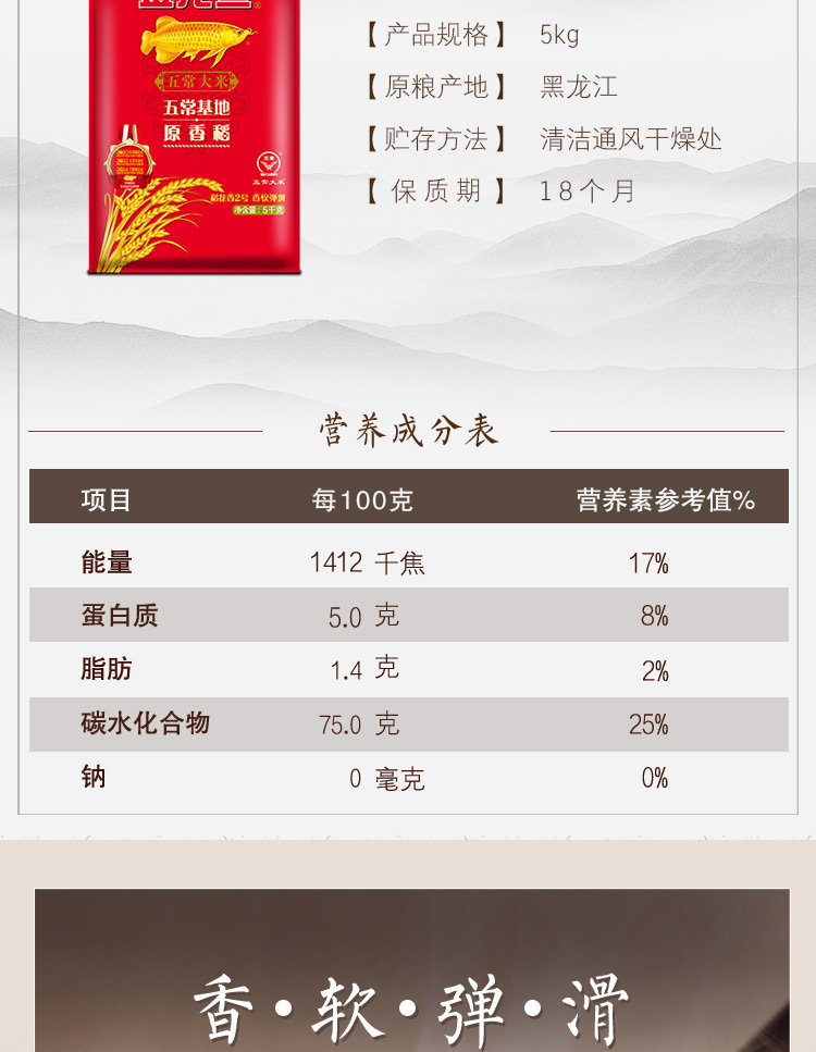 (特)金龙鱼 五常大米 五常稻花香大米 东北大米 原香稻5kg