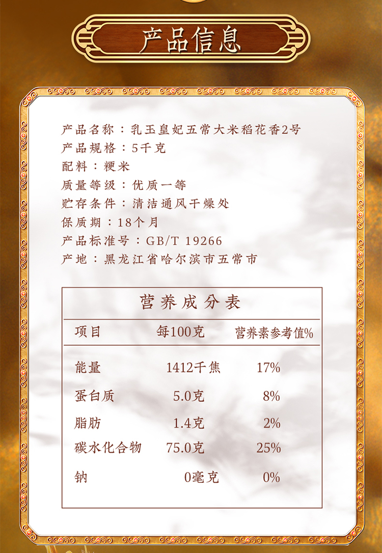 (特)金龙鱼 五常大米 五常稻花香大米 乳玉皇妃 5kg