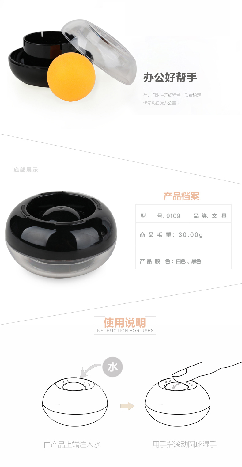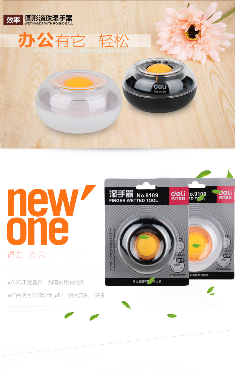 (特)得力(deli)湿手器 海绵缸 点钞沾手水缸粘手器 办公用品 9109 湿手器 黑色