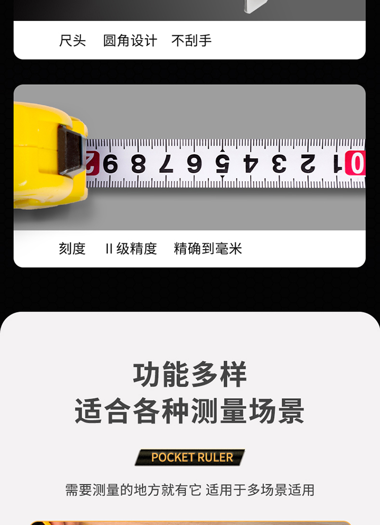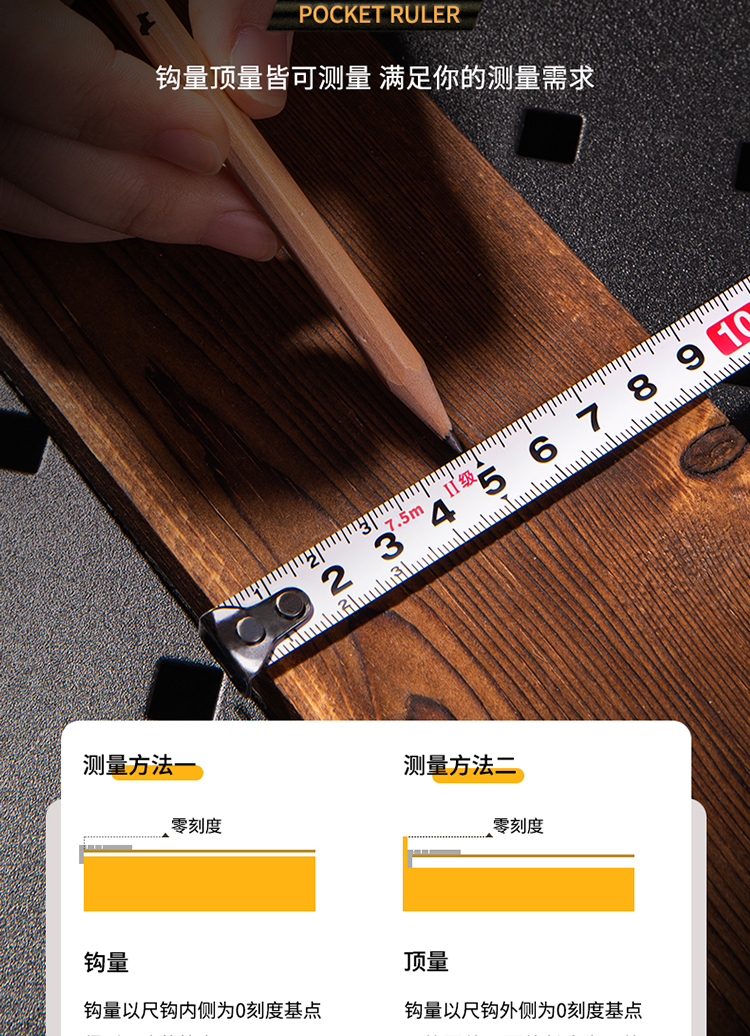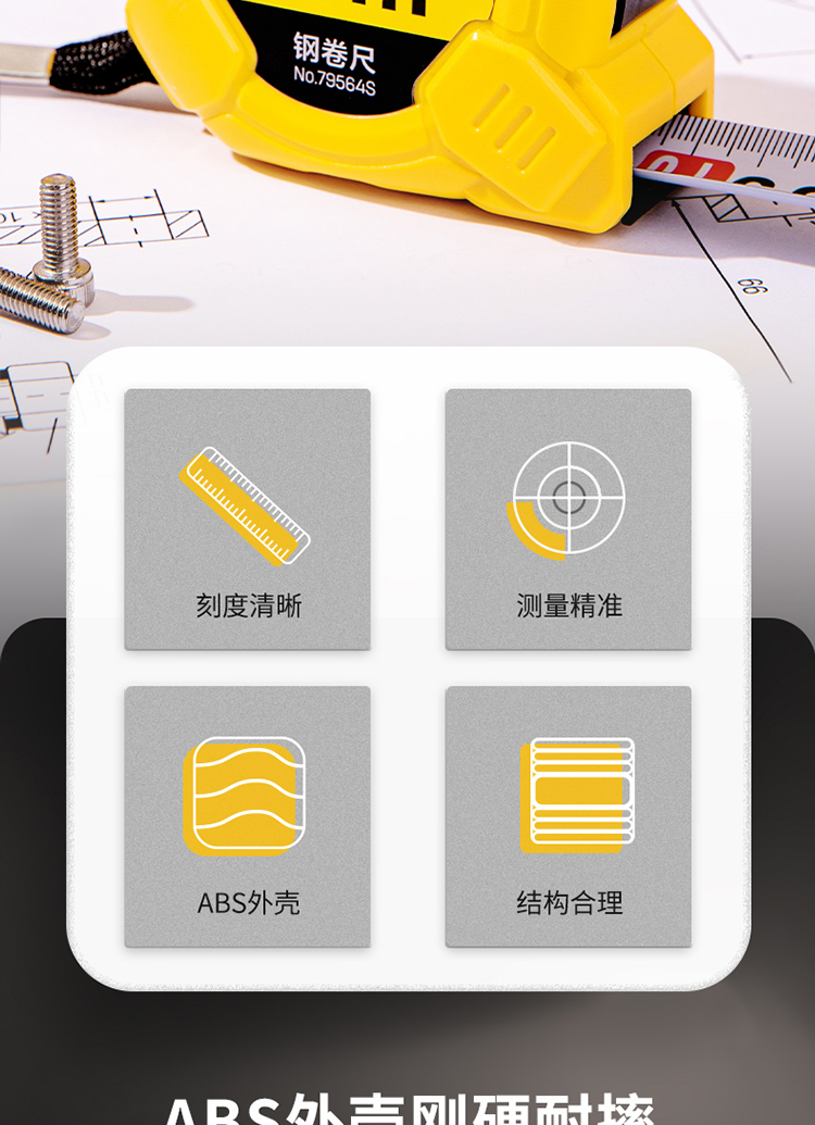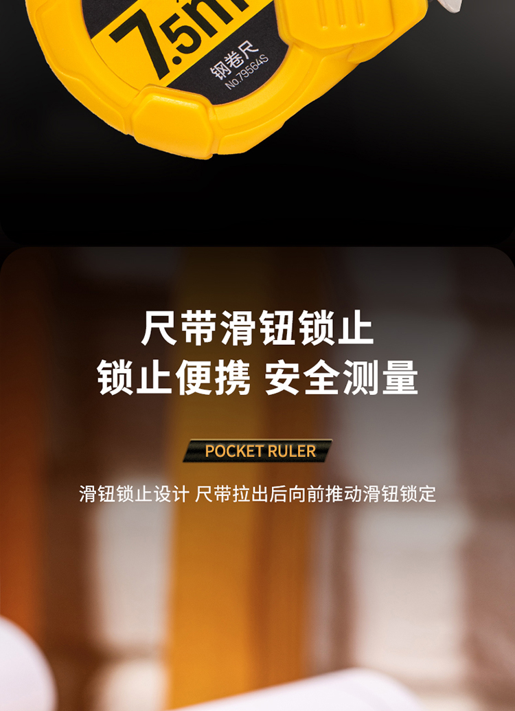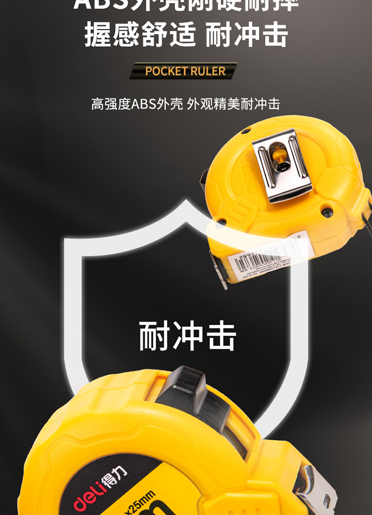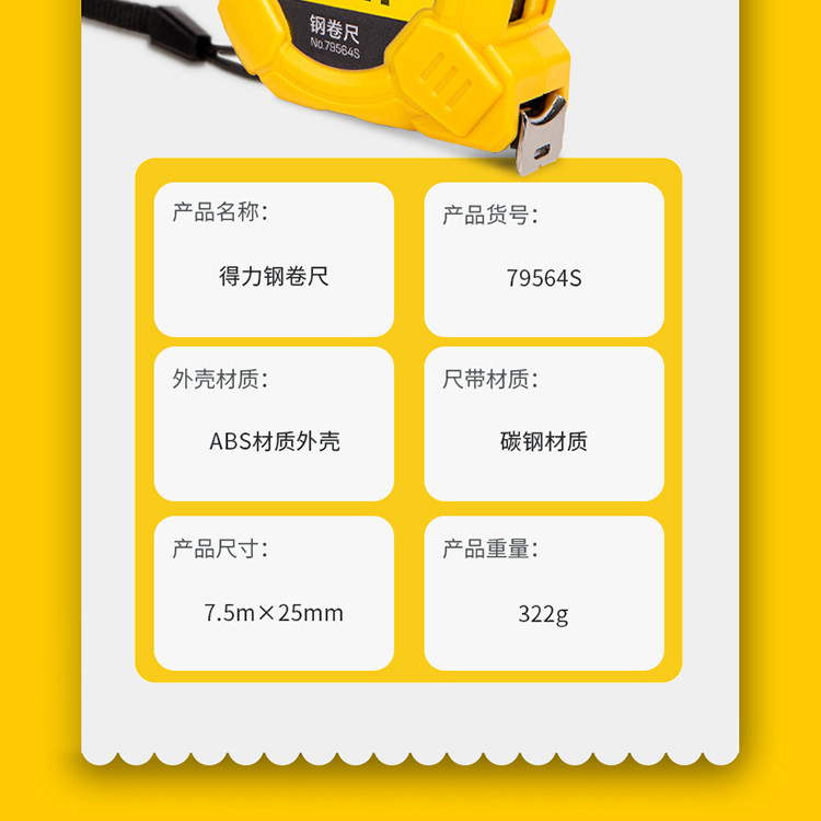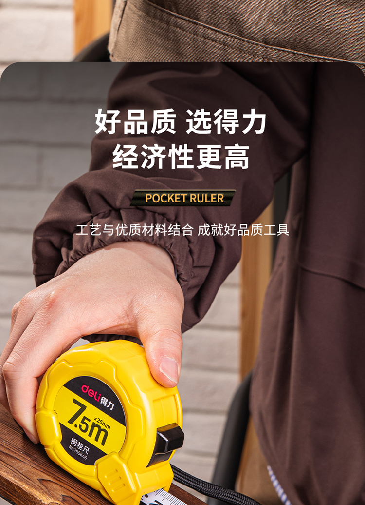 (特)得力(deli)7.5m锁定功能钢卷尺 精准测量便携尺子 黄色 79564S