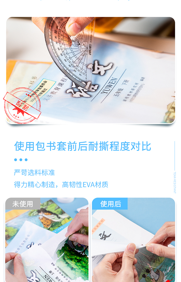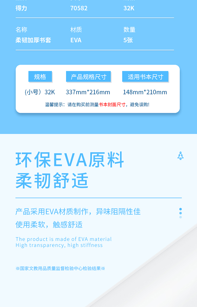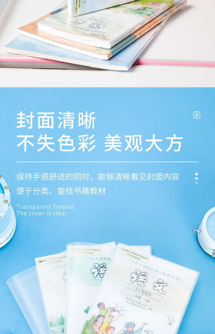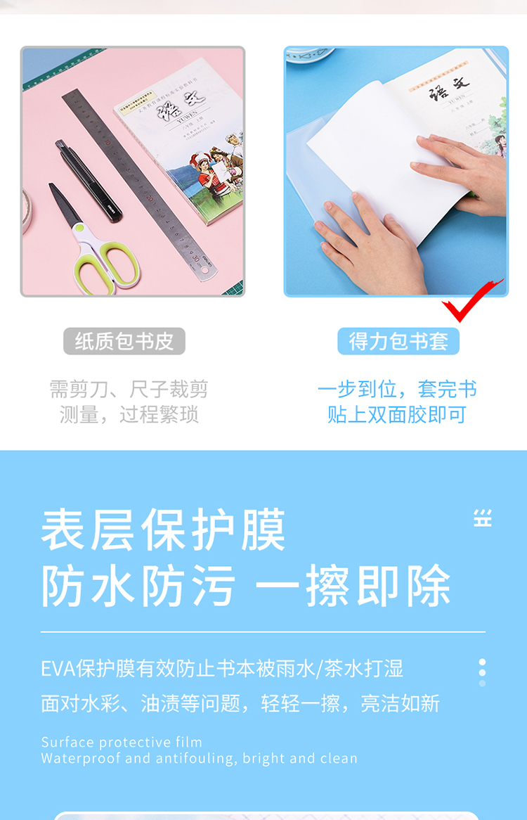 得力(deli)25K(原32K) 柔软加厚透明磨砂书套 柔韧耐磨包书皮包书膜 70582