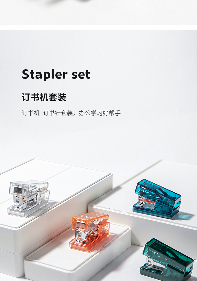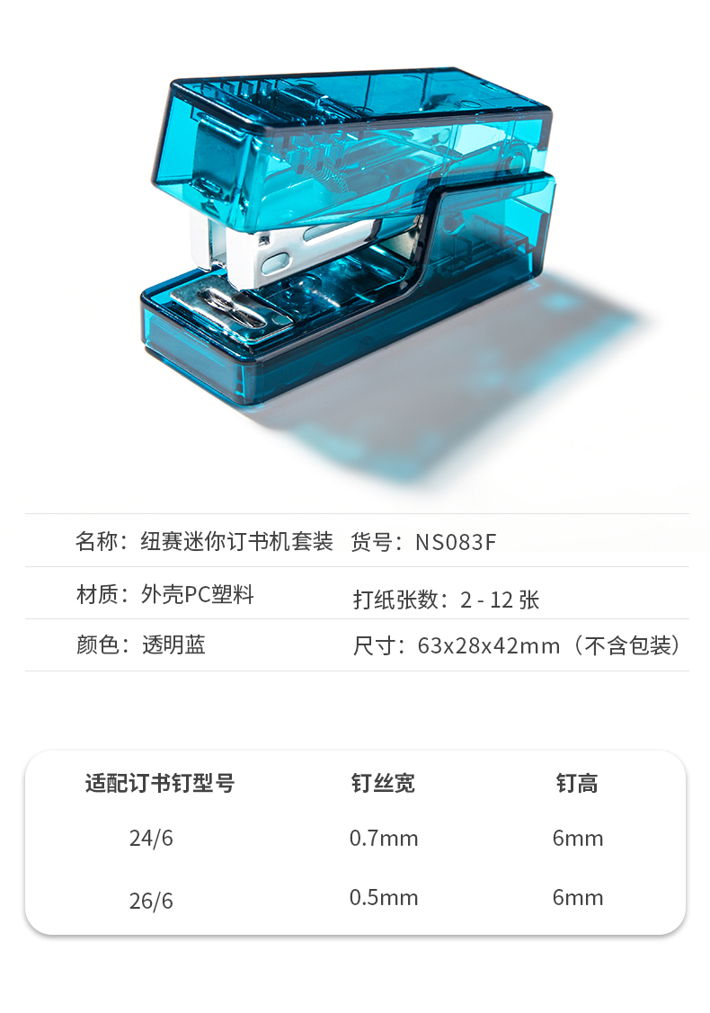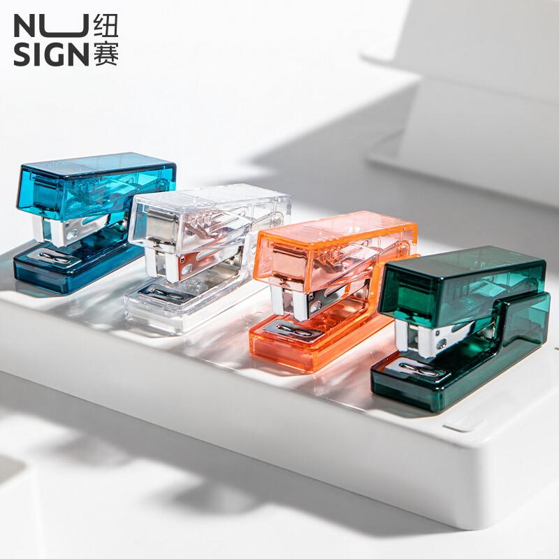 (特)得力纽赛(NUSIGN)透明迷你订书机(订书器+订书钉)口袋装学生办公轻巧便携透明订书器组合 NS083F