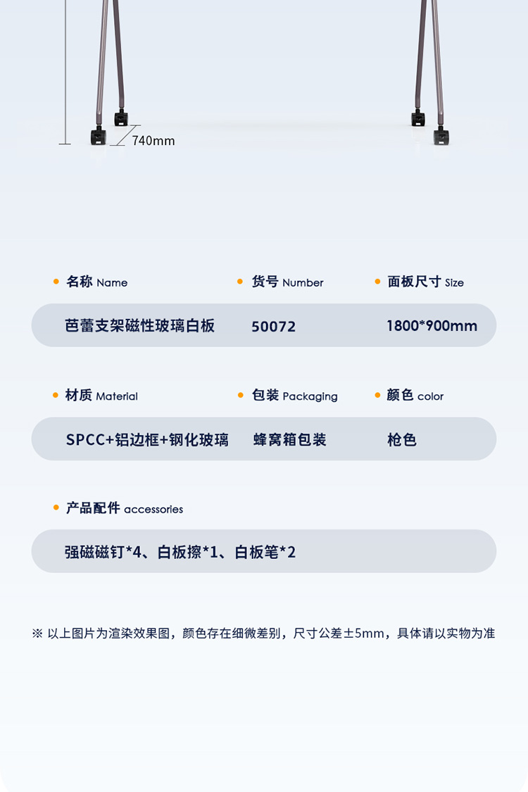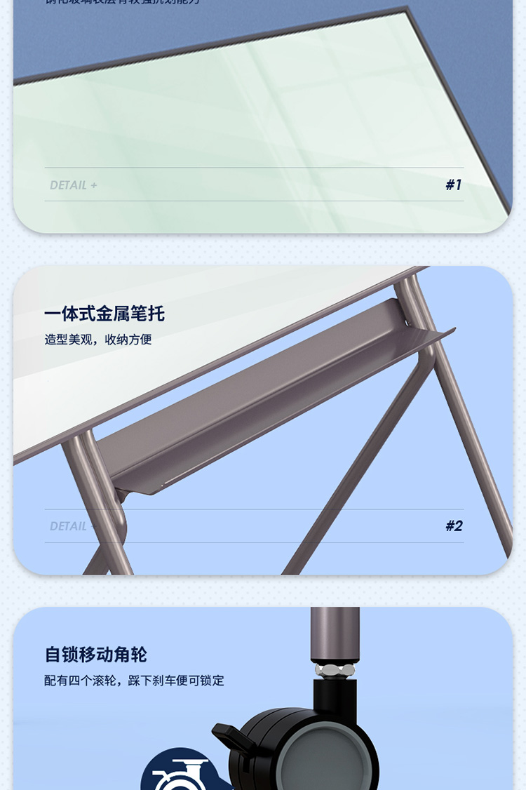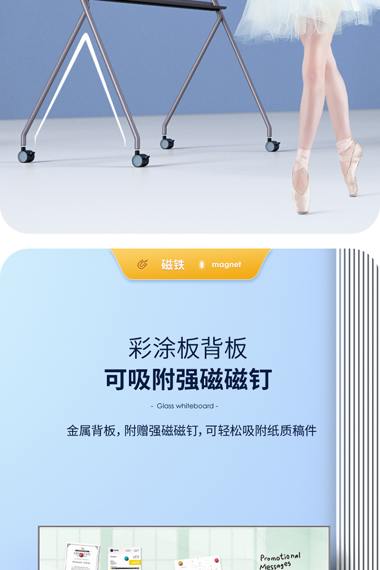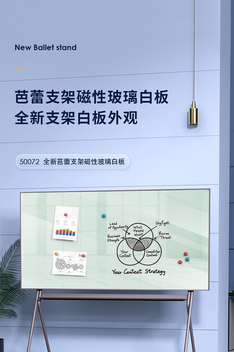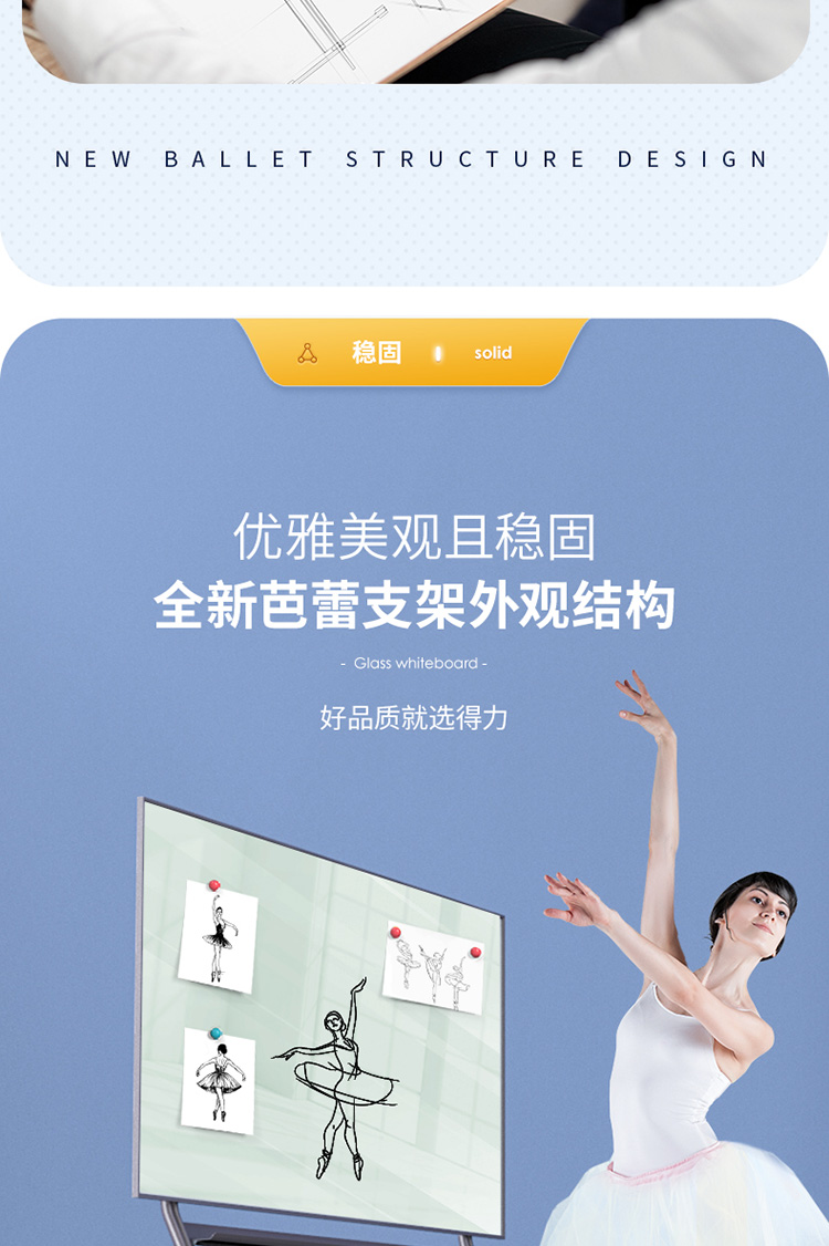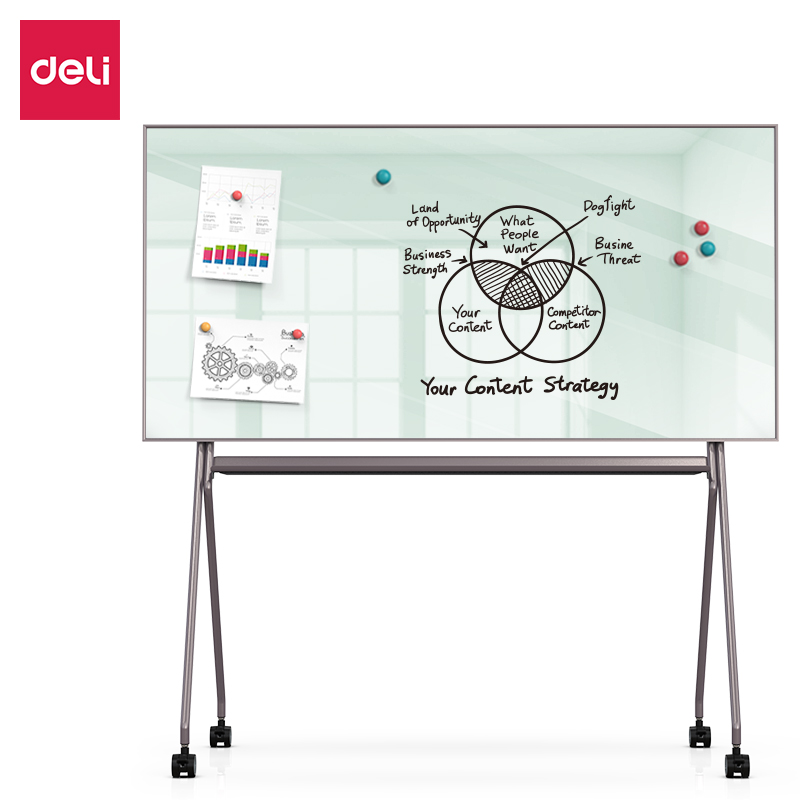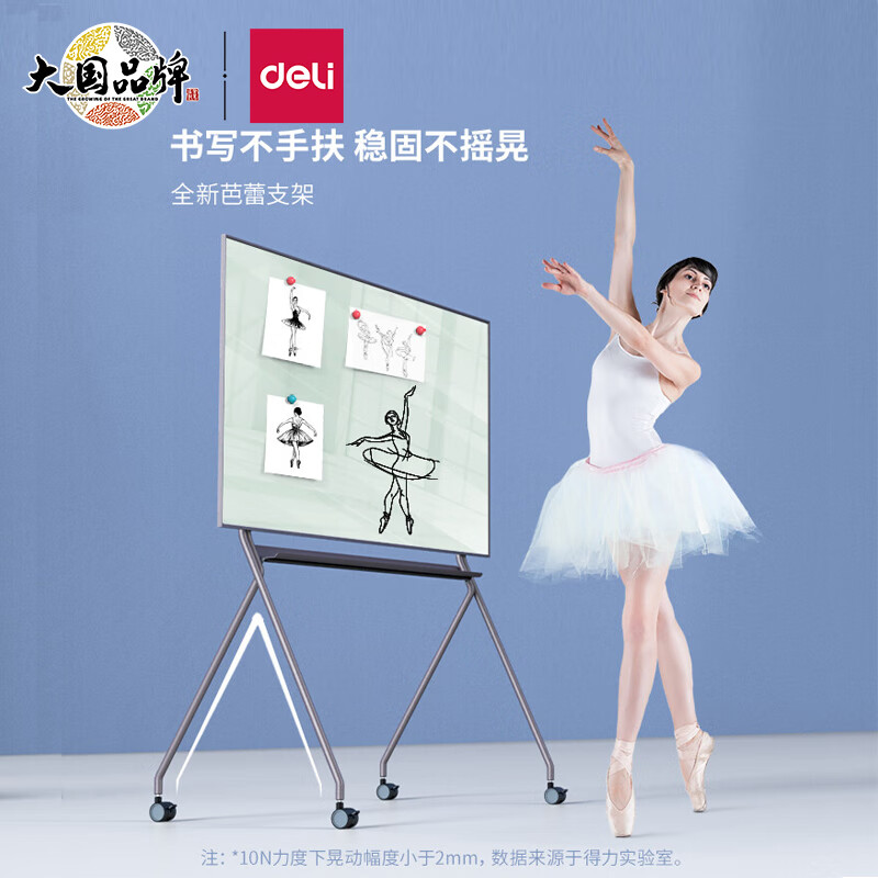 (特)得力(deli)芭蕾支架玻璃白板 180*90cm稳固型磁性钢化玻璃带架子白板办公会议写字板黑板50072