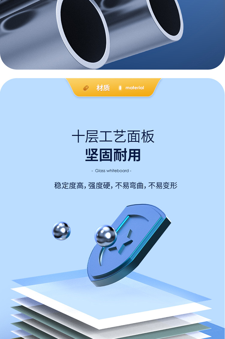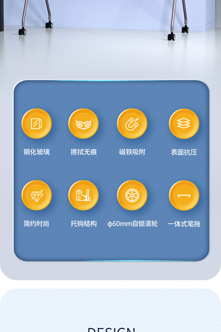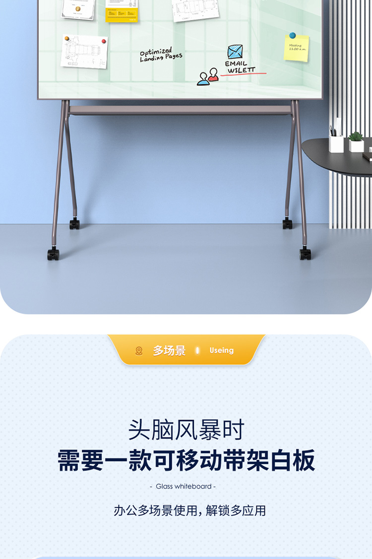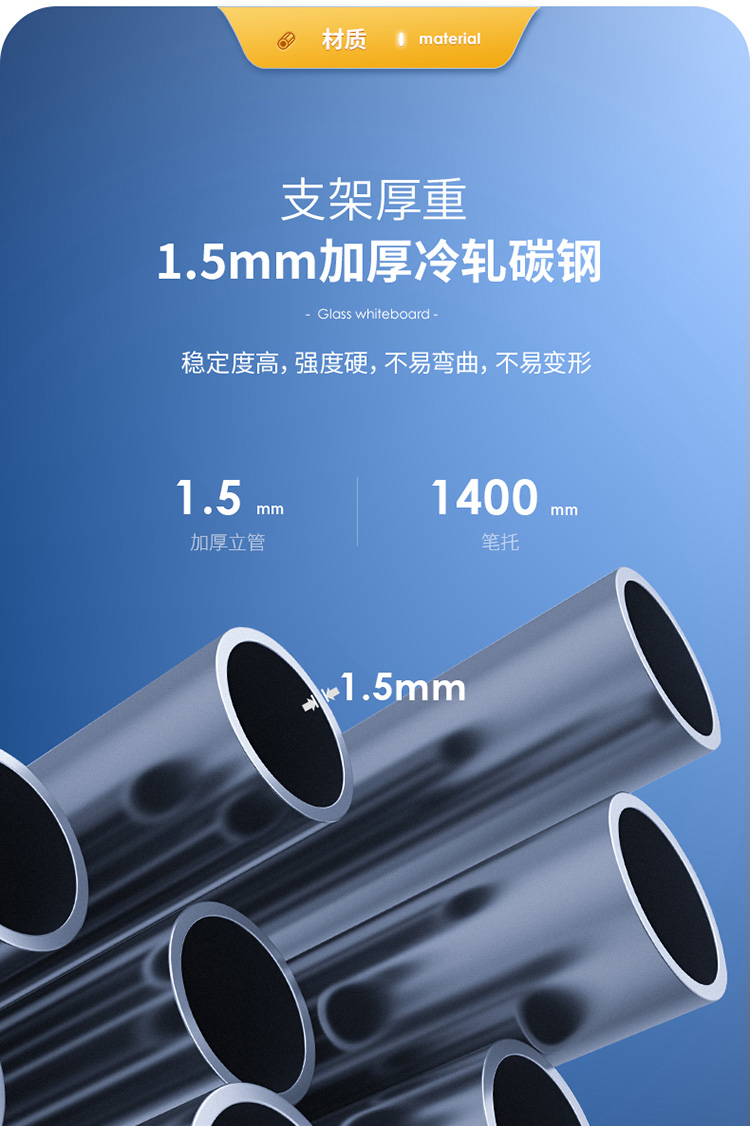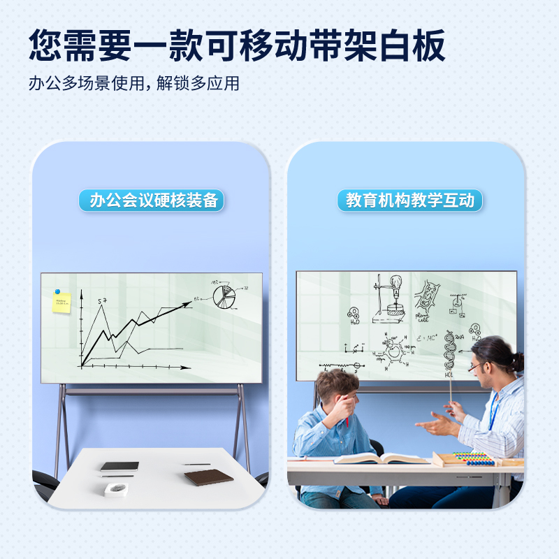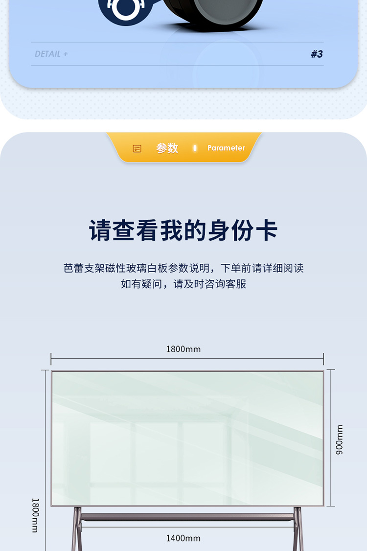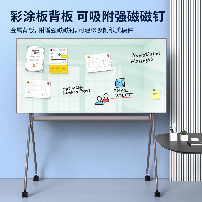 (特)得力(deli)芭蕾支架玻璃白板 180*90cm稳固型磁性钢化玻璃带架子白板办公会议写字板黑板50072