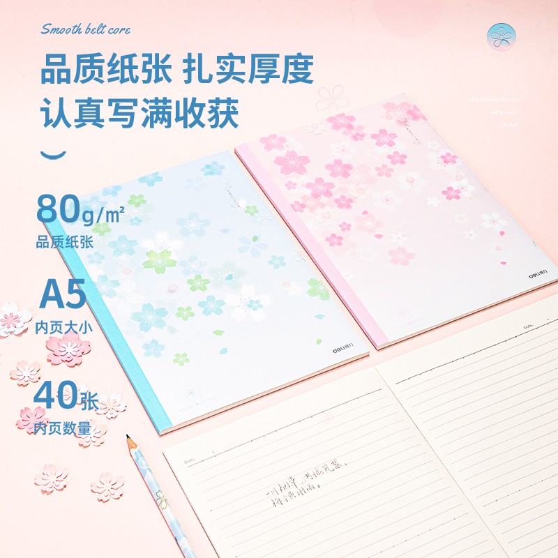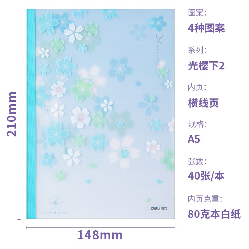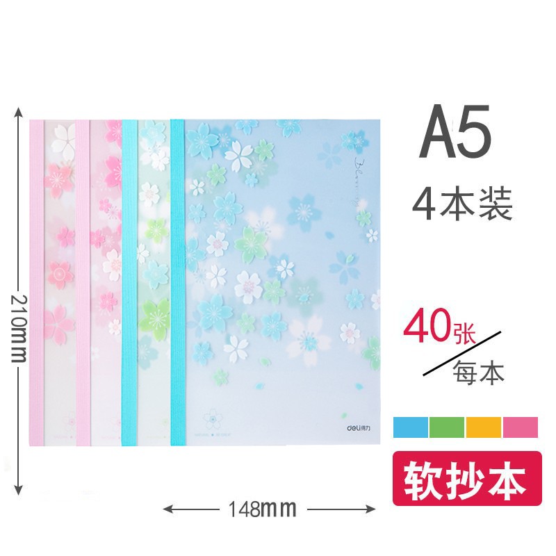 (特)得力(deli) 笔记本记事本加厚软抄本笔记本子文具会议记录本无线装订本 A5*40页/本 4本装 WPA540