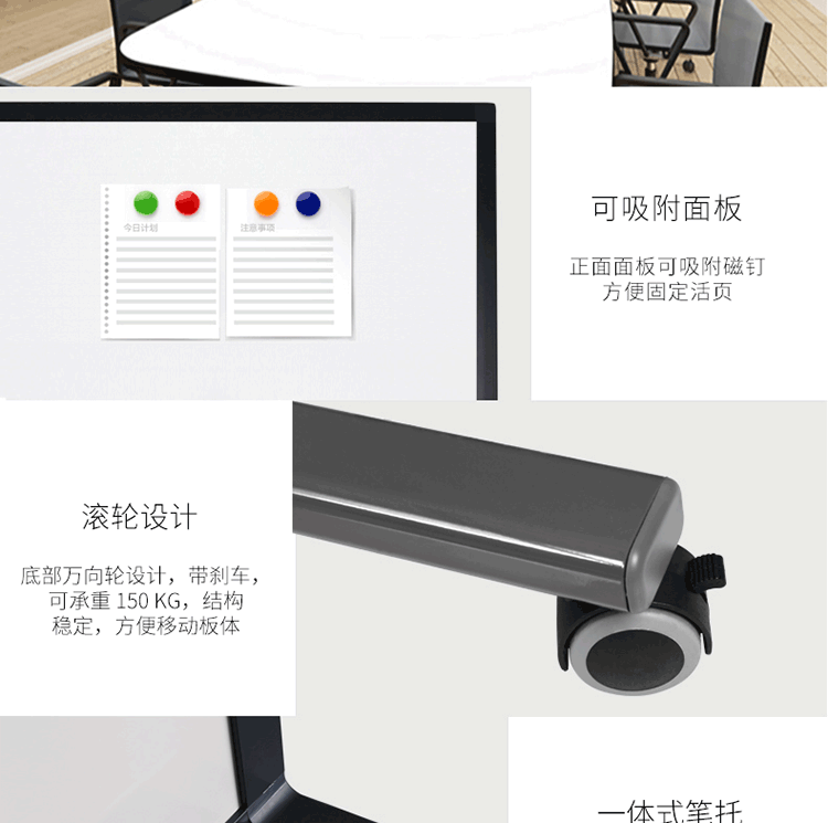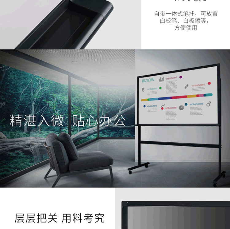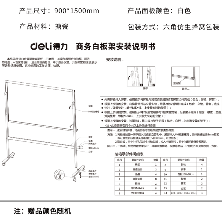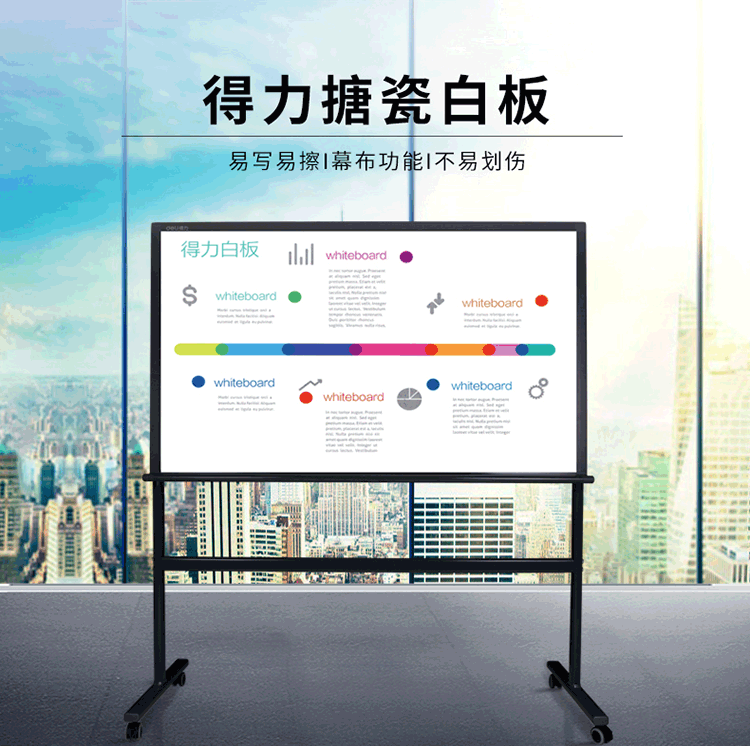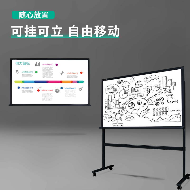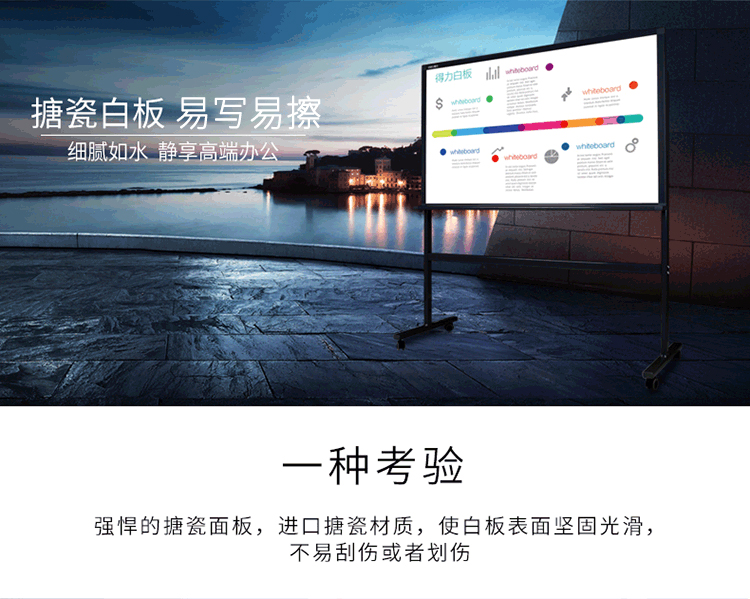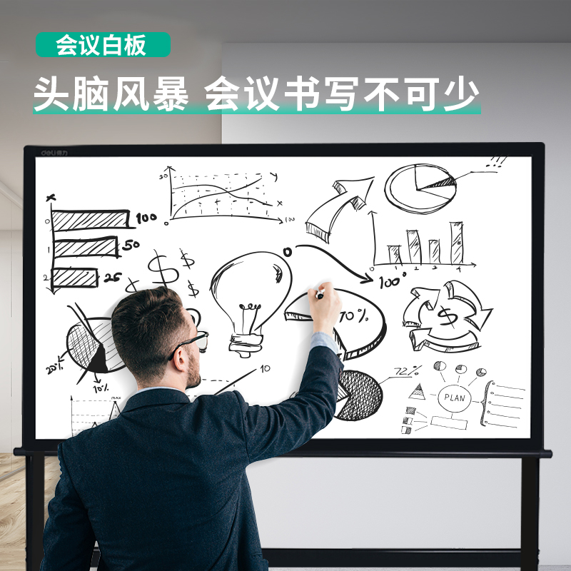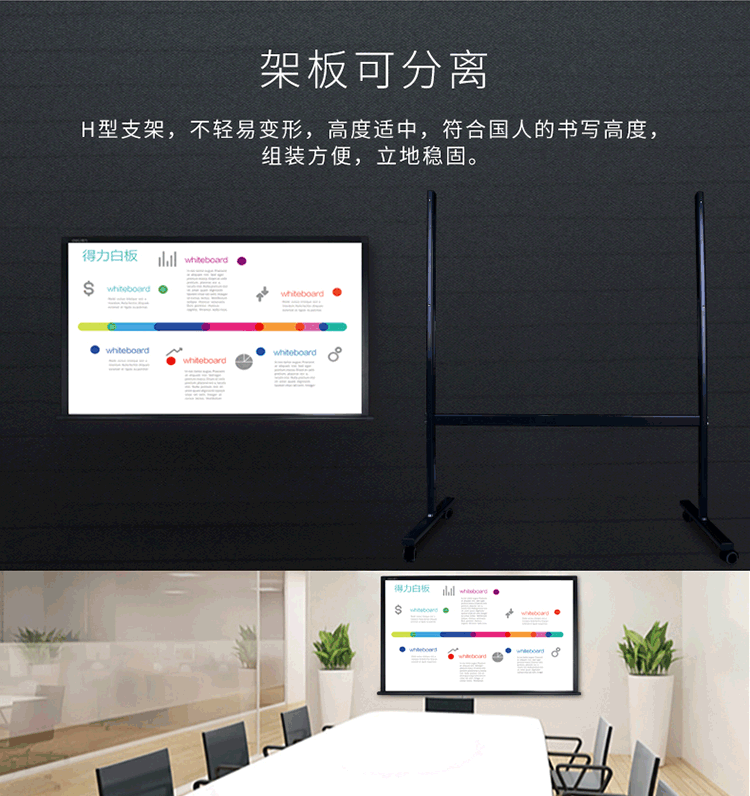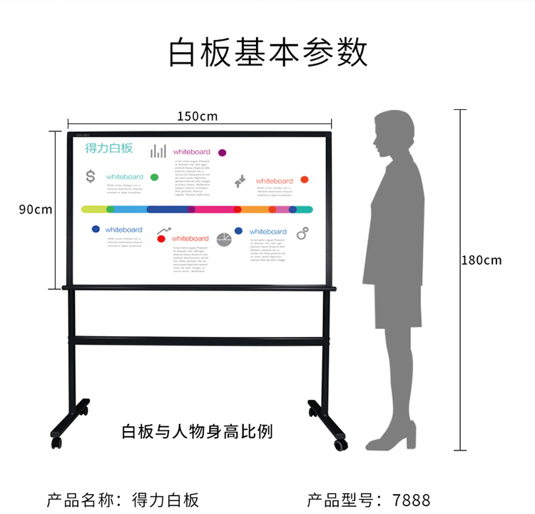 (特)得力(deli)旗舰系列支架式白板90*150cm办公商务会议H型珐琅白板 可移动珐琅搪瓷写字板黑板7888