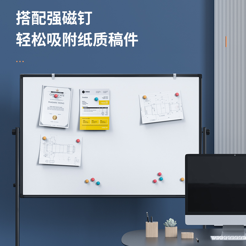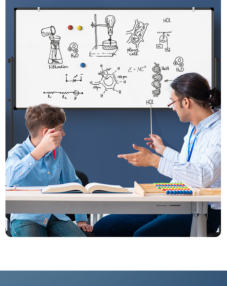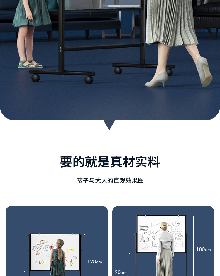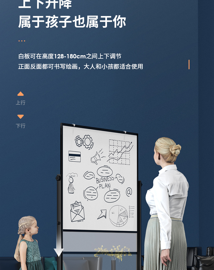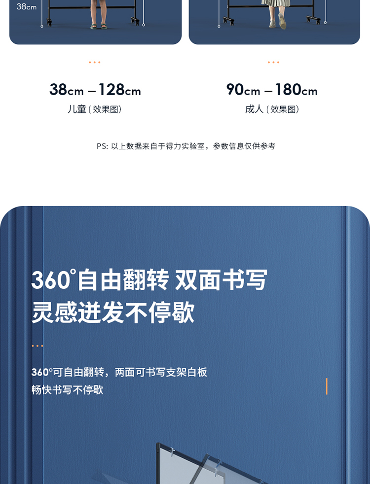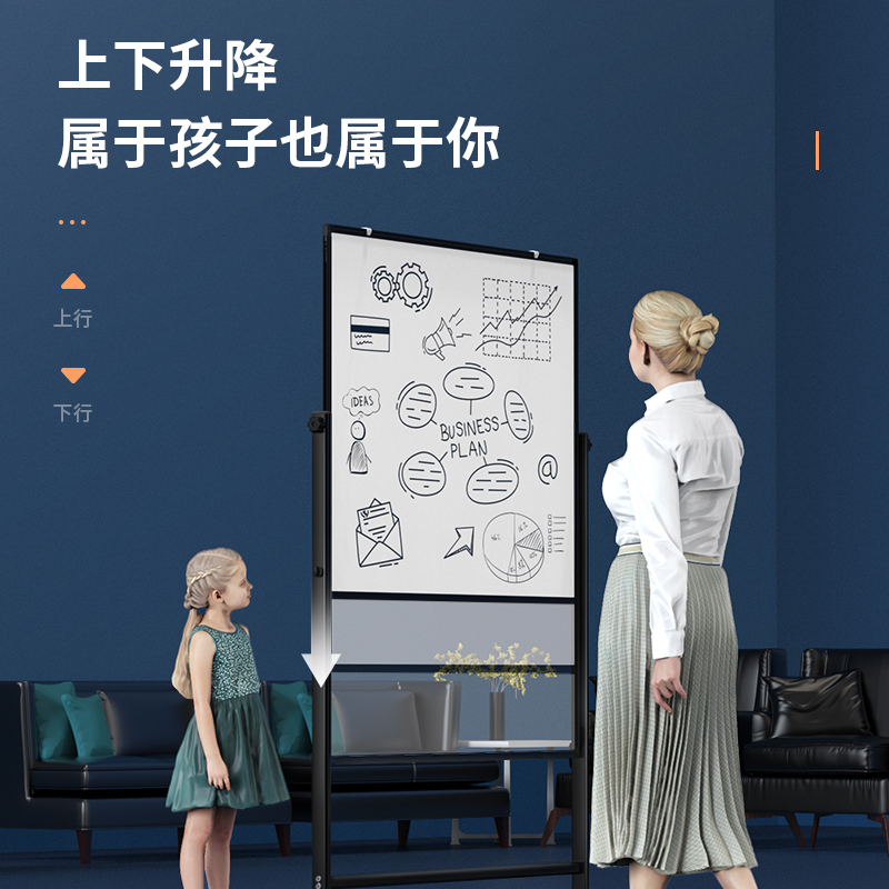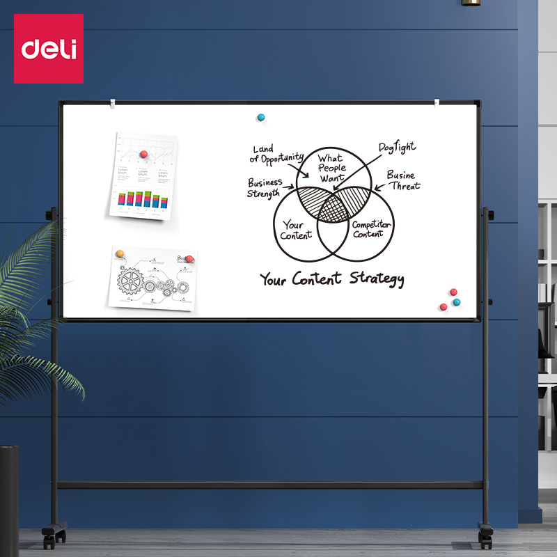 (特)得力(deli)家用高端款180*90cmH型支架式白板 双面书写可移动升降儿童画板/办公会议白板黑板/写字板50094