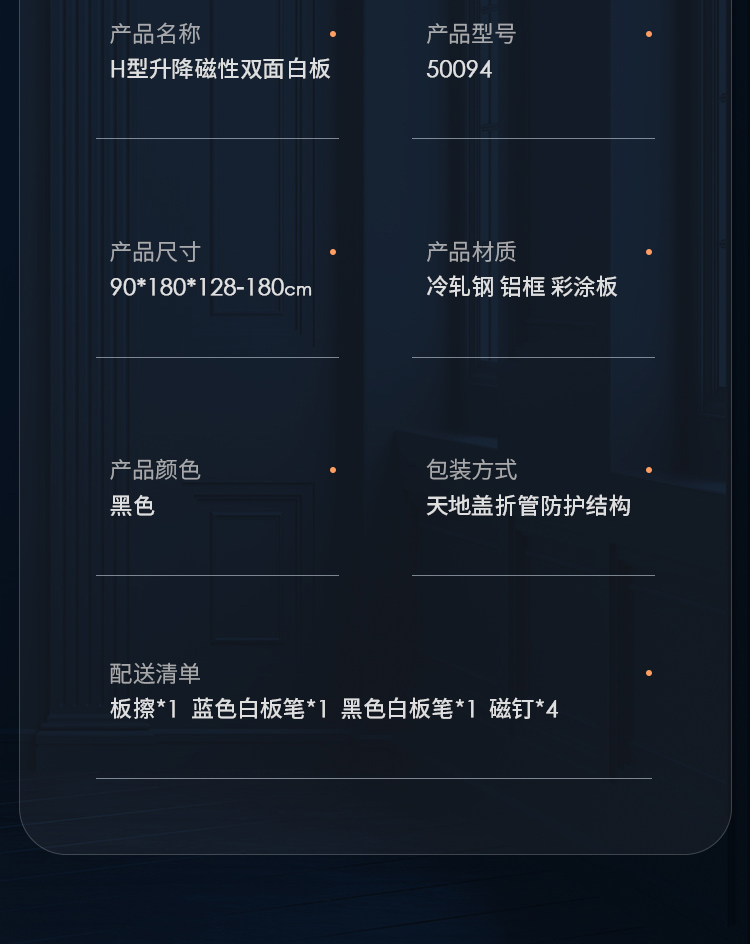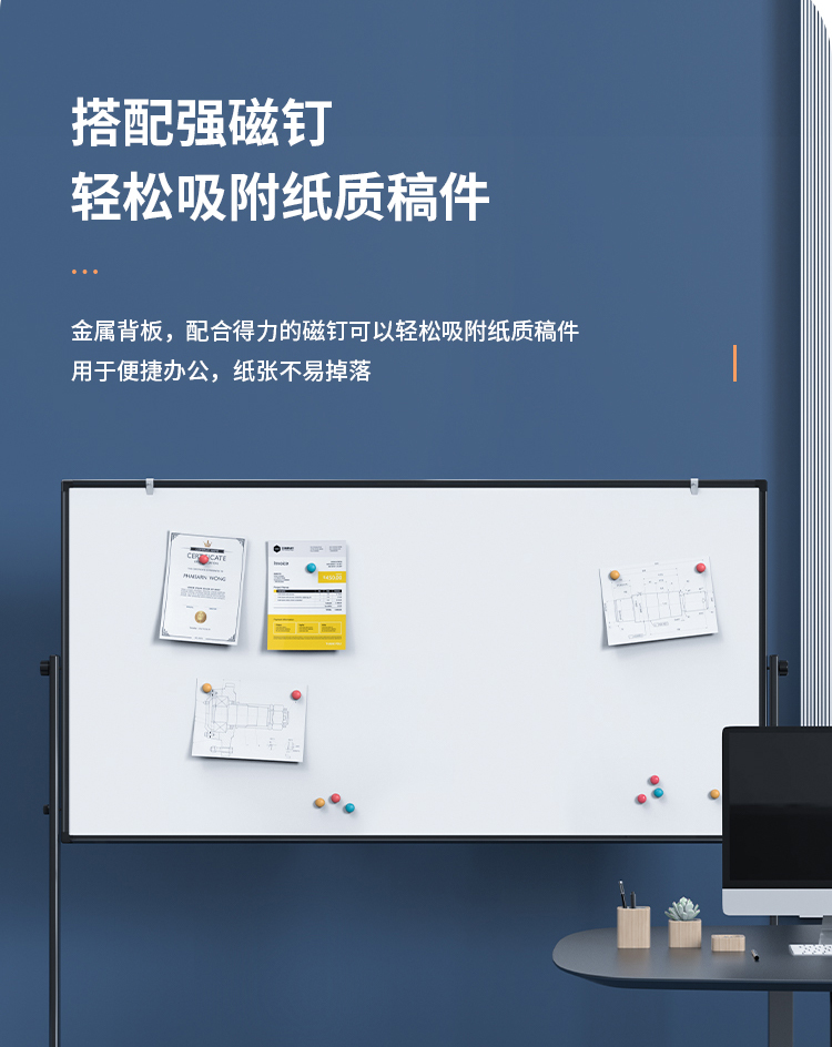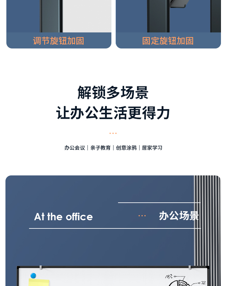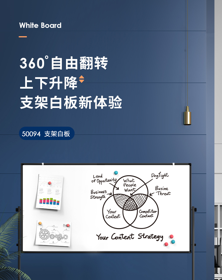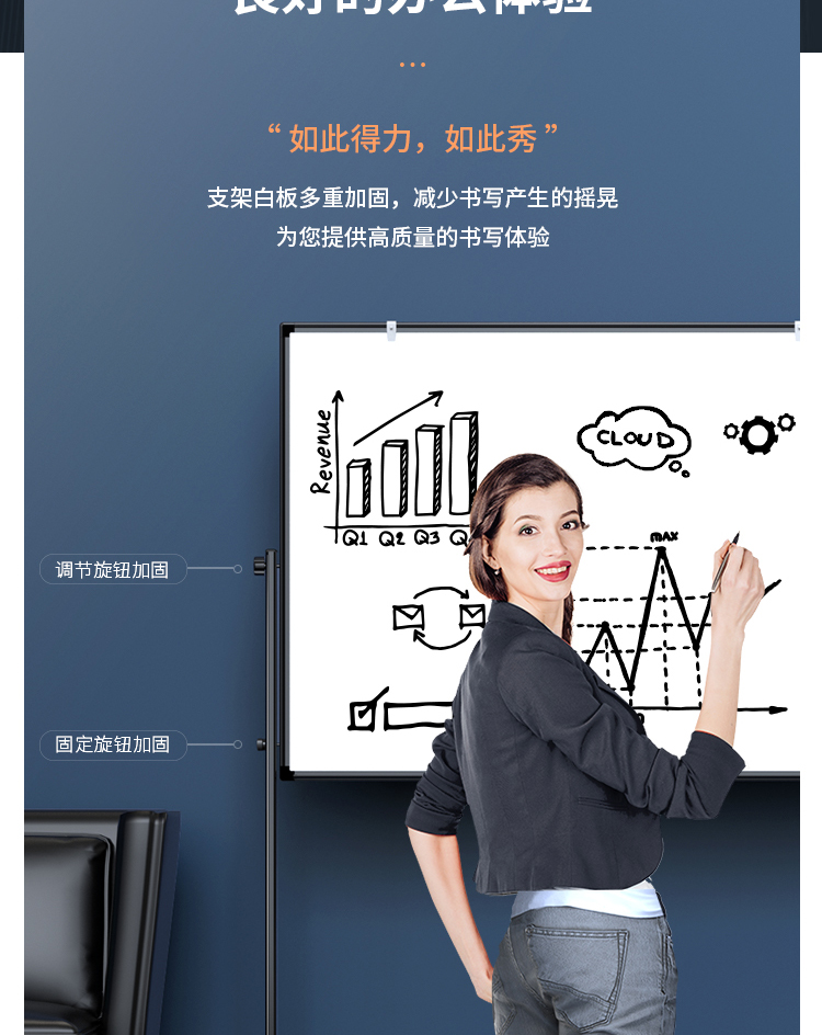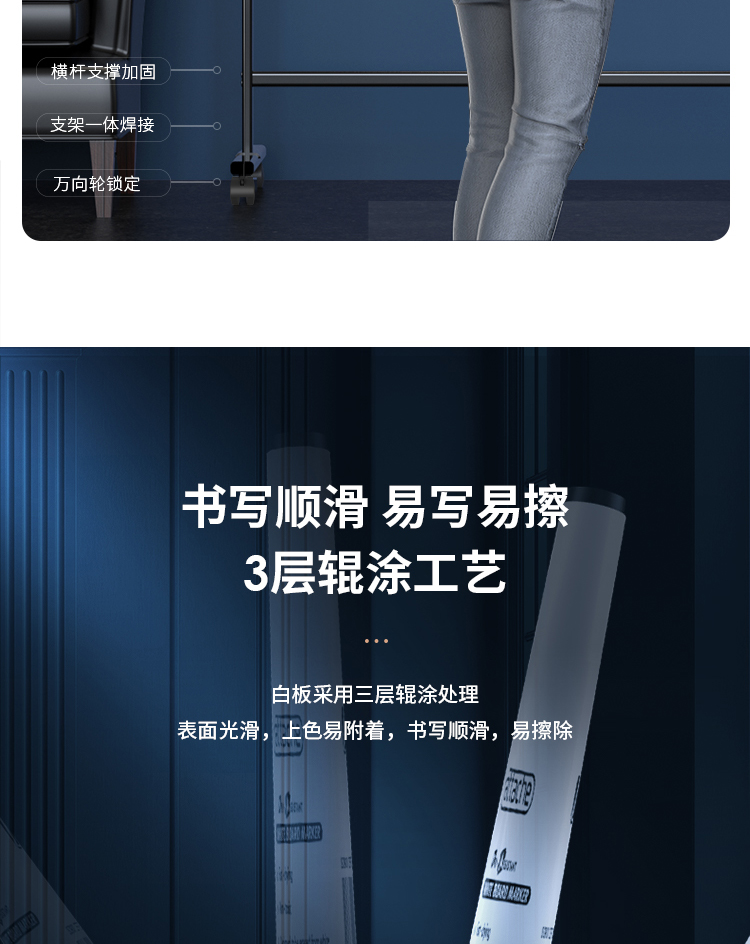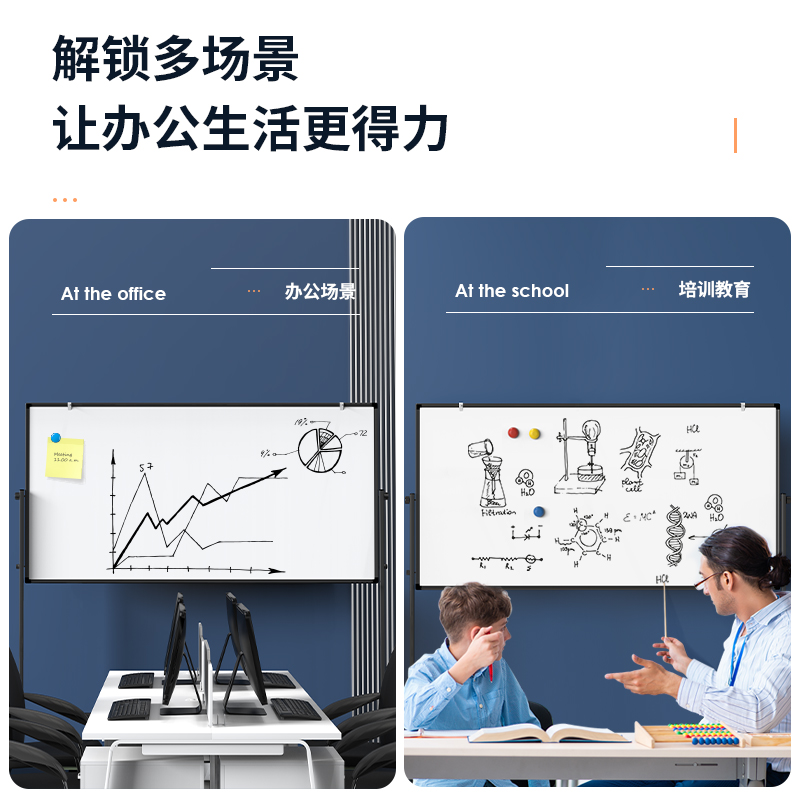 (特)得力(deli)家用高端款180*90cmH型支架式白板 双面书写可移动升降儿童画板/办公会议白板黑板/写字板50094