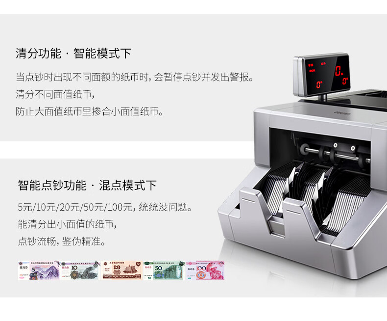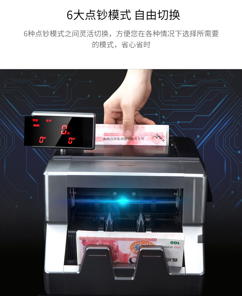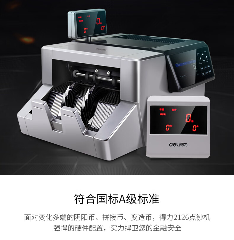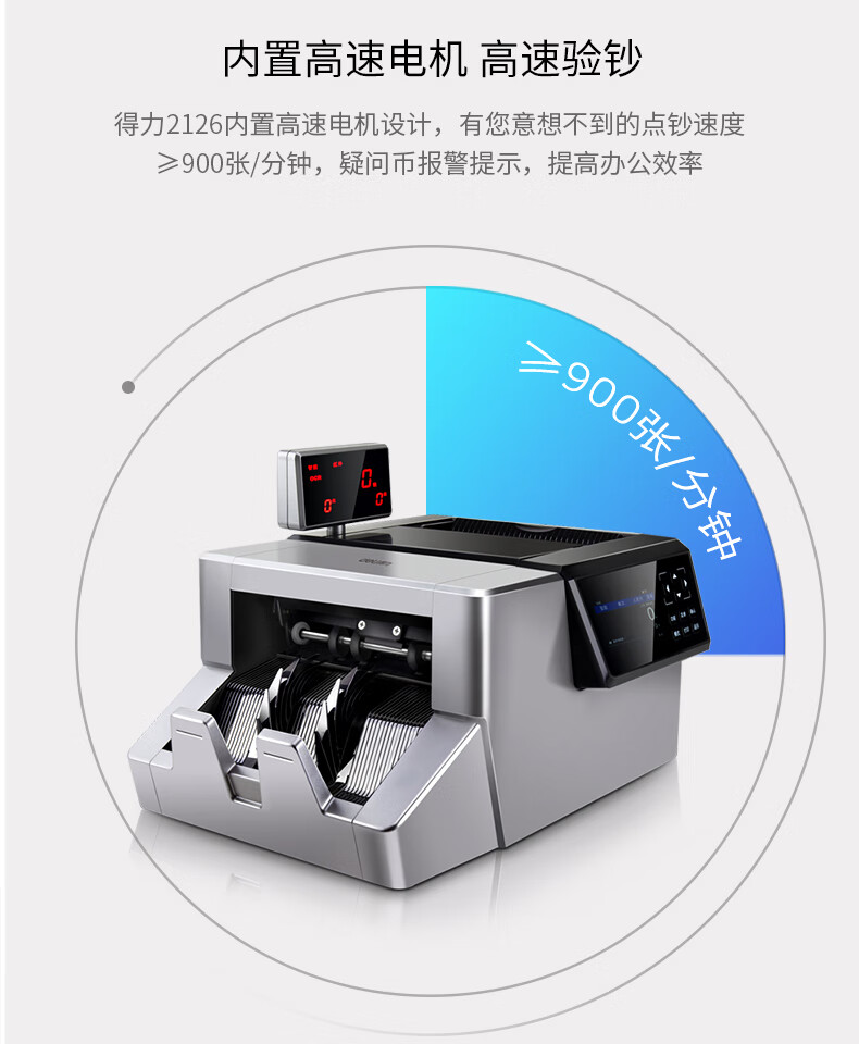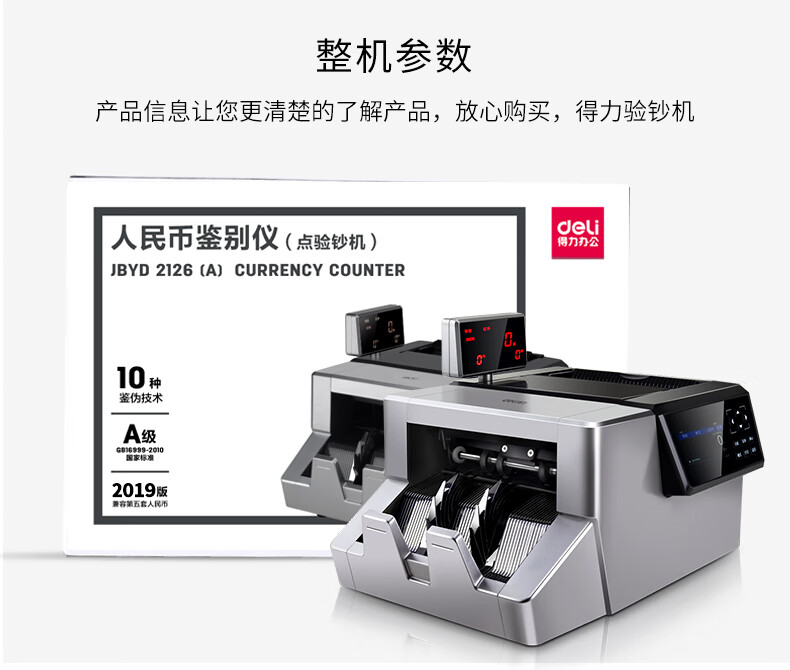 (特)得力(deli)支持新版人民币 A类银行可用多功能智能点钞机 10重鉴伪人民币验钞点钞机 2126