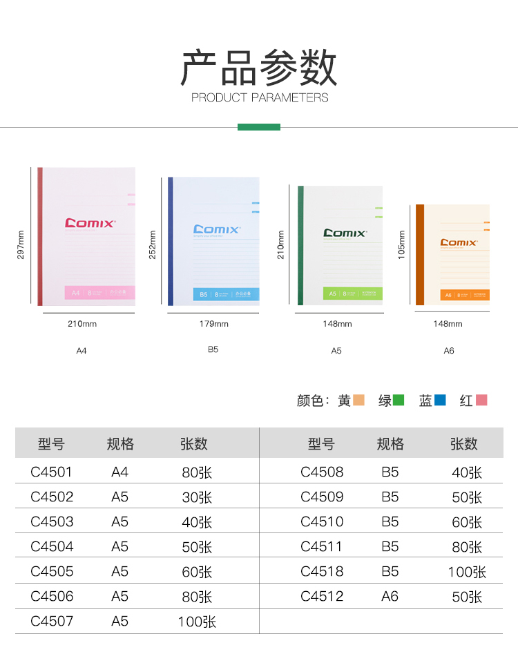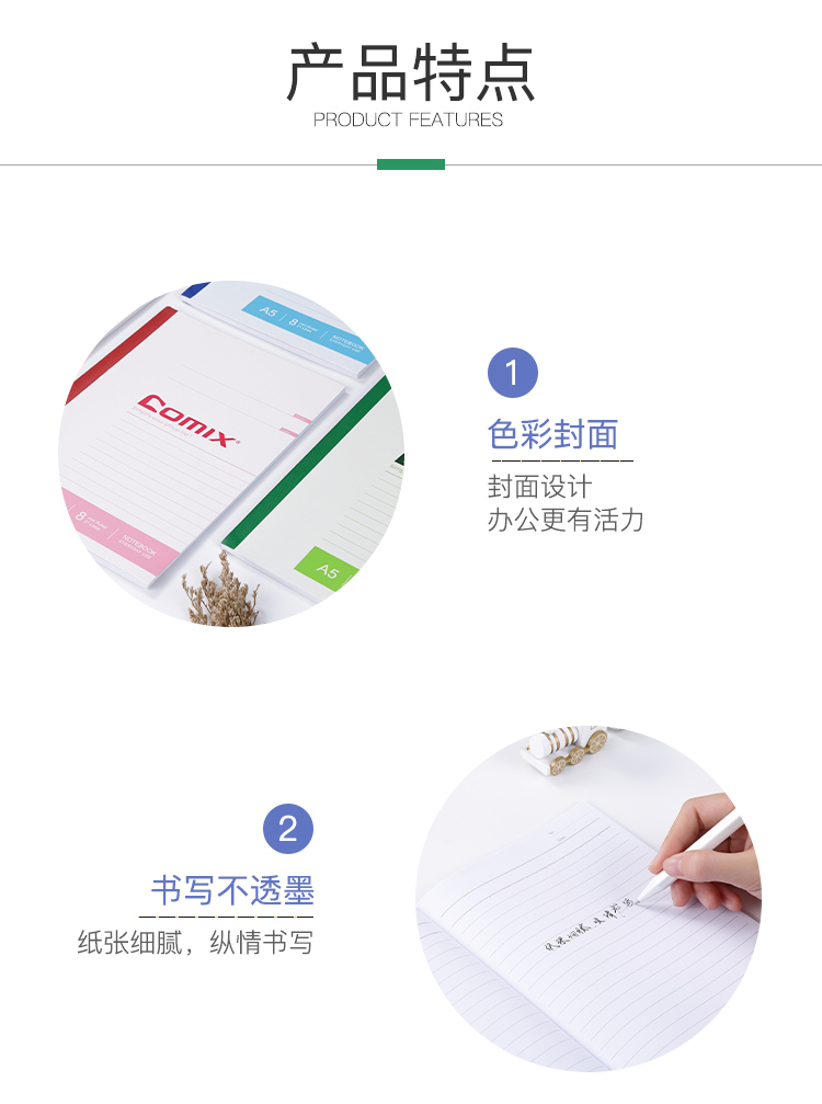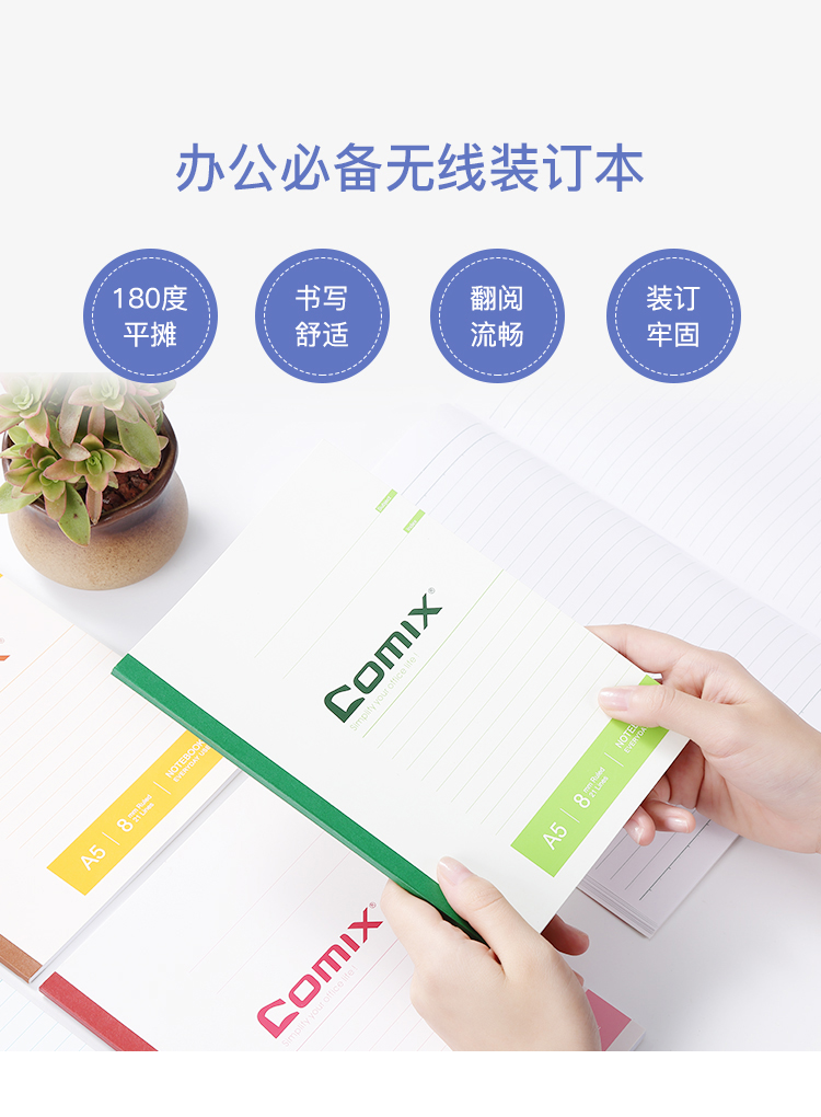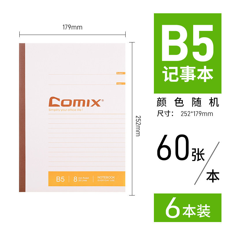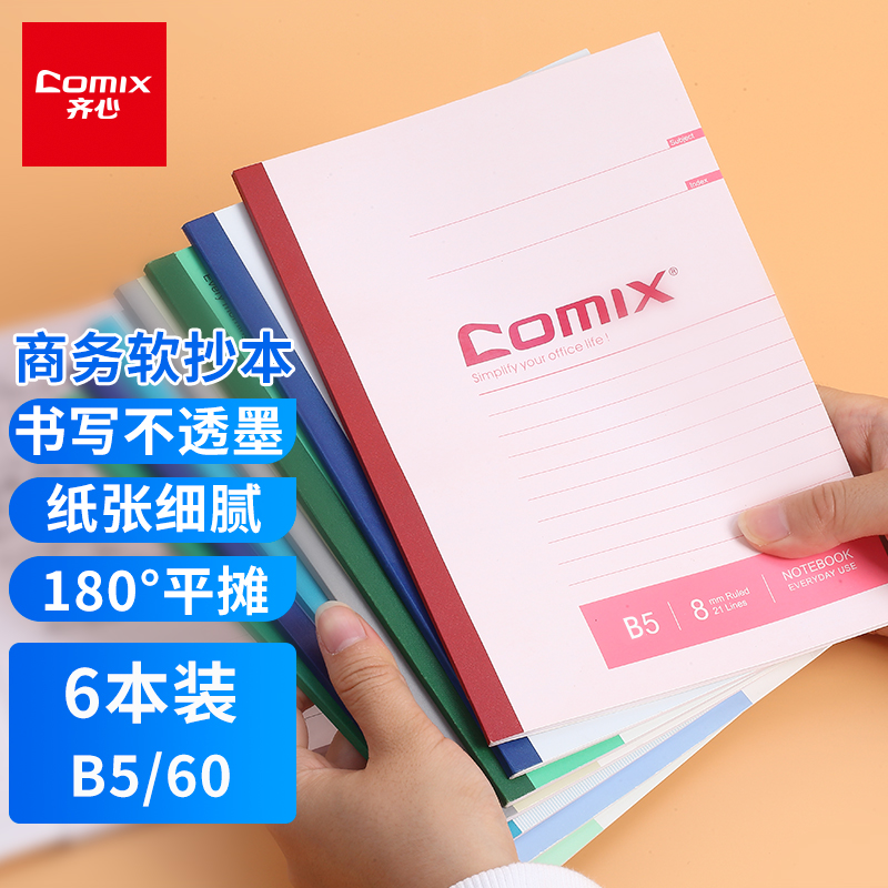 (特)齐心(COMIX)办公无线装订记事本会议软面抄180°平摊舒适书写 笔记本 B5/60张/6本装*2套 C4510