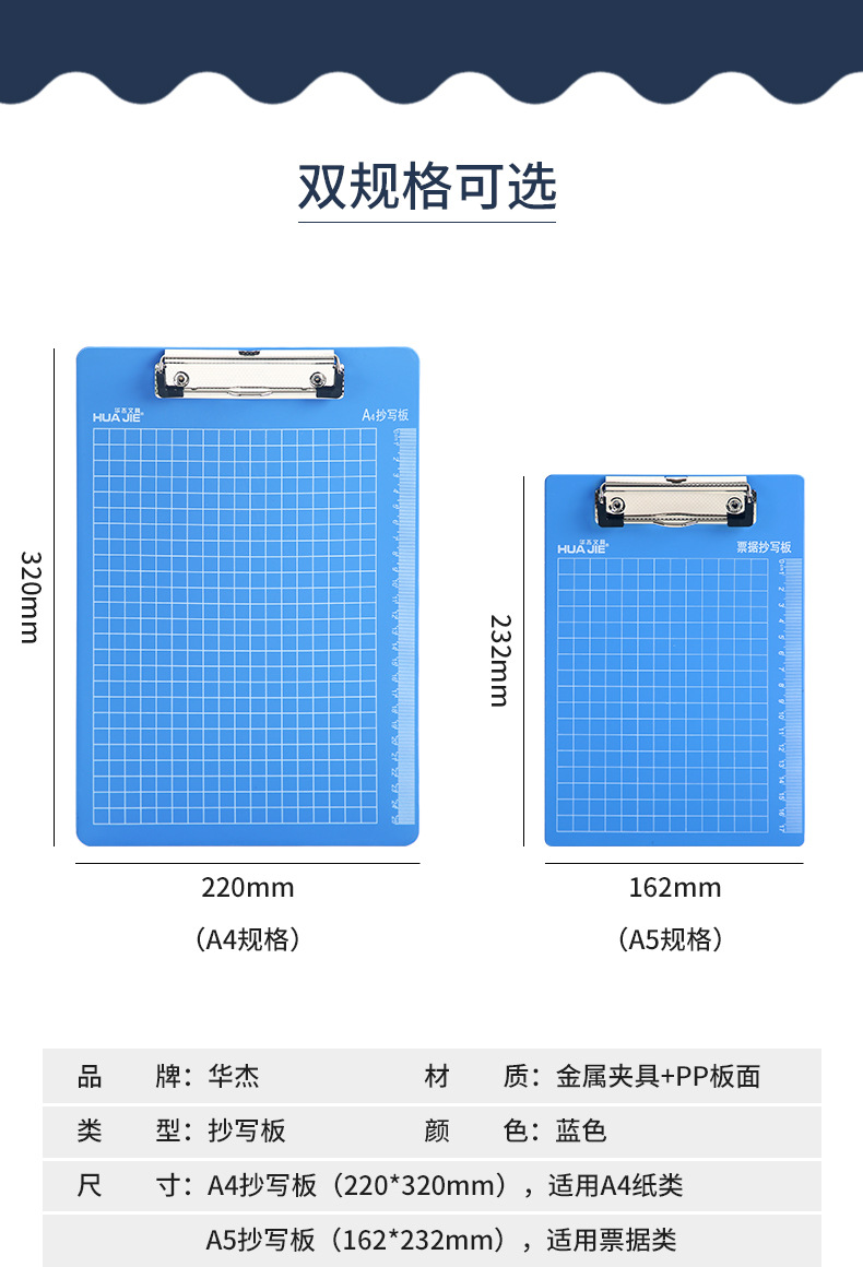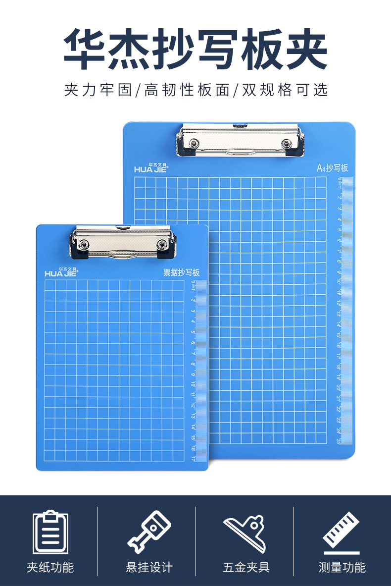华杰 A4/A5塑料刻度抄写板书写板夹悬挂式文件夹板写字垫板票据夹 6个一组