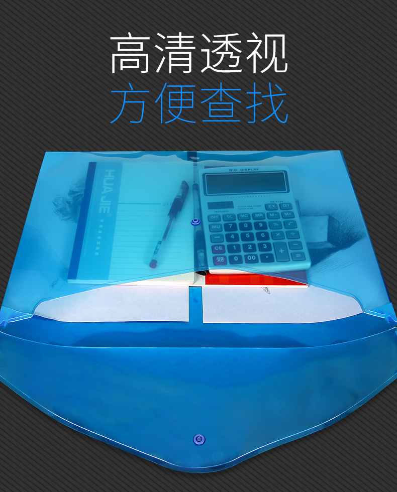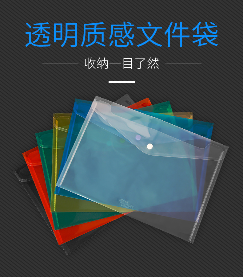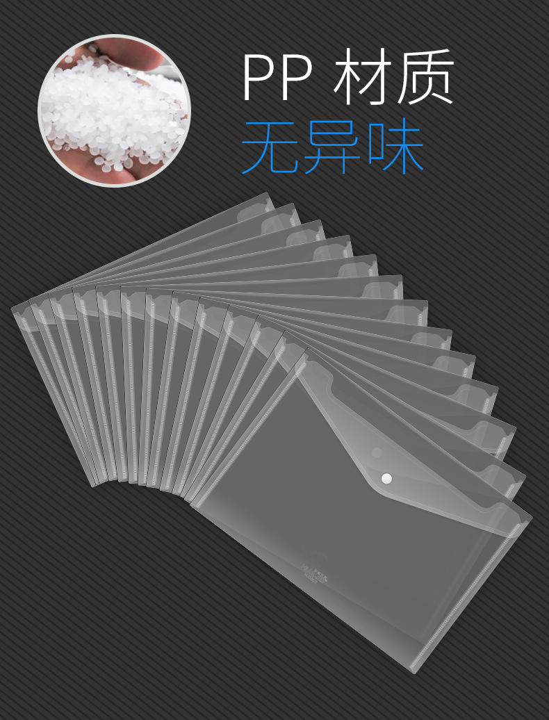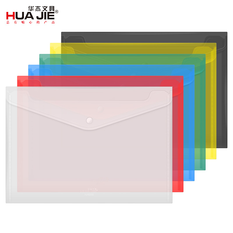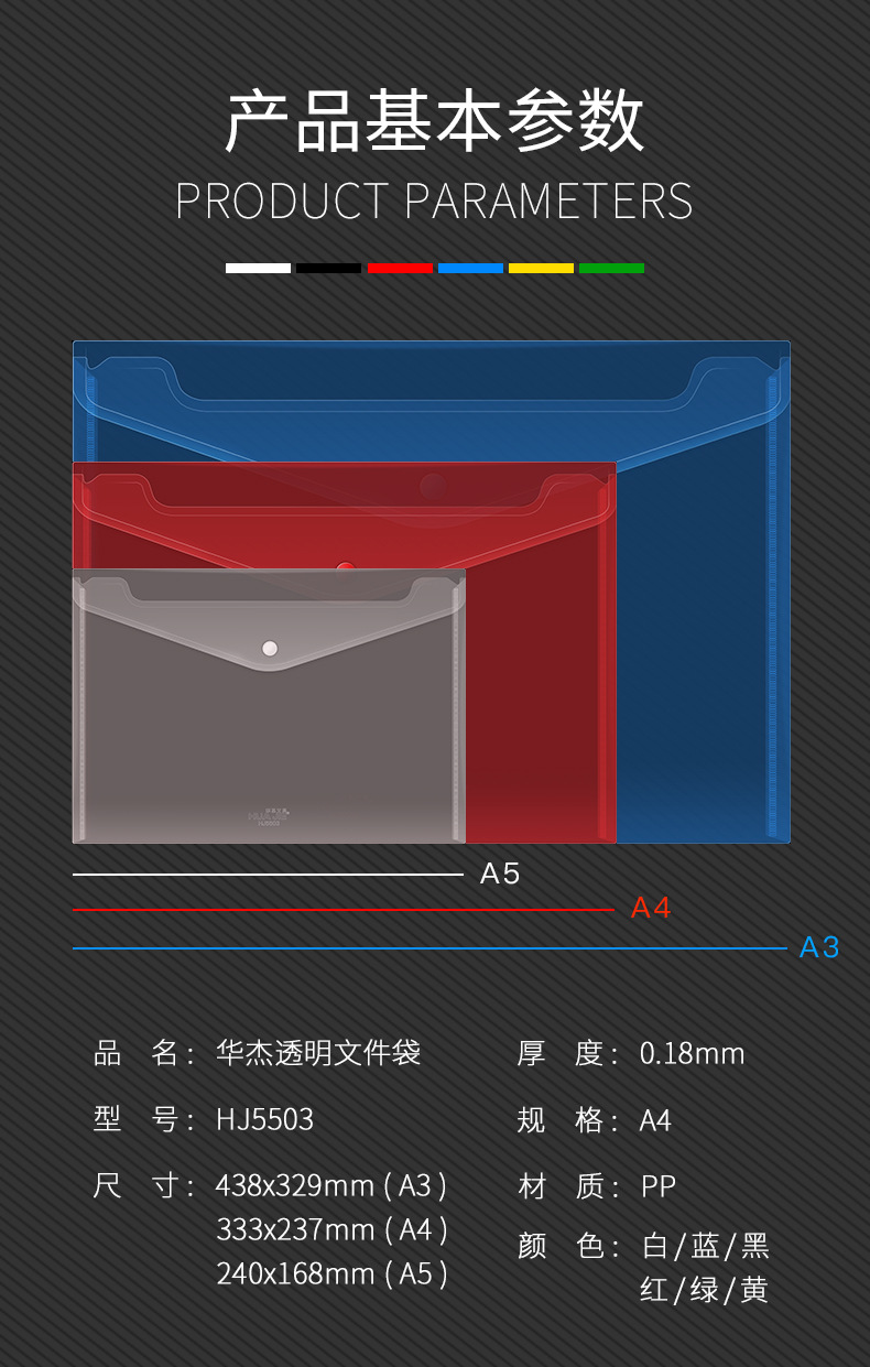 华杰 A3/A4/A5透明塑料按扣袋 加厚文件袋 票据收纳袋PP档案袋 24个 HJ5503