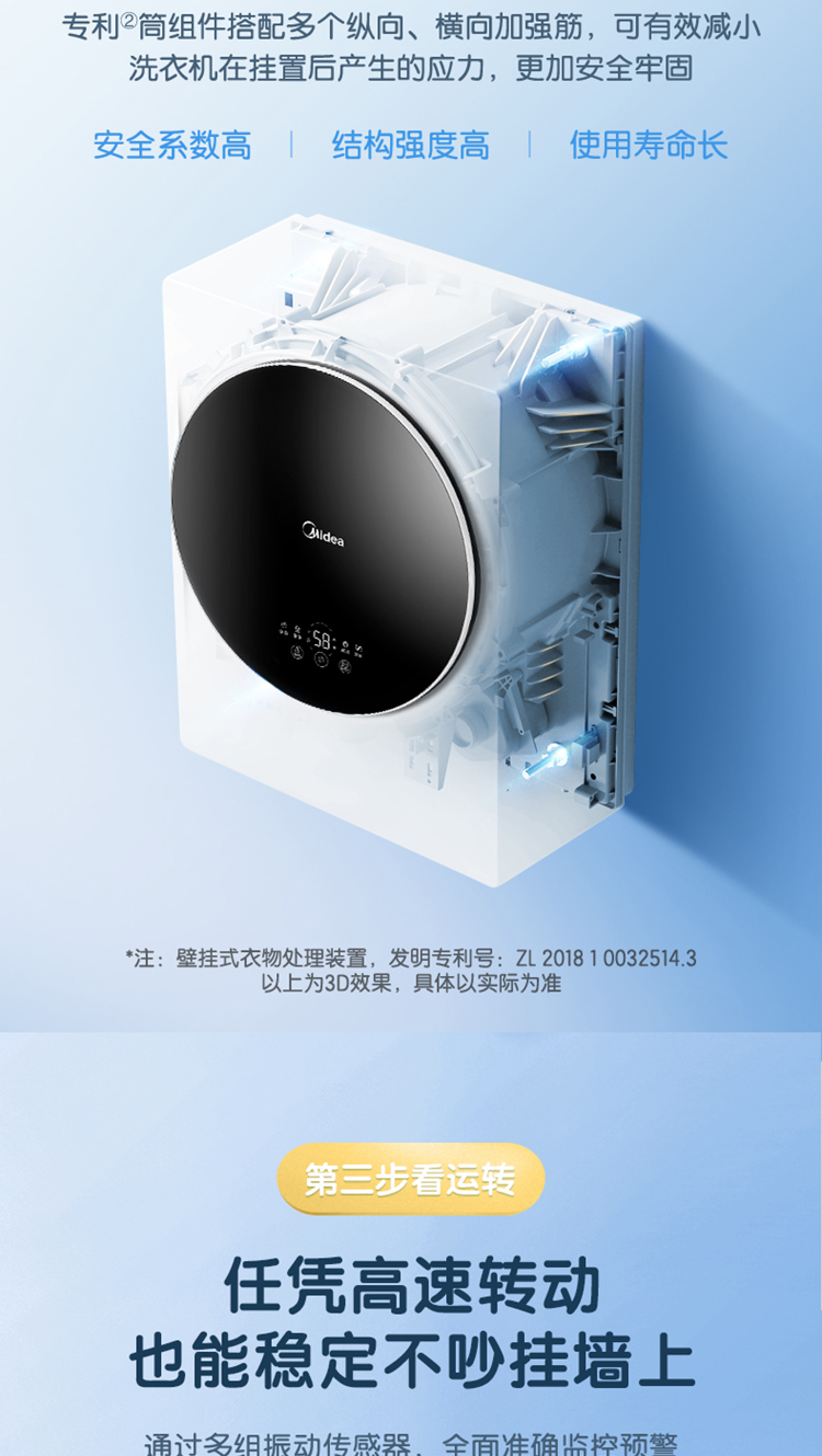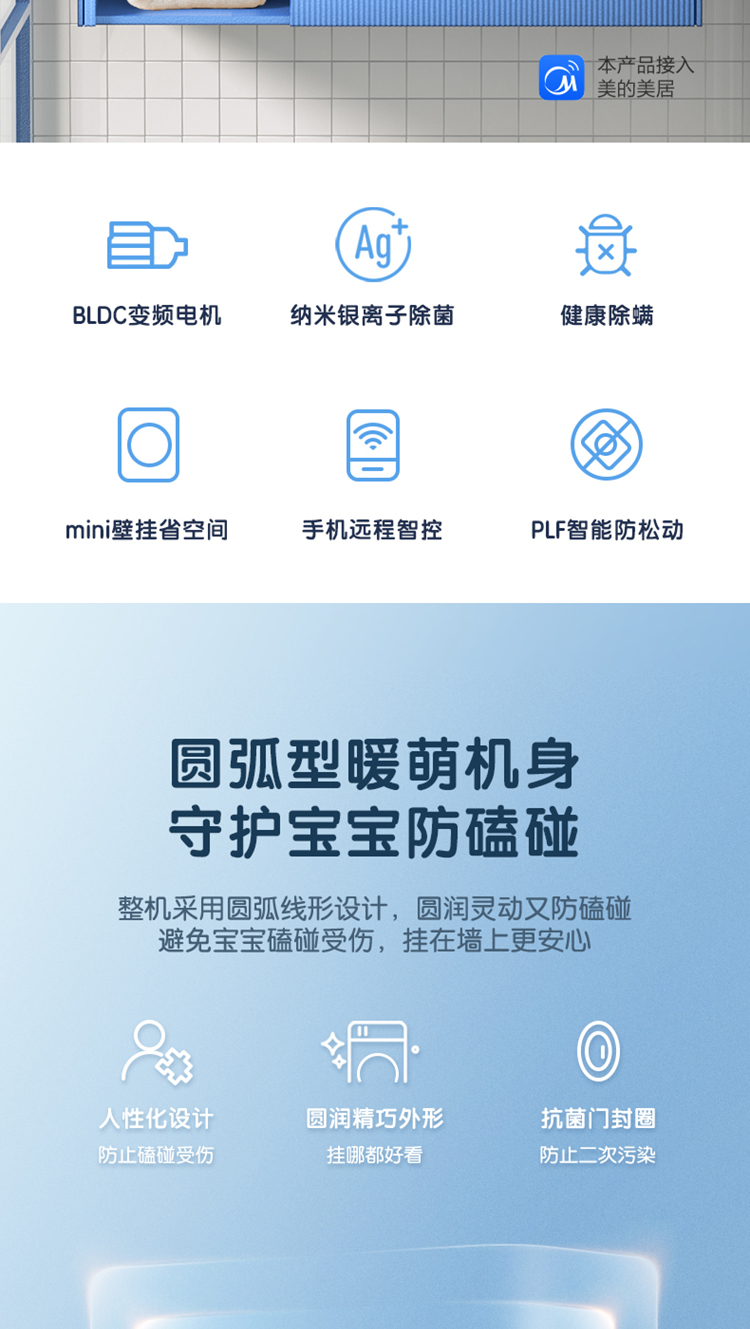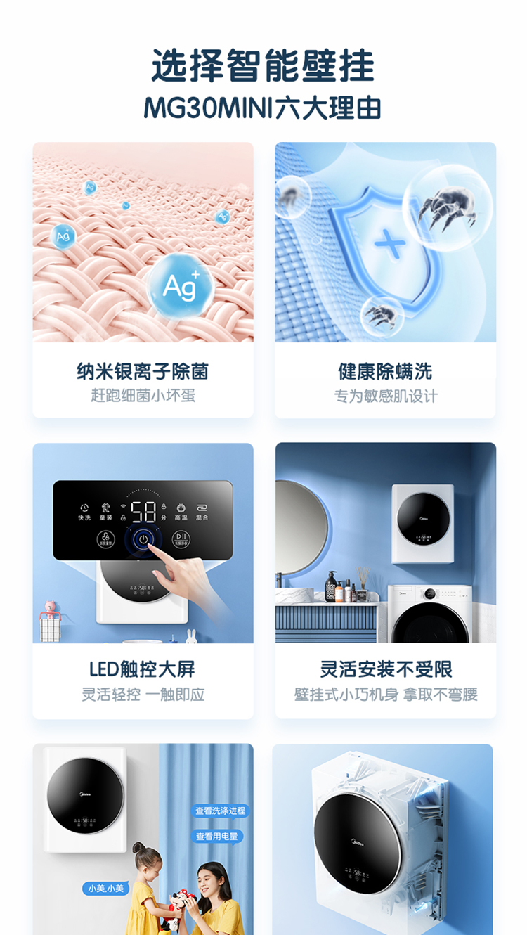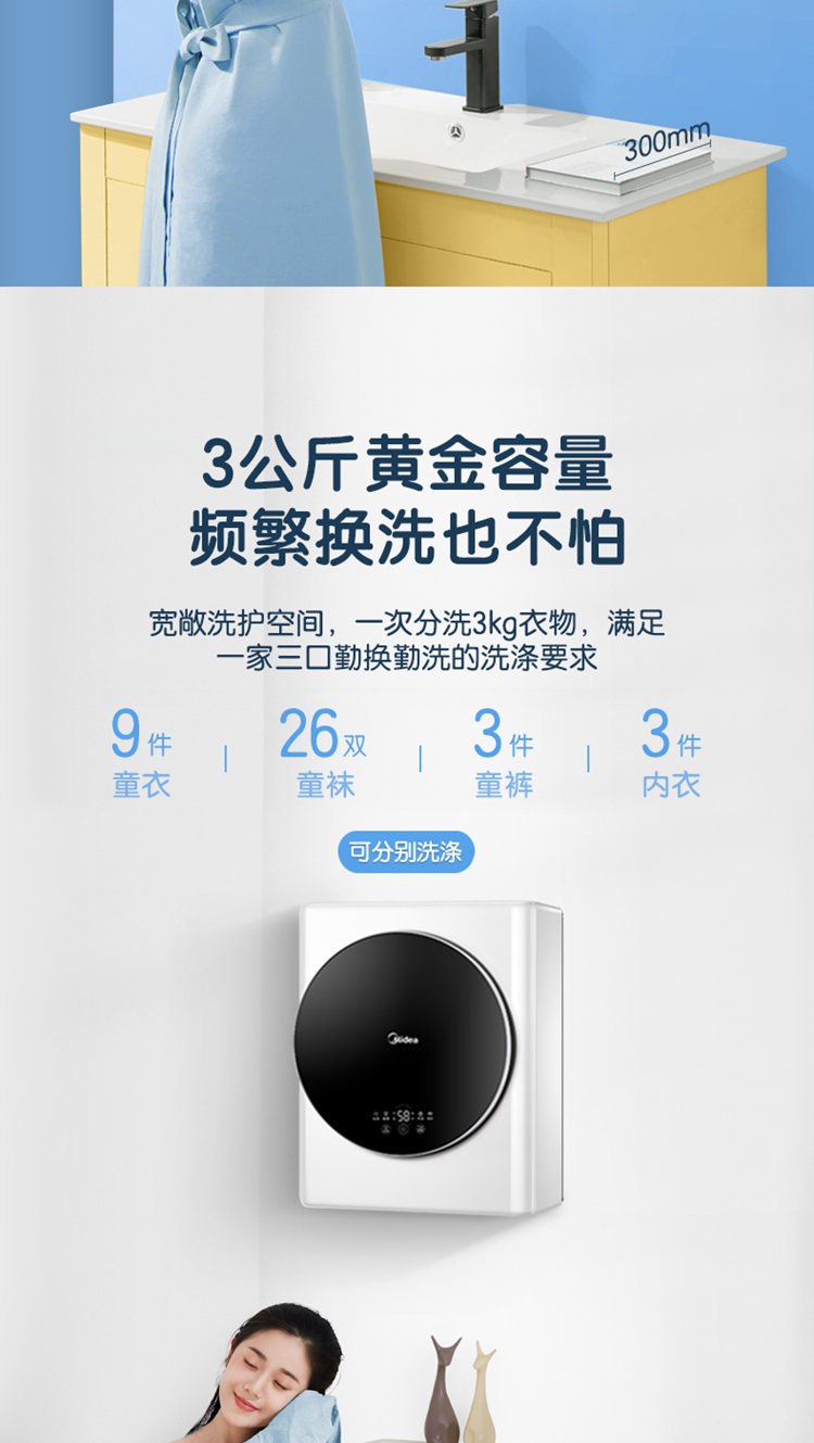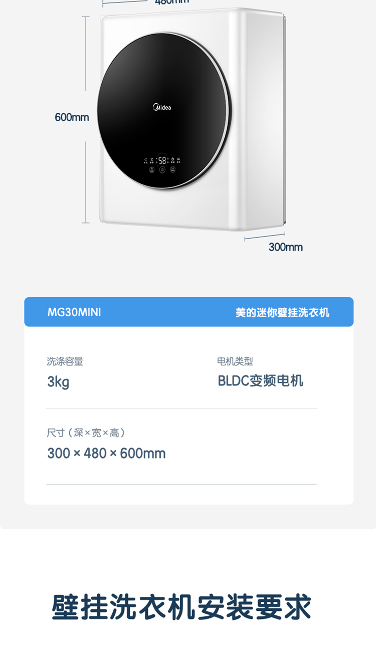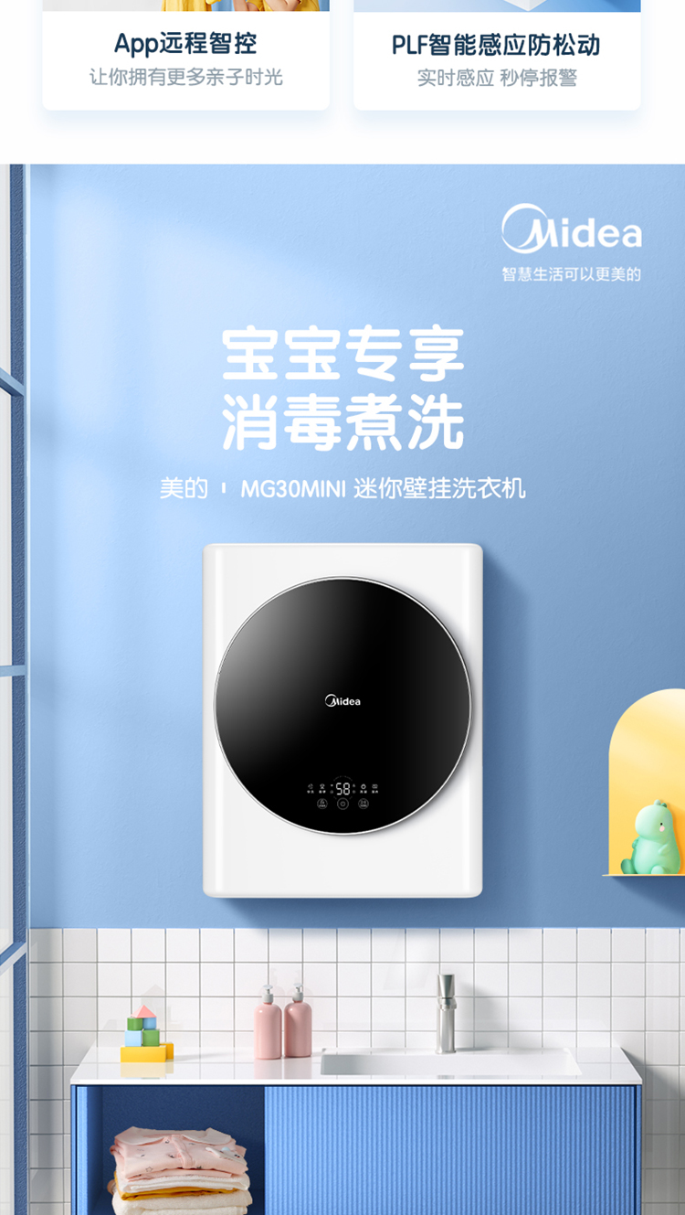 (特)美的(Midea) 壁挂洗衣机 3KG迷你滚筒洗衣机全自动 MG30MINI
