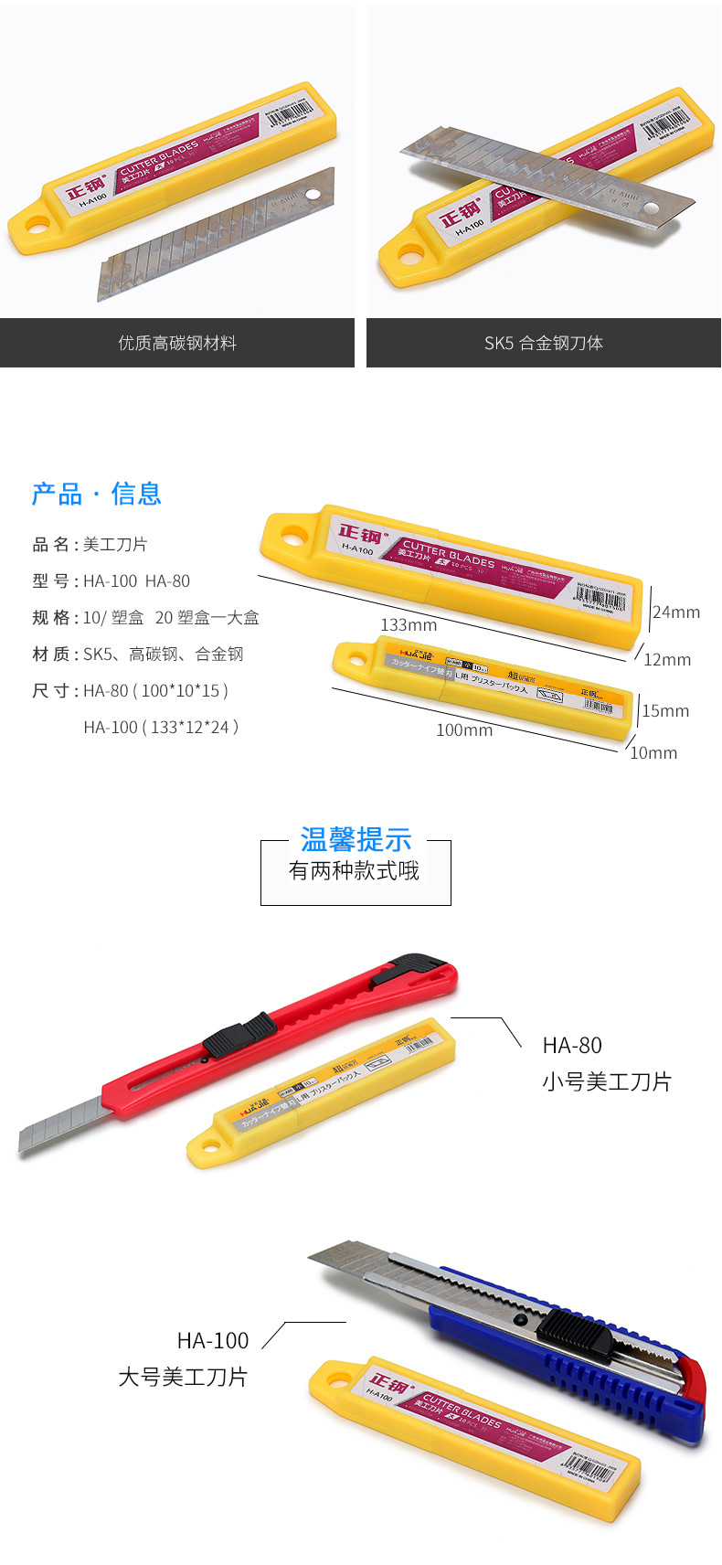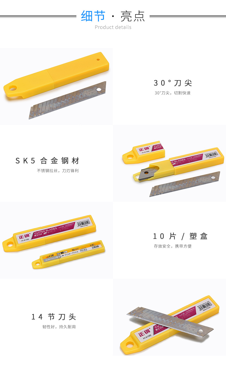 华杰常规 10片装 小号 大号高碳钢美工刀片刃口锋利耐用