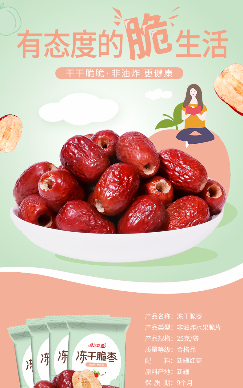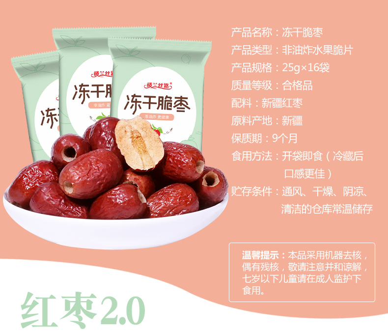 (特)楼兰丝路冻干脆枣无核新疆红枣非油炸空心香酥嘎嘣脆灰枣烘干无油