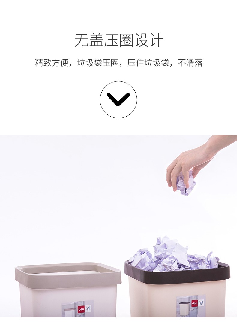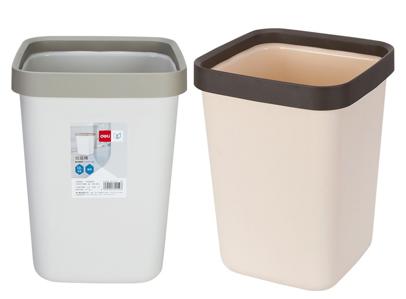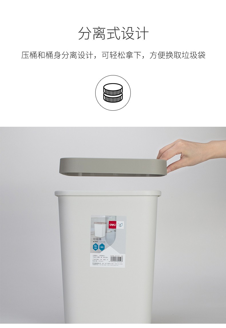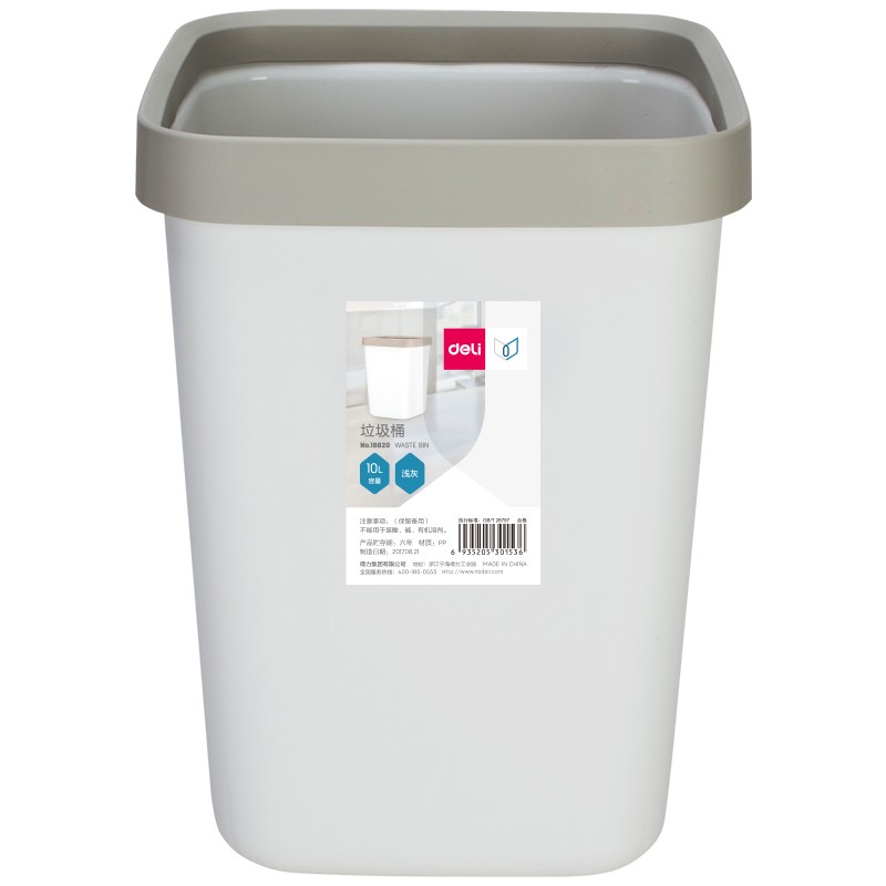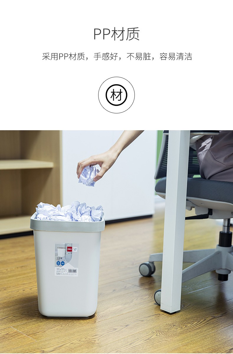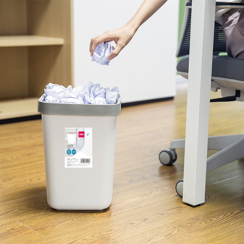 (特)得力(deli)压圈方形垃圾桶 家用清洁桶纸篓 办公用品 18820 中号 浅灰