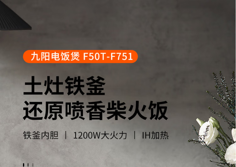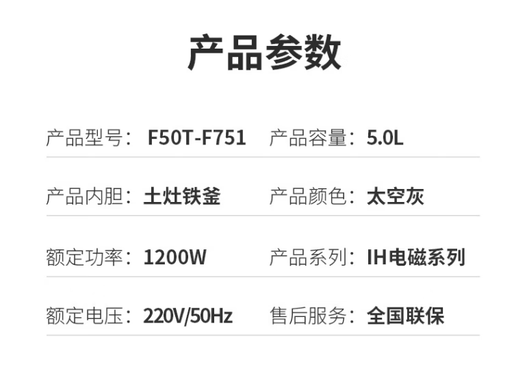 九阳(Joyoung)电饭煲铁釜内胆电饭锅IH电磁加热可预约钢化面板触摸式 F50T-F751(5升)