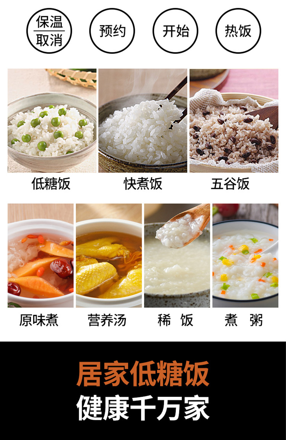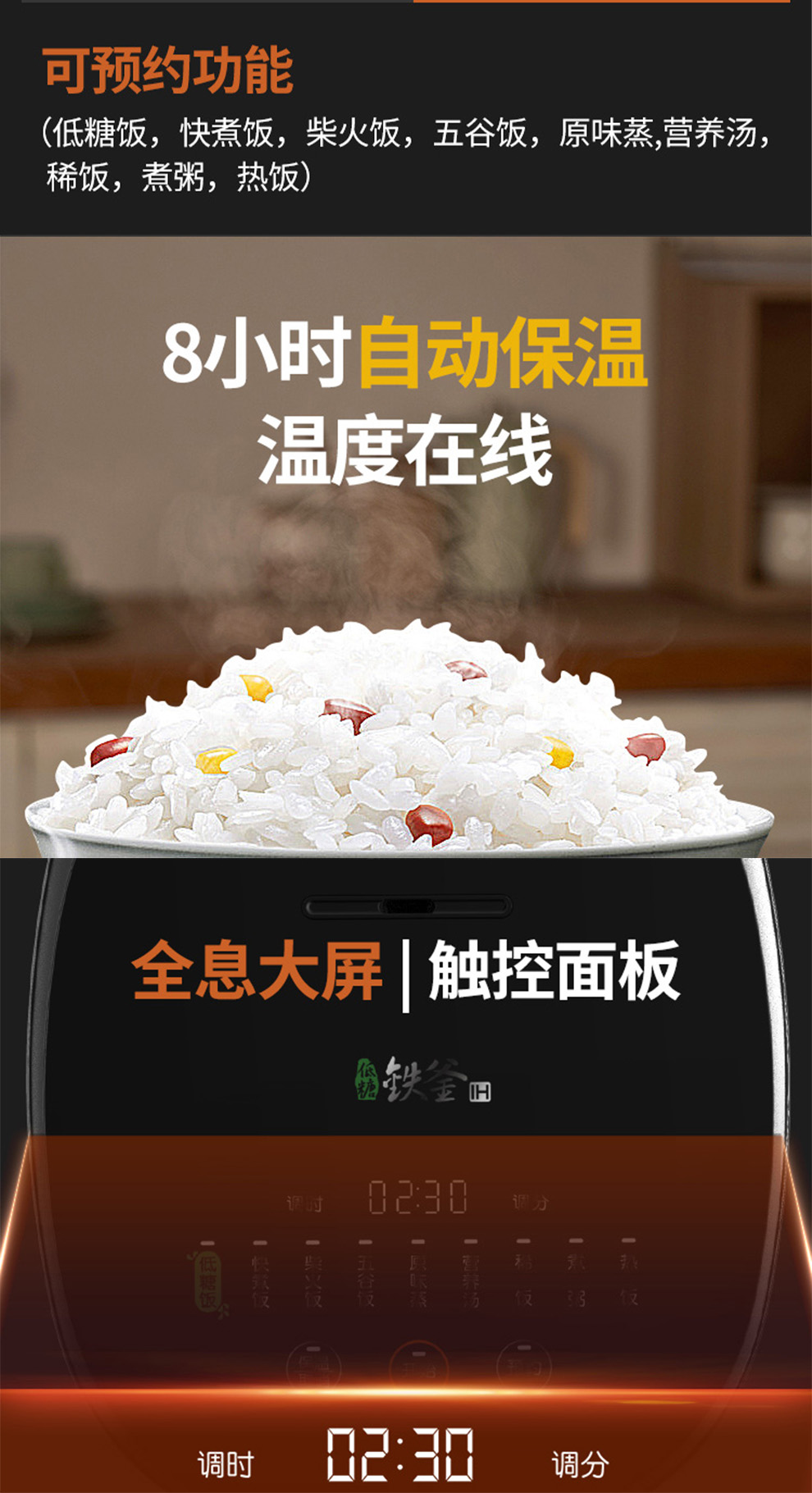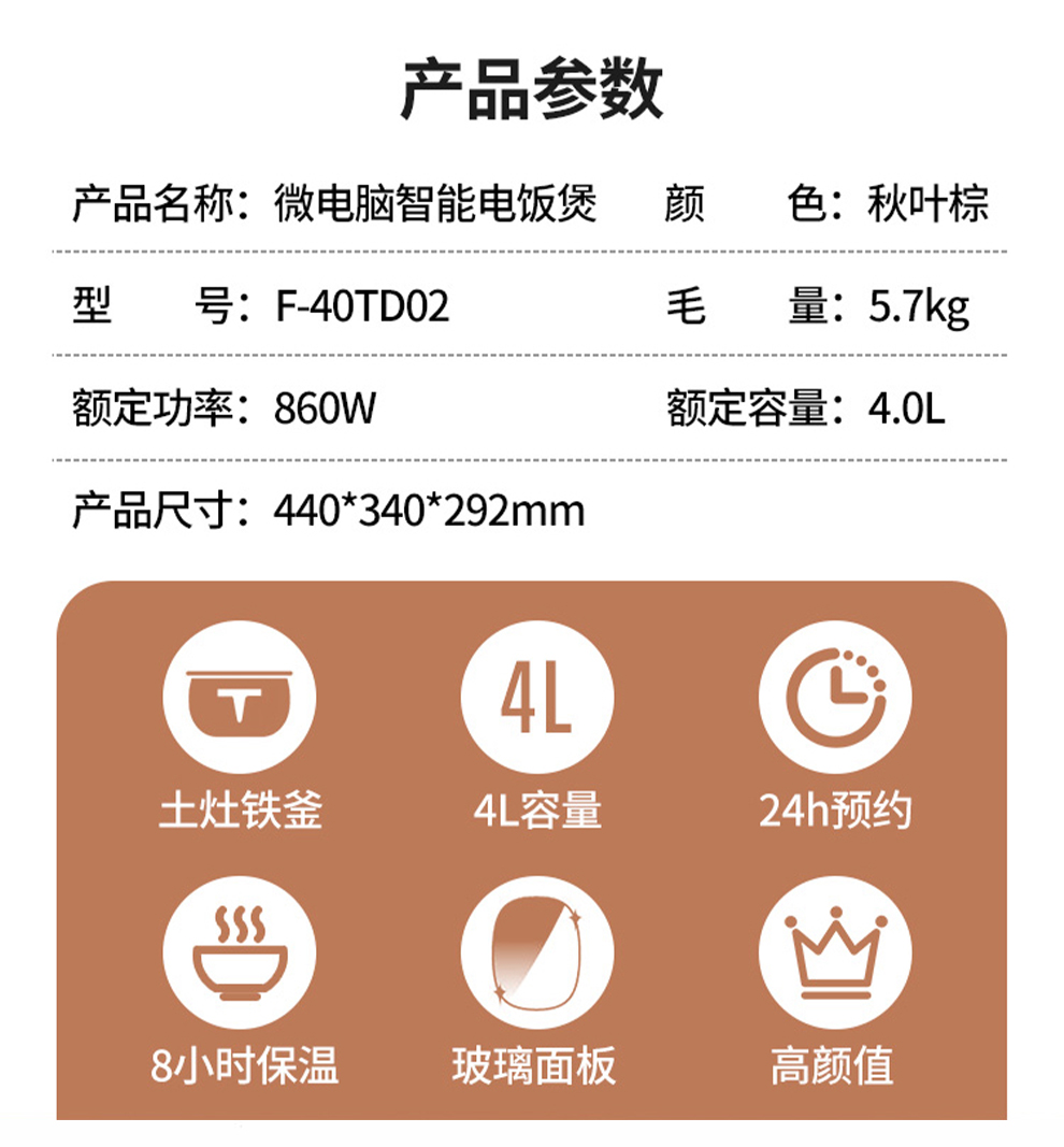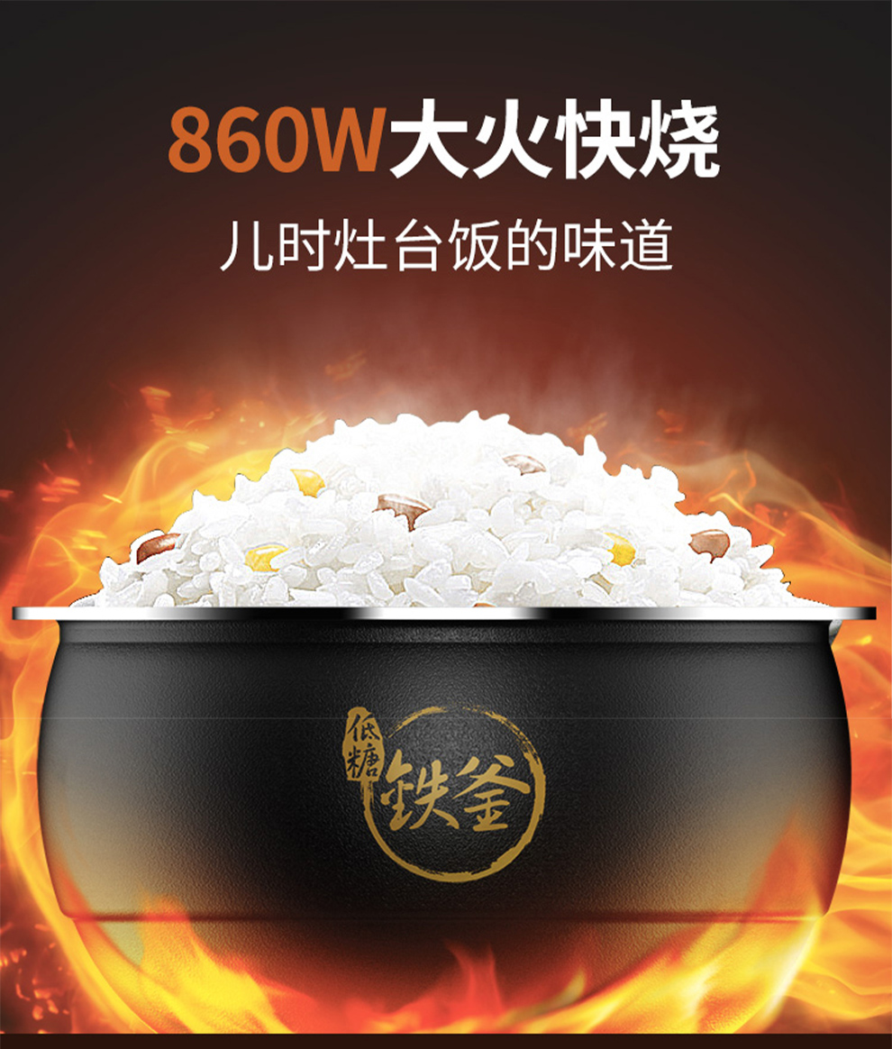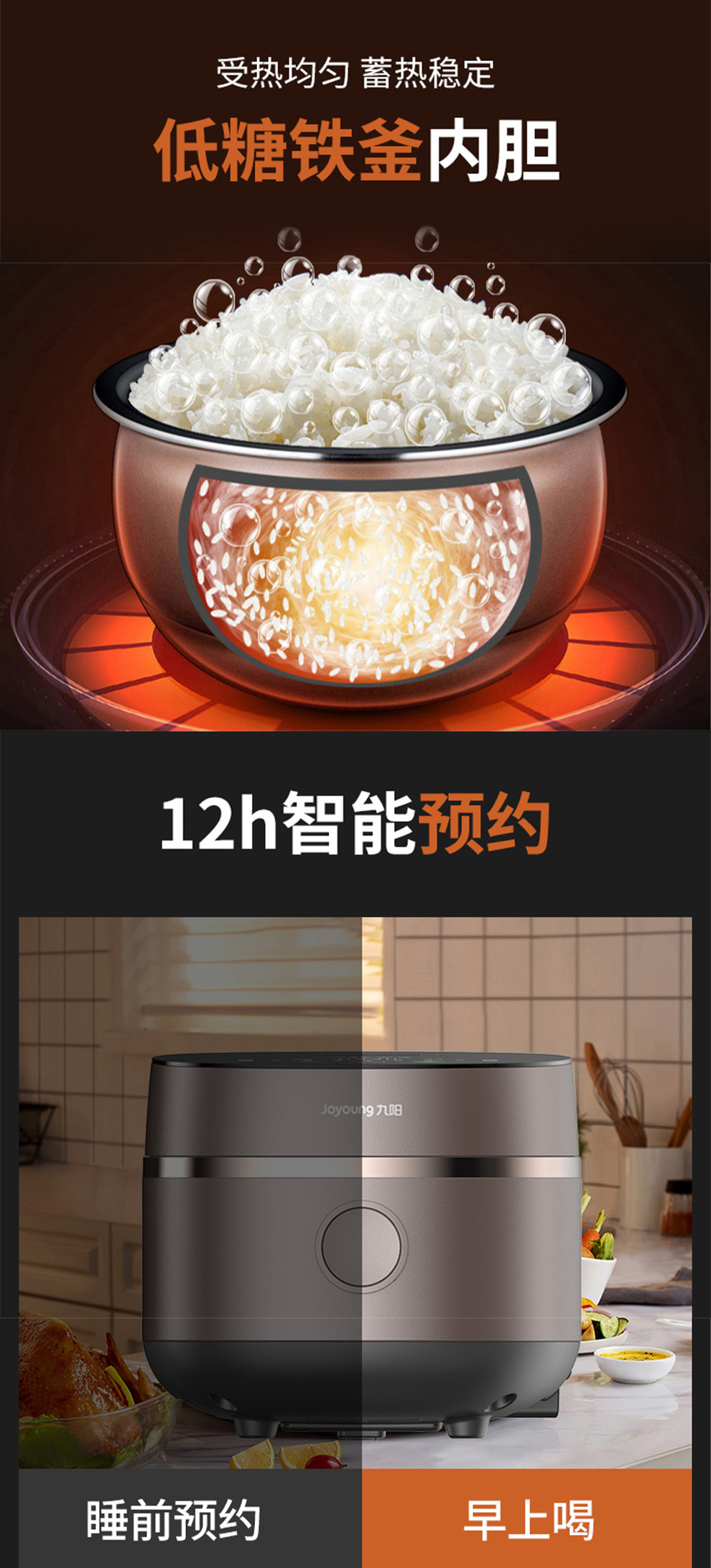九阳(Joyoung)电饭煲智能24H预约多功能860W大火力4L大容量 铁釜内胆不粘层 F-40TD02