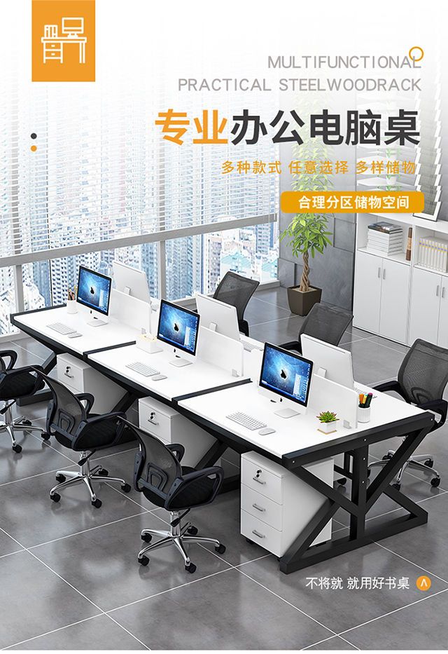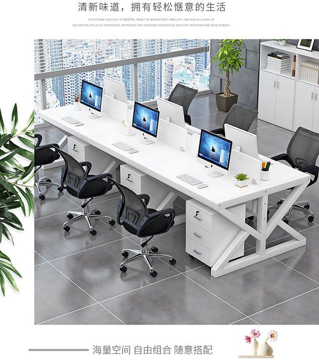 办公室职员办公桌员工电脑桌椅组合办公家具4人/6人位简约工作桌