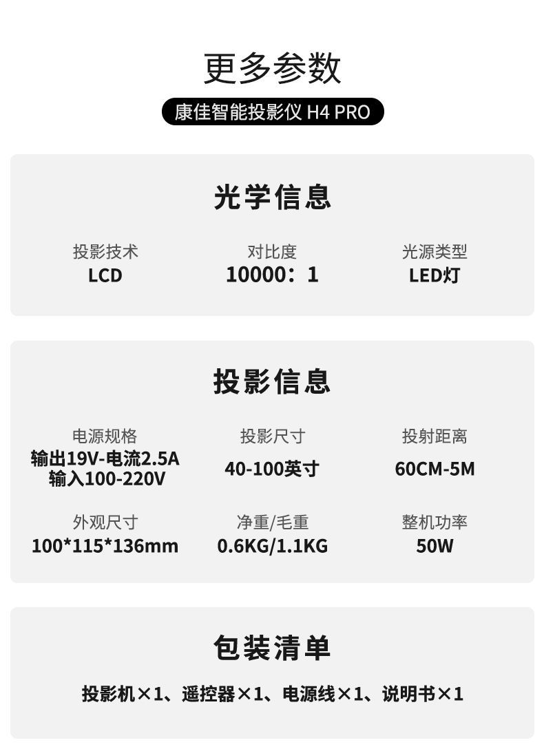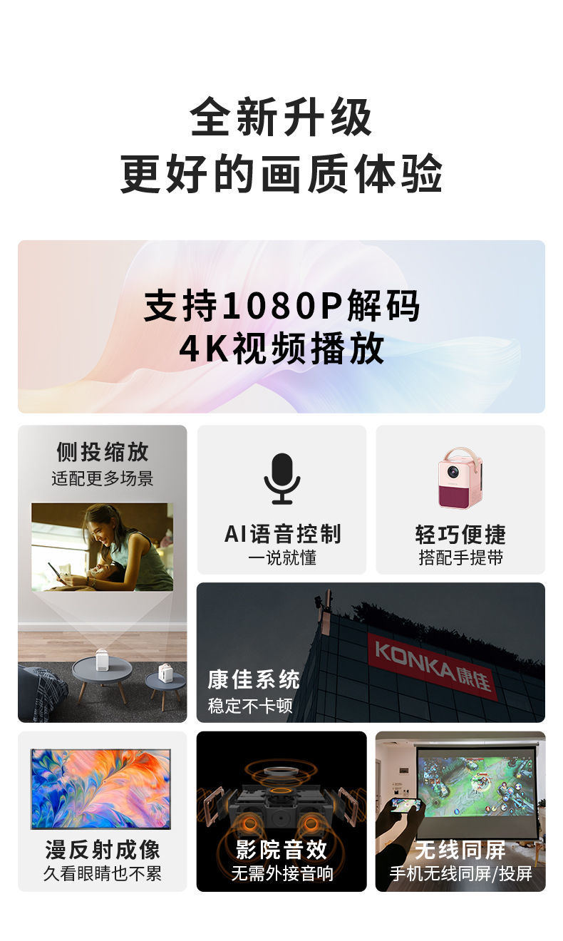 (特)康佳H4Pro投影仪家用超高清投墙卧室宿舍小型迷你手机投屏