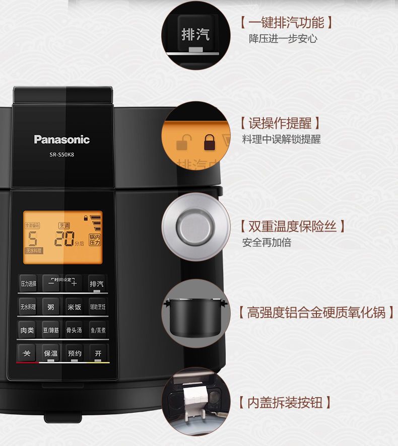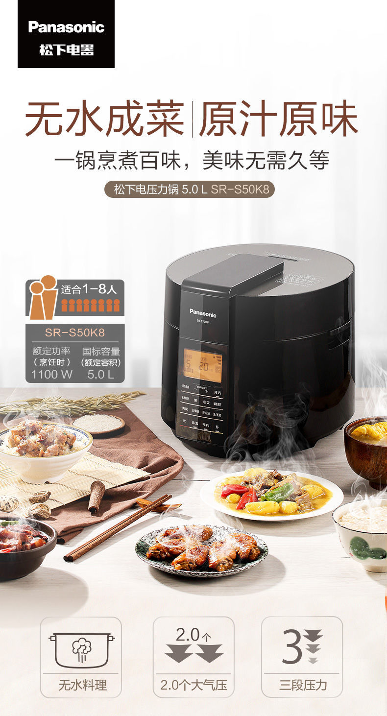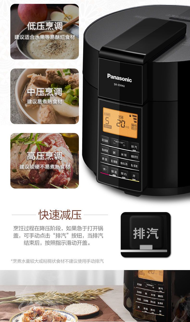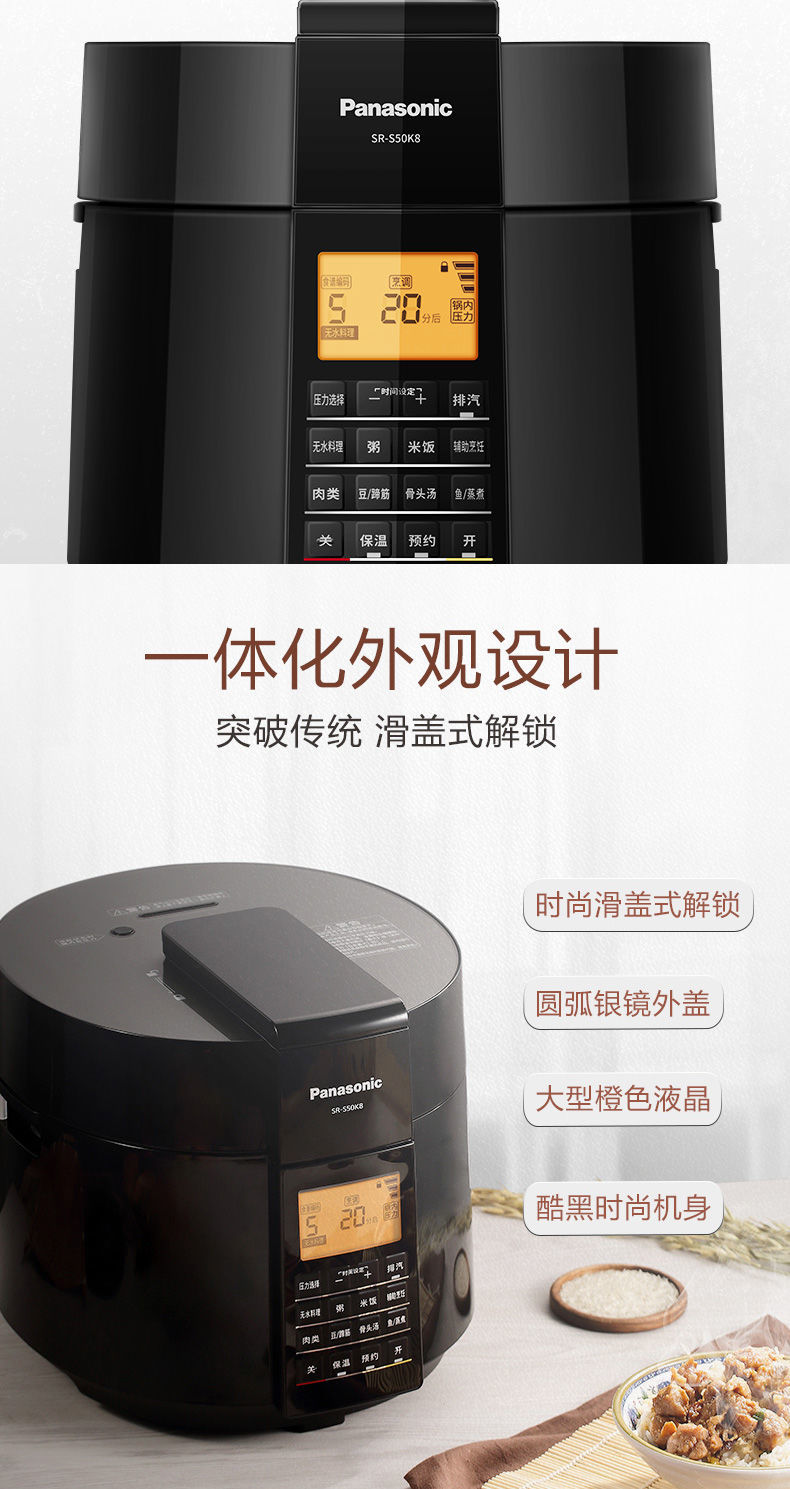 (特)松下电压力锅家用5L大容量高压锅多功能智能煲 SR-S50K8