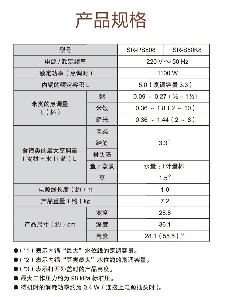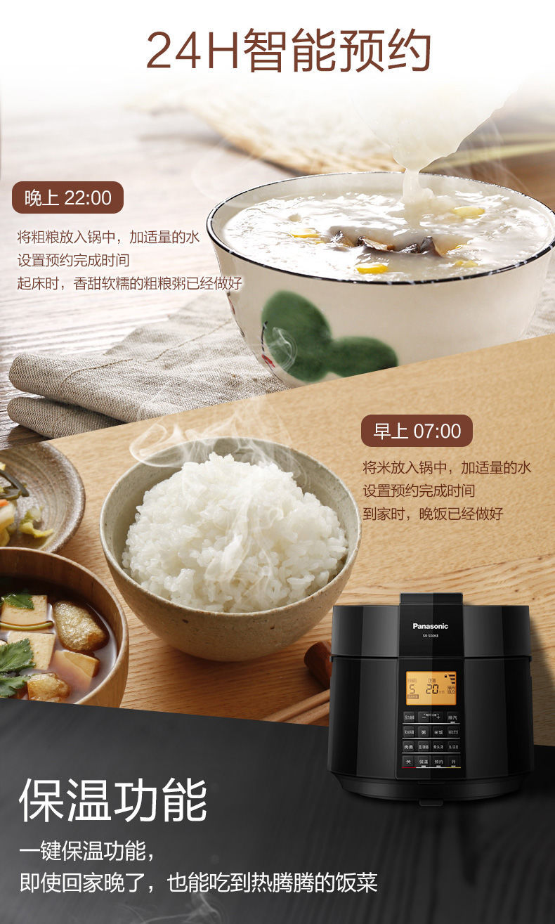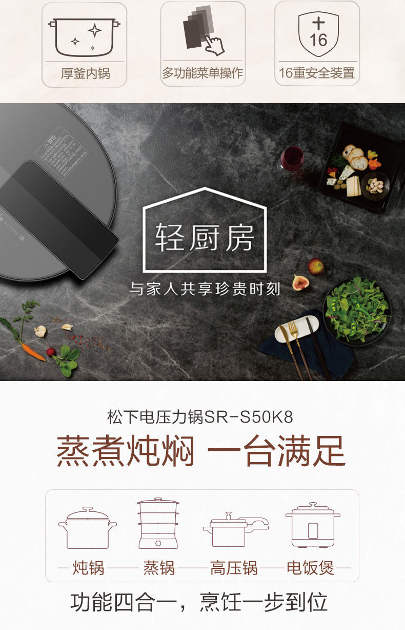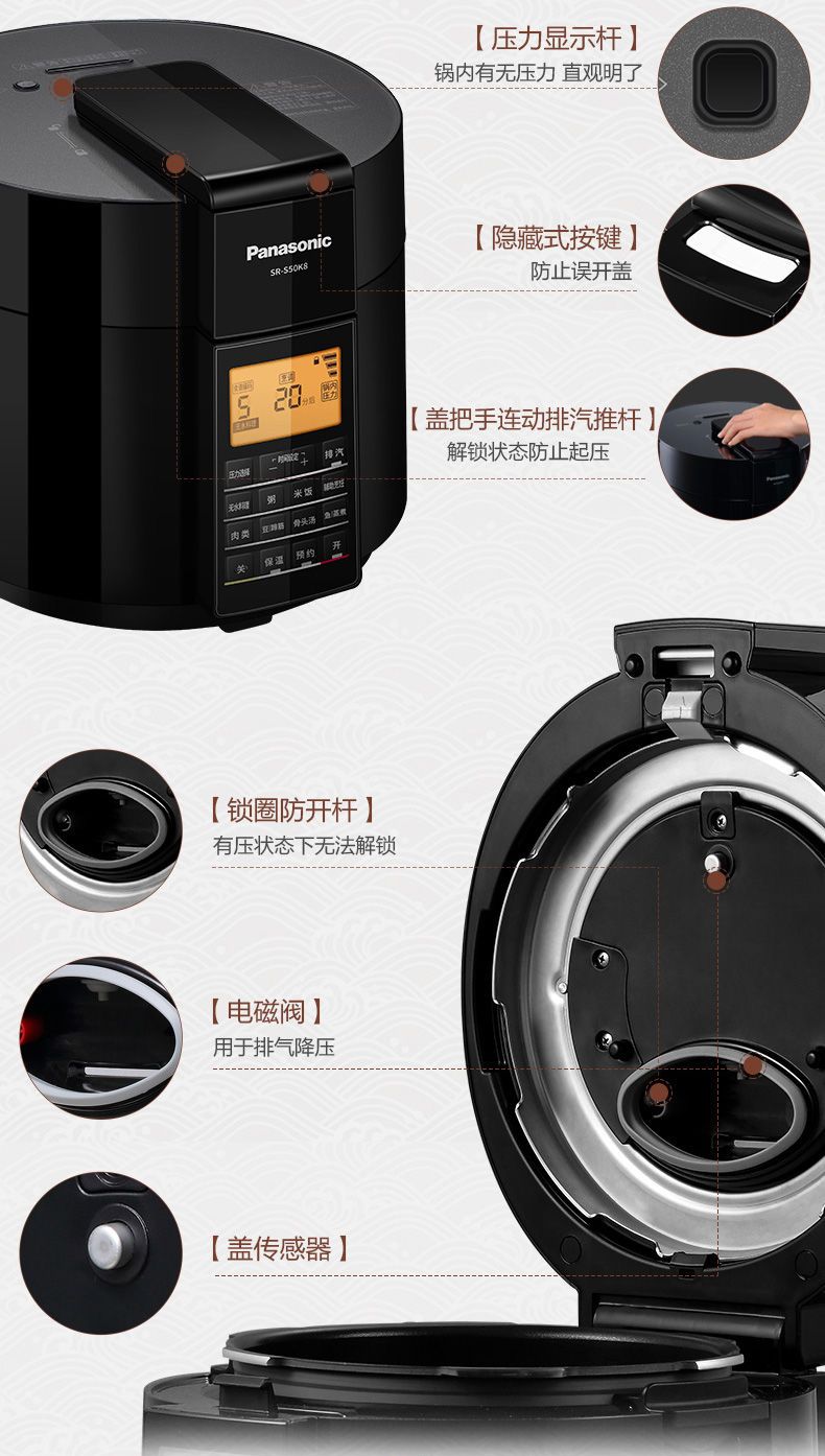 (特)松下电压力锅家用5L大容量高压锅多功能智能煲 SR-S50K8