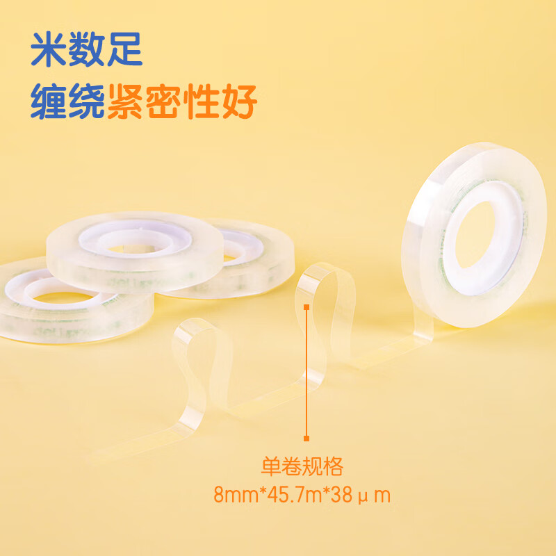 得力(deli)30003文具胶带8mm*50y*38um(12卷/筒)学生文具胶带透明粘胶带小胶带窄胶带