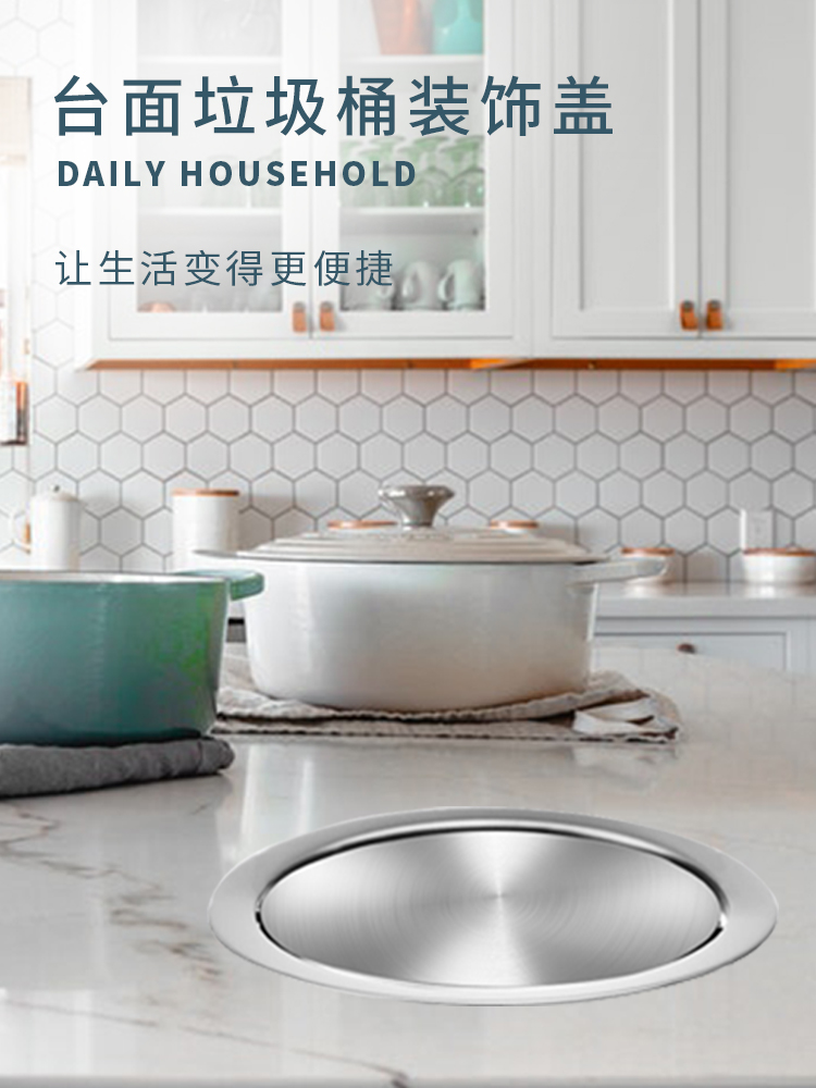 (特)垃圾桶盖子配件台面装饰盖嵌入式不锈钢摇翻盖家用厨房卫生间圆形