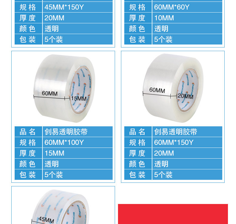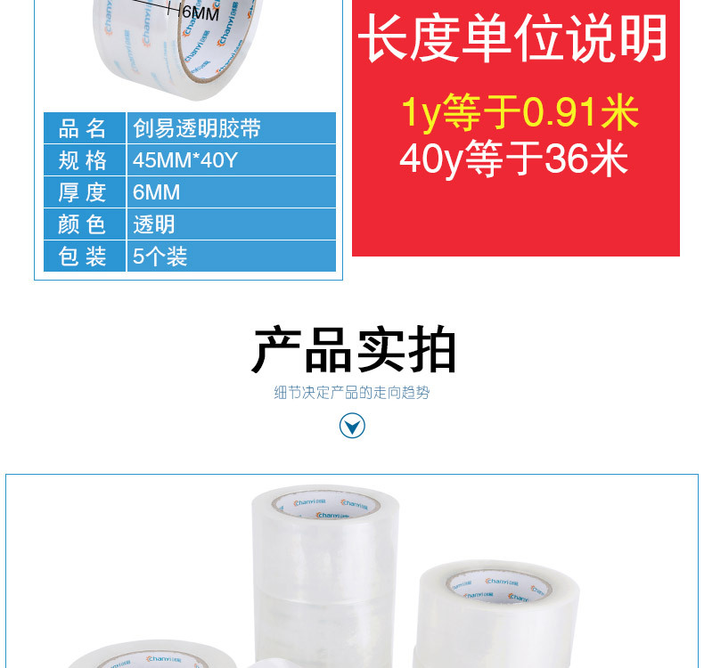 (特)创易办公用品透明胶带快递包装封箱胶封口打包带 CY1270