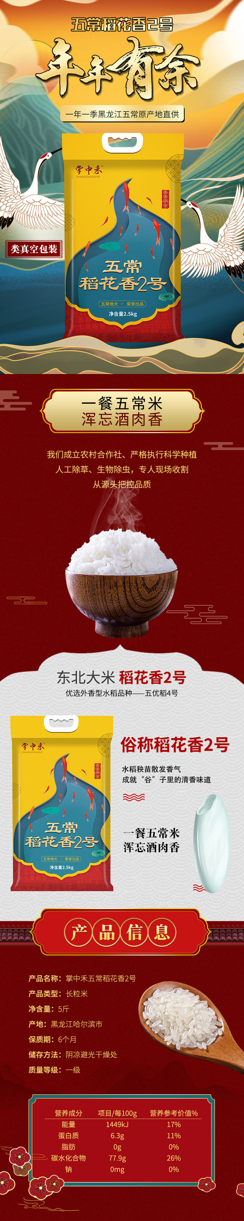 五常稻花香粳米5斤家庭装会销礼品