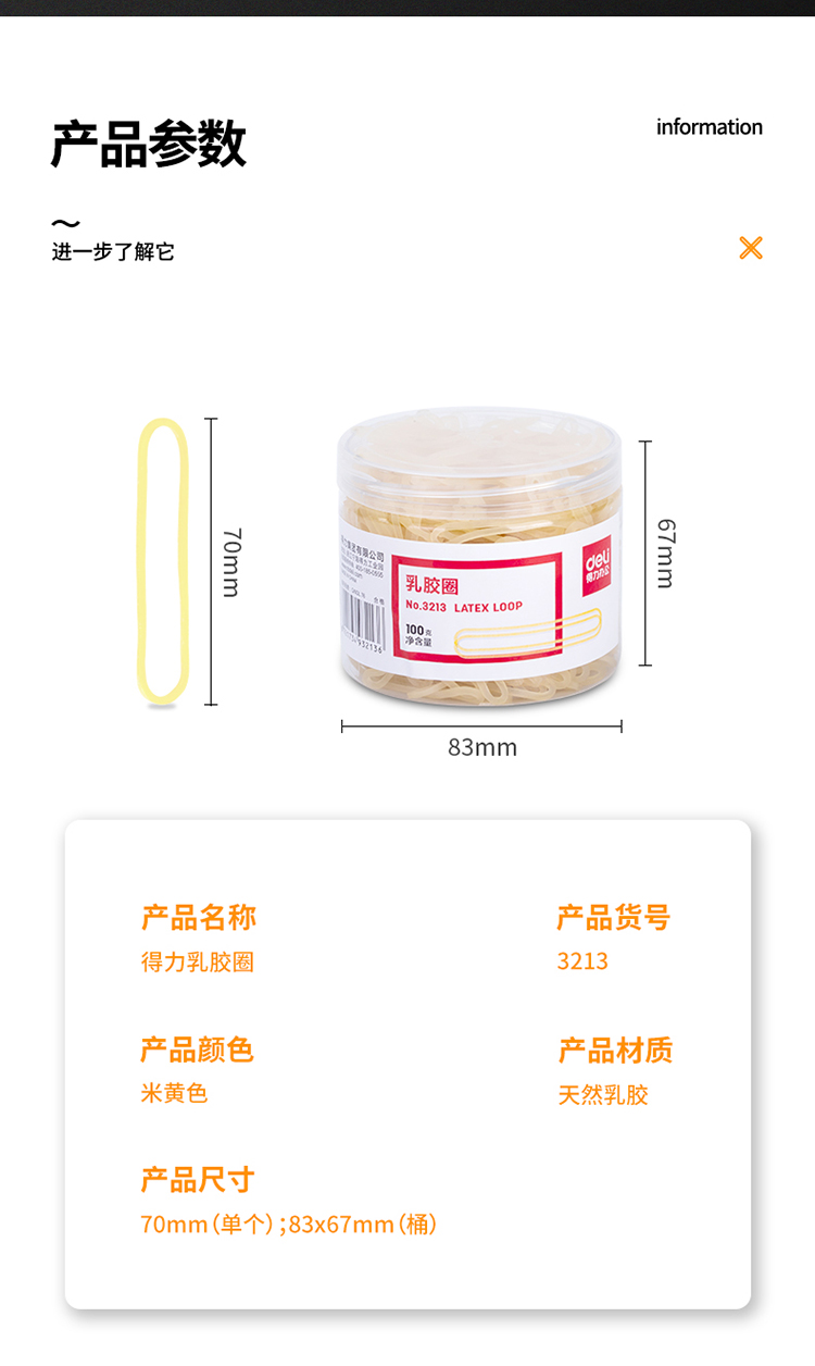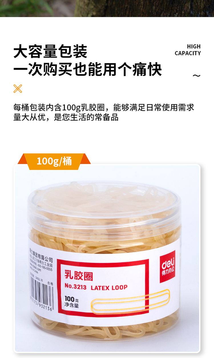 (特)得力(deli)100g办公耐用乳胶圈/橡皮筋/橡胶圈/牛皮筋 财务用品 办公用品 3213