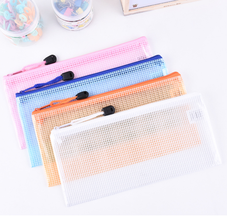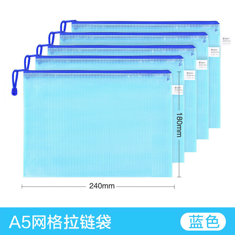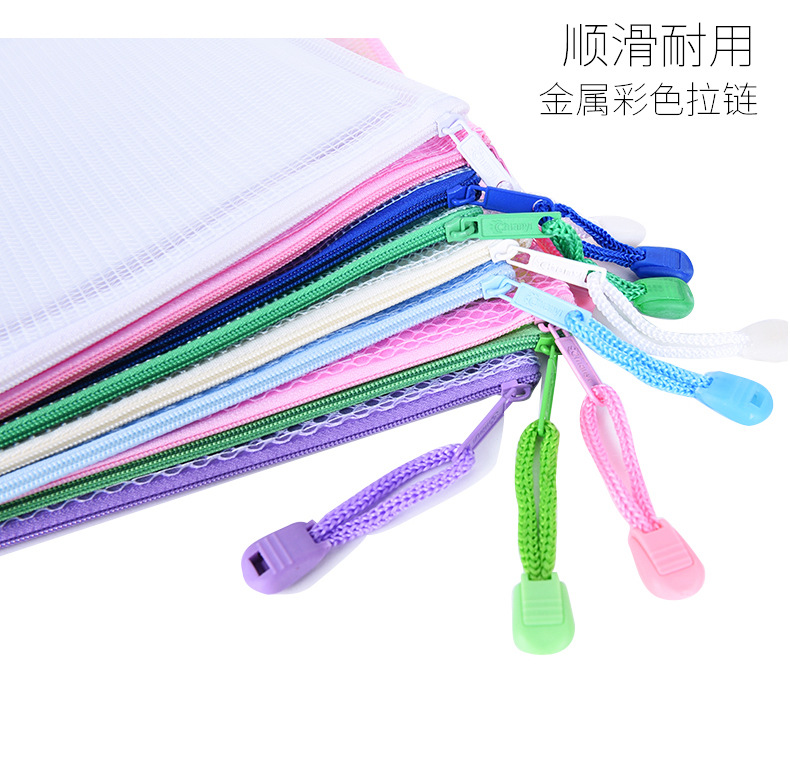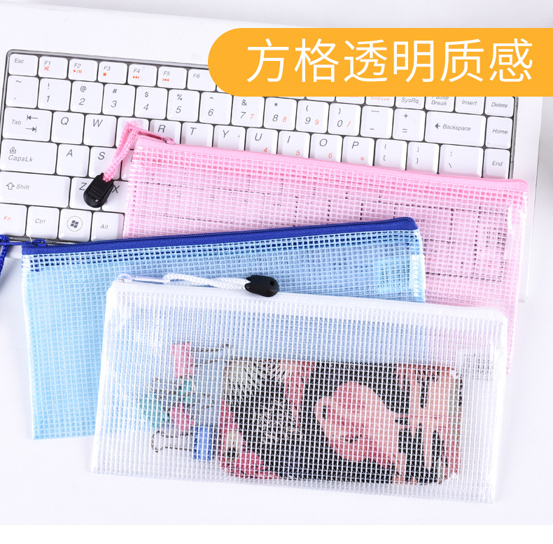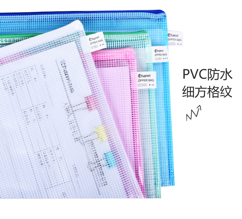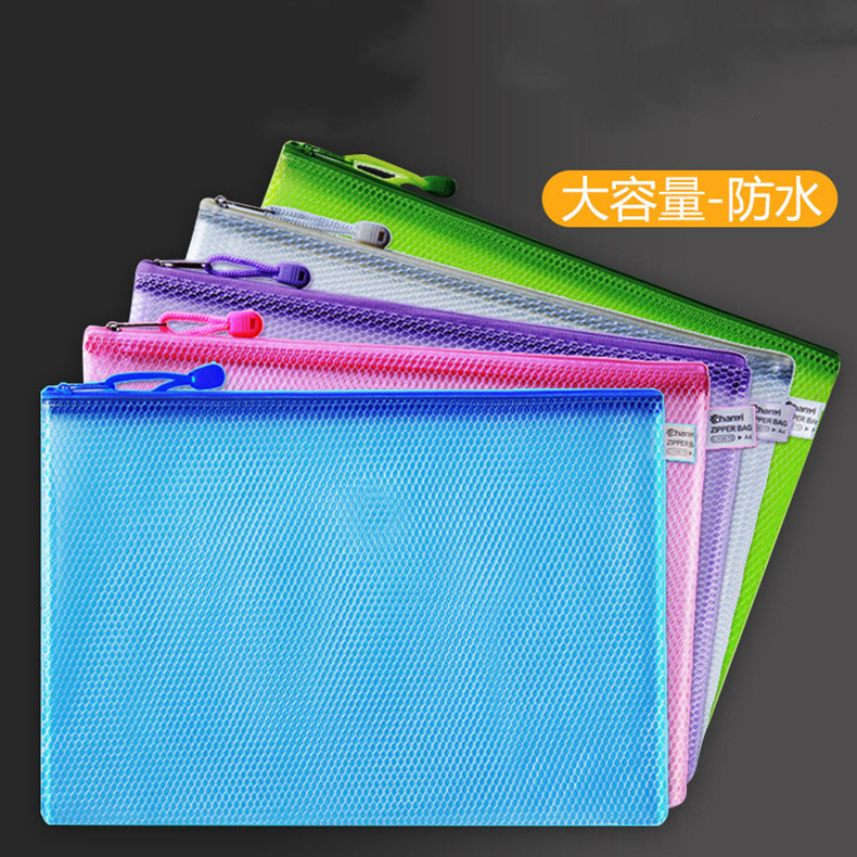 (特)创易文件袋塑料PVC拉链袋防水透明笔袋学生资料夹 A5网格袋100个