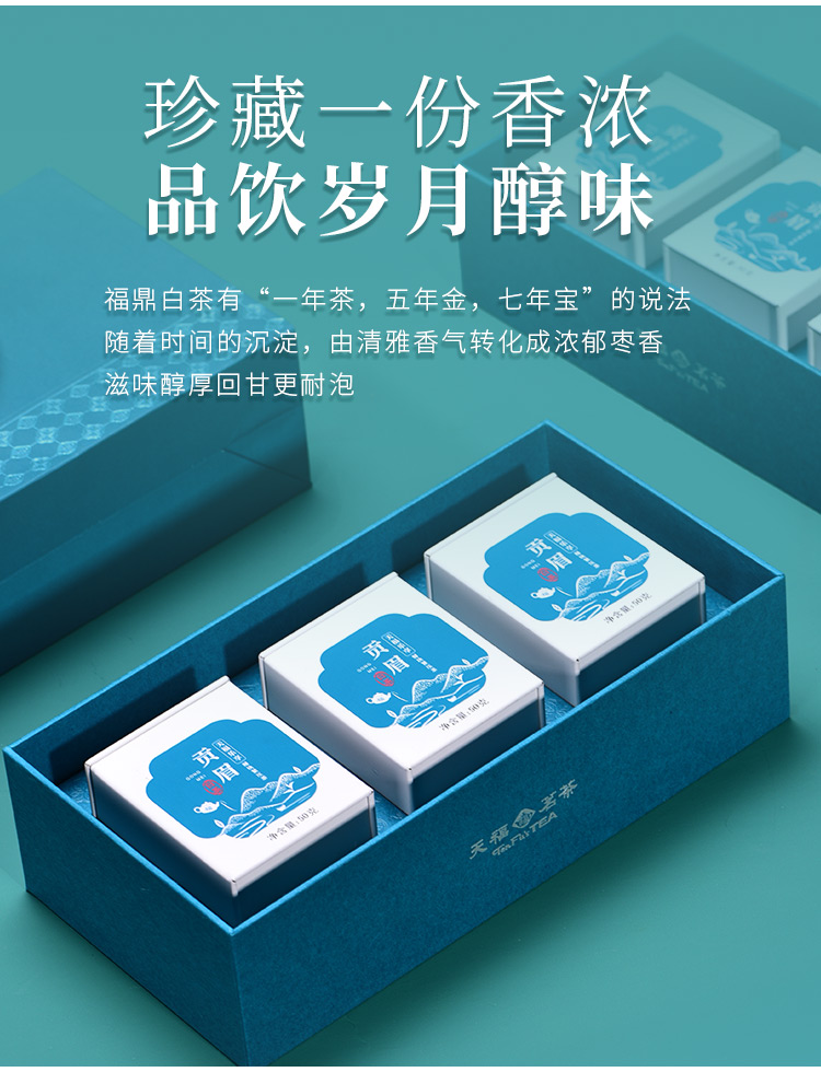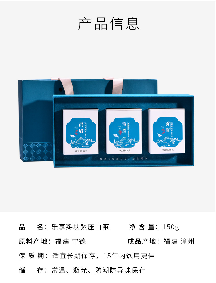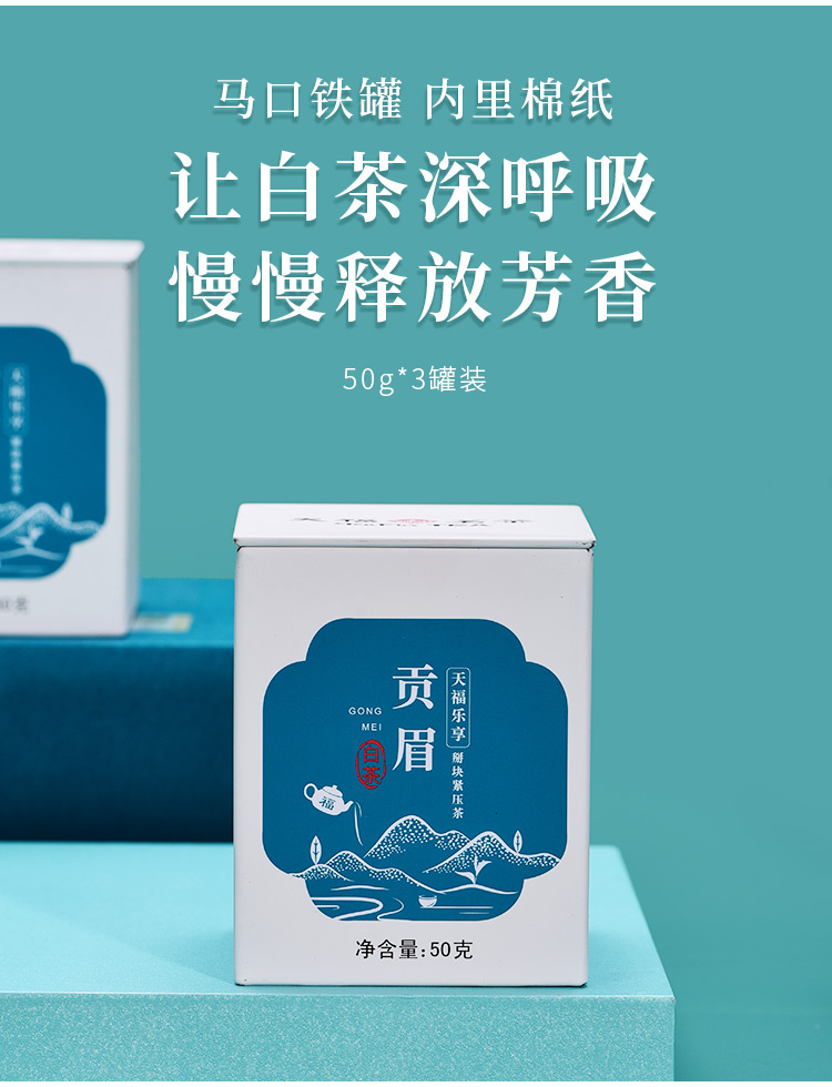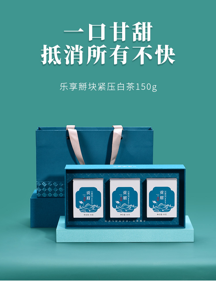 天福茗茶 福鼎原产 高山贡眉茶叶 乐享掰块紧压白茶150g礼盒装