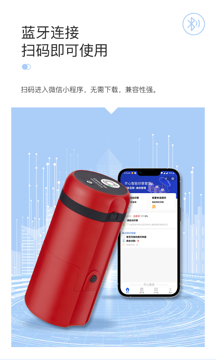 (特)齐心智能印章管家 安全便携可监控 小程序管理(回墨款)B3950