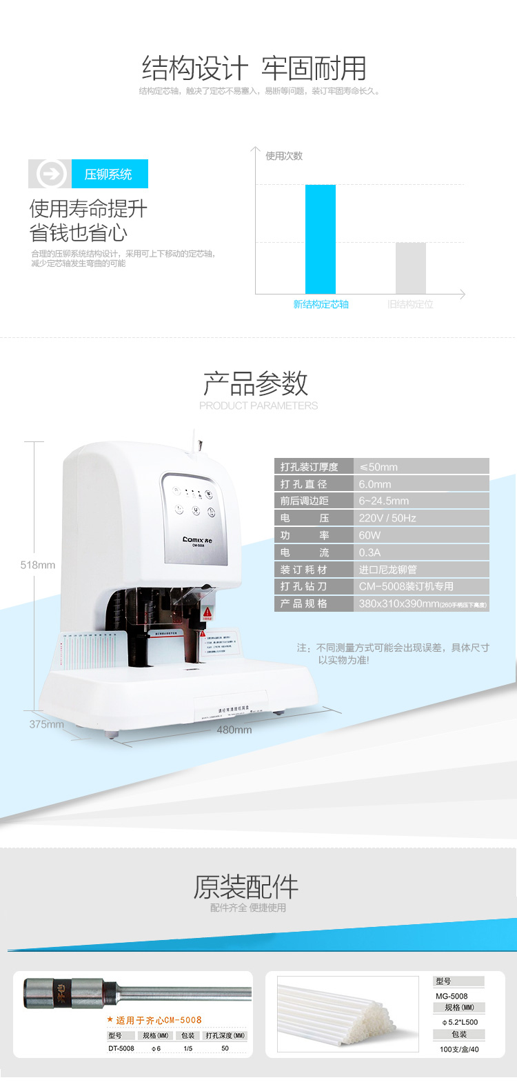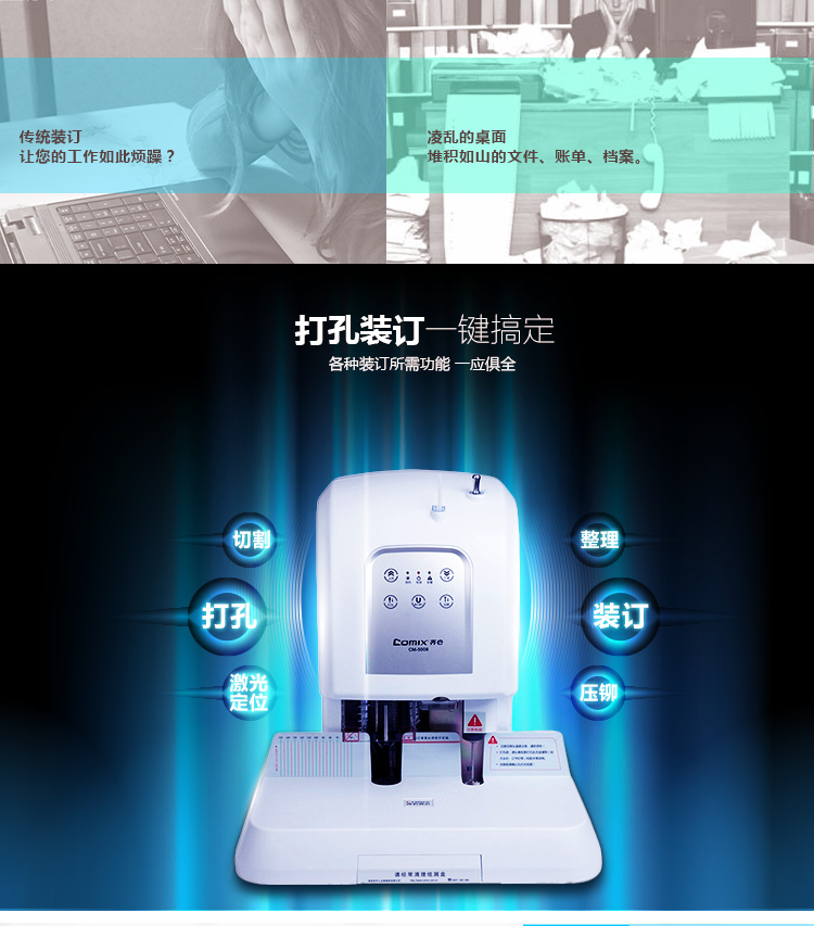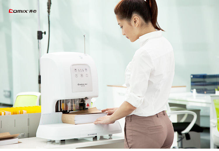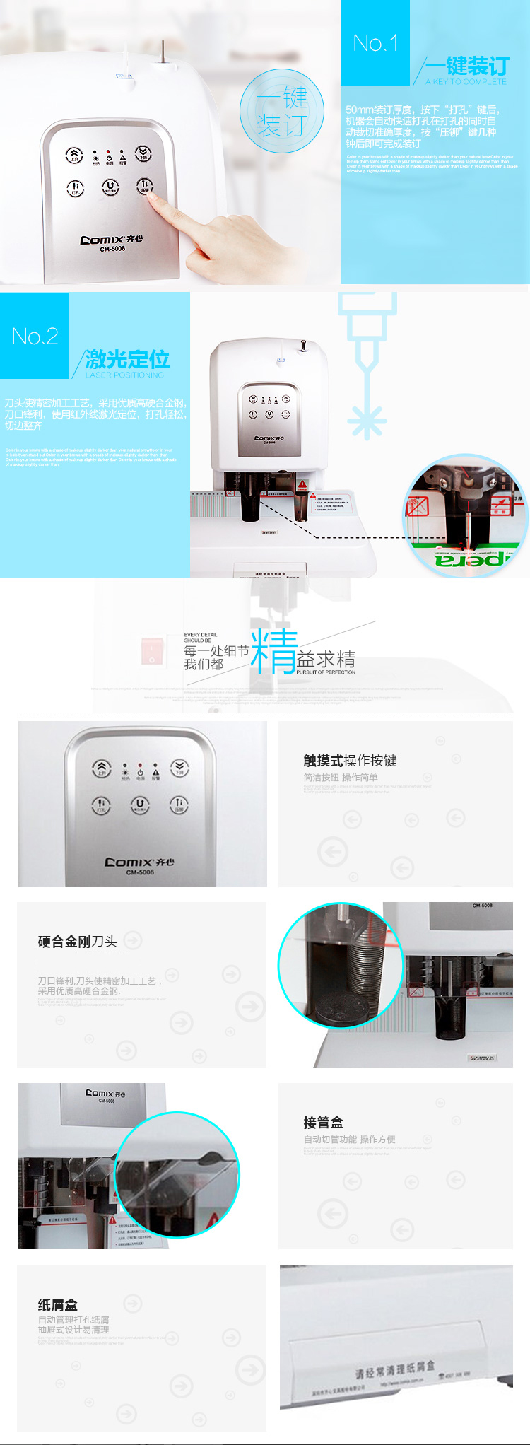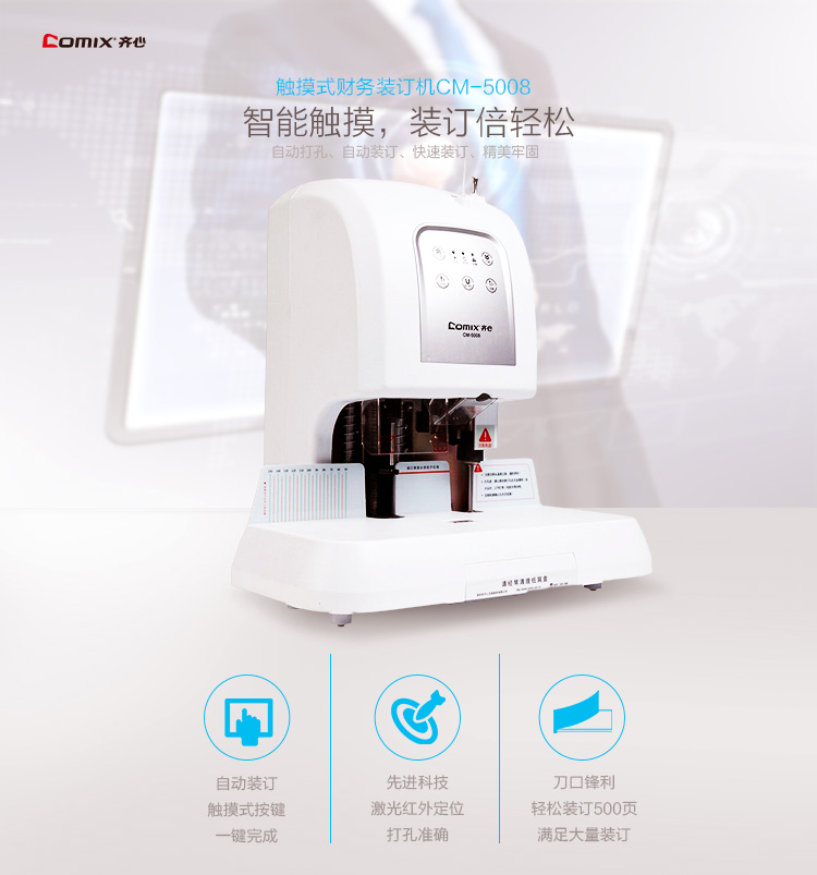 (特)齐心 激光定位凭证装订机全自动账单标书打孔机 智能触摸式财务装订器 装订厚度50mm CM-5008