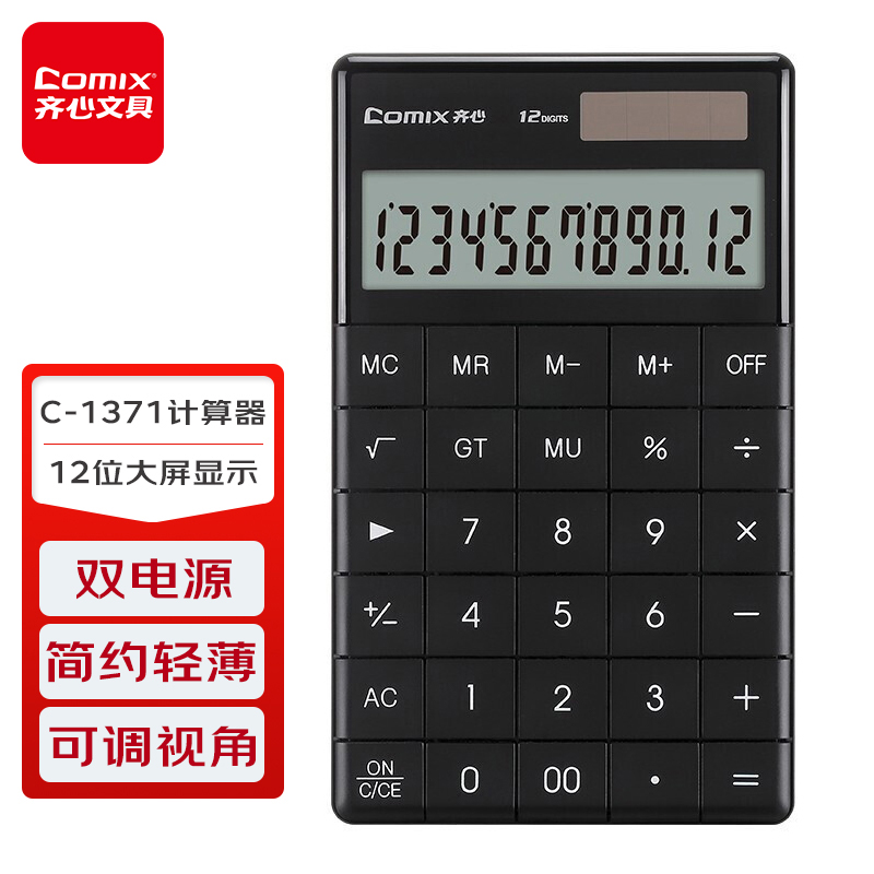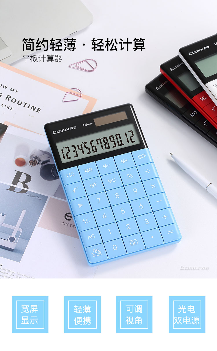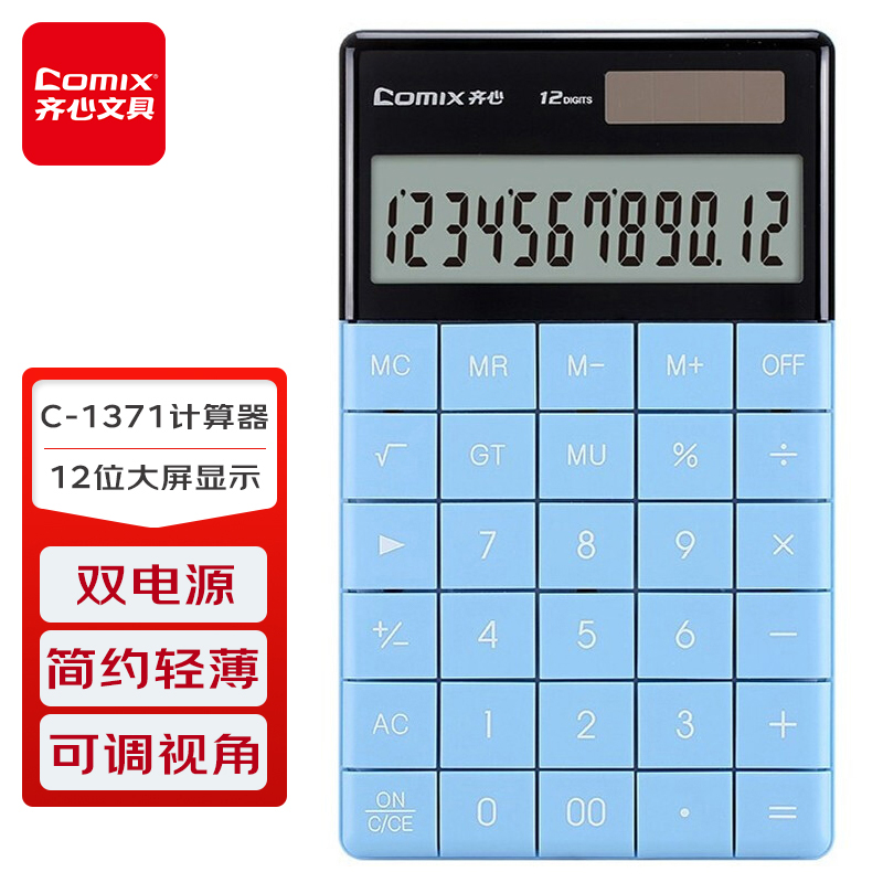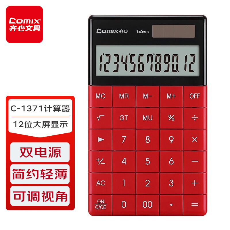 (特)齐心 双电源时尚计算器 轻薄机身平板按键桌面计算机 办公用品 C-1371 5个装