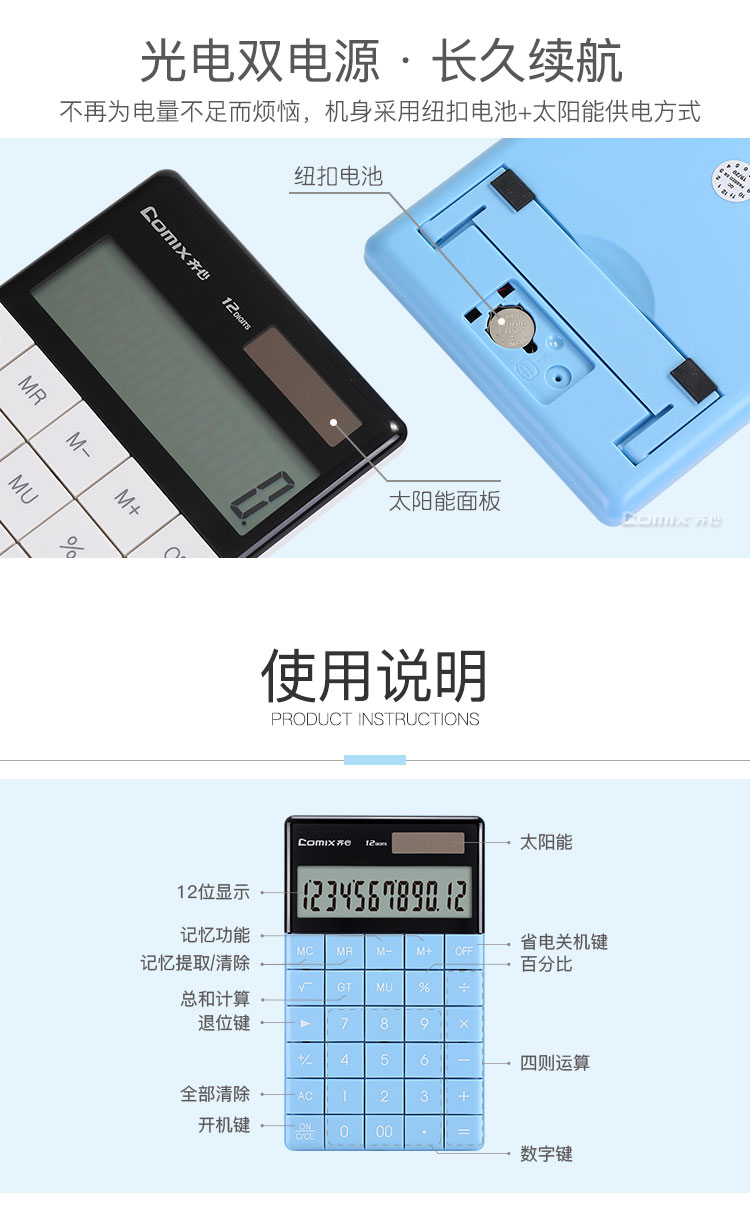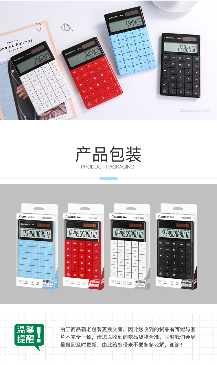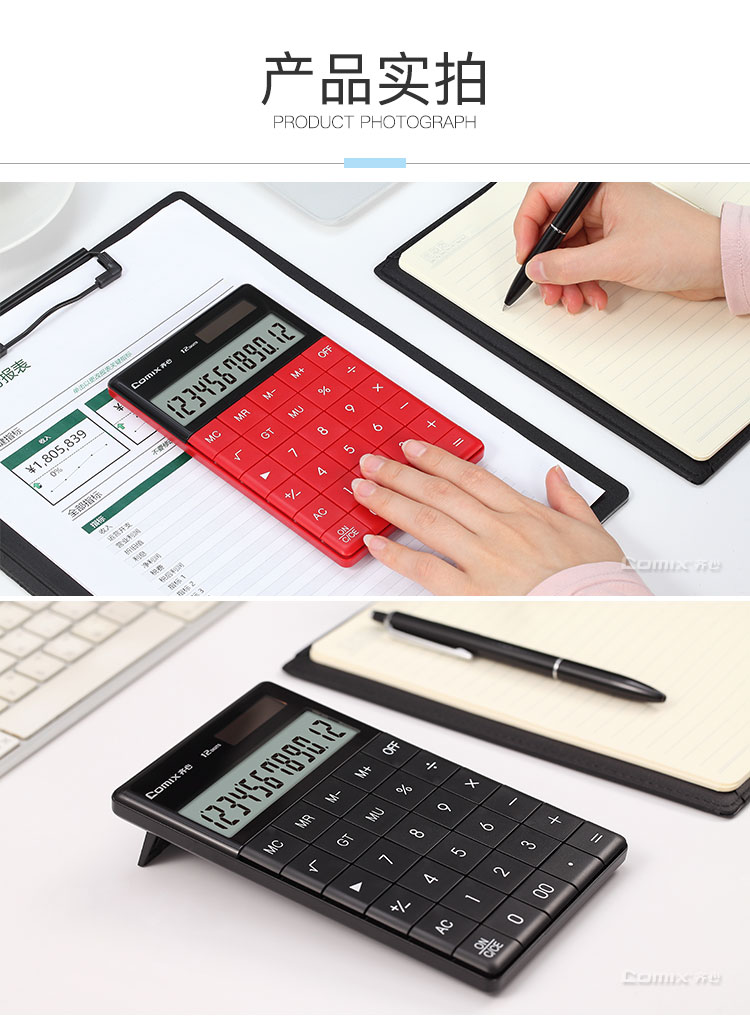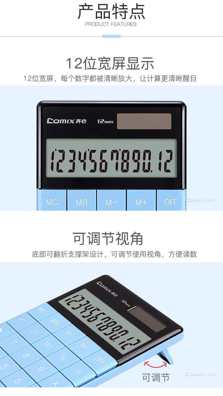 (特)齐心 双电源时尚计算器 轻薄机身平板按键桌面计算机 办公用品 C-1371 5个装