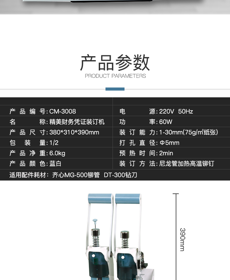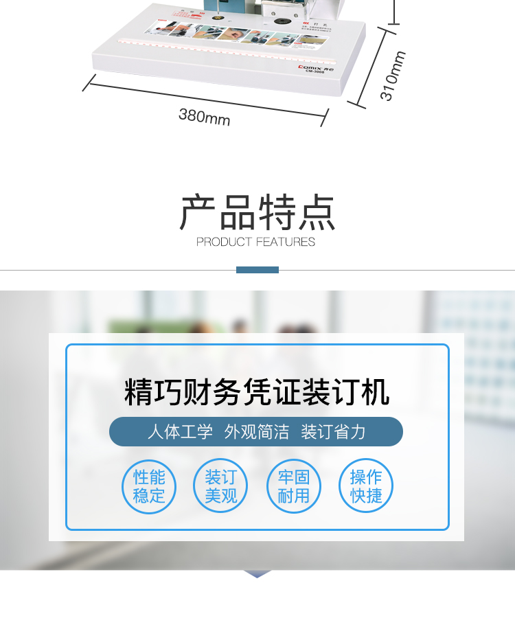 齐心 CM-5088 全自动财务凭证装订机 打孔50mm