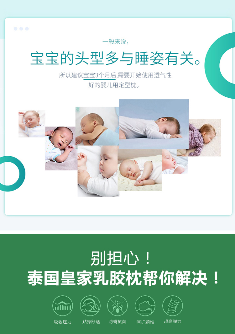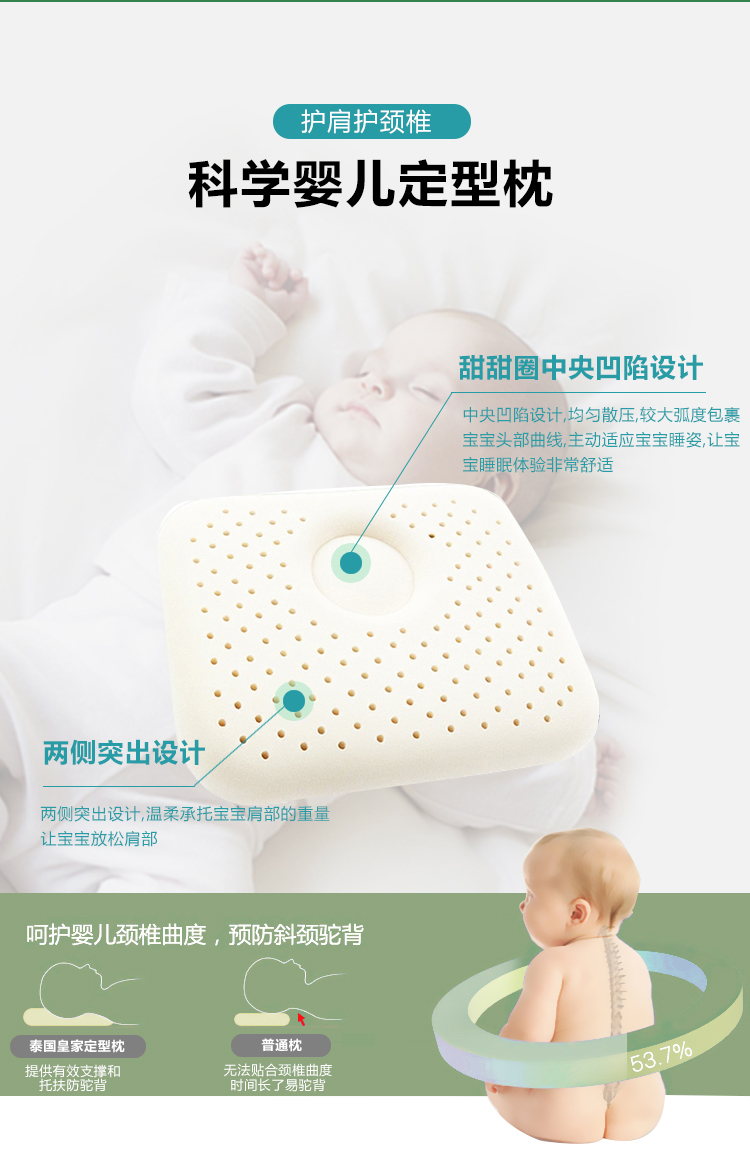 Royal latex婴儿定型枕头0-3岁乳胶透气儿童纠正偏头矫正枕